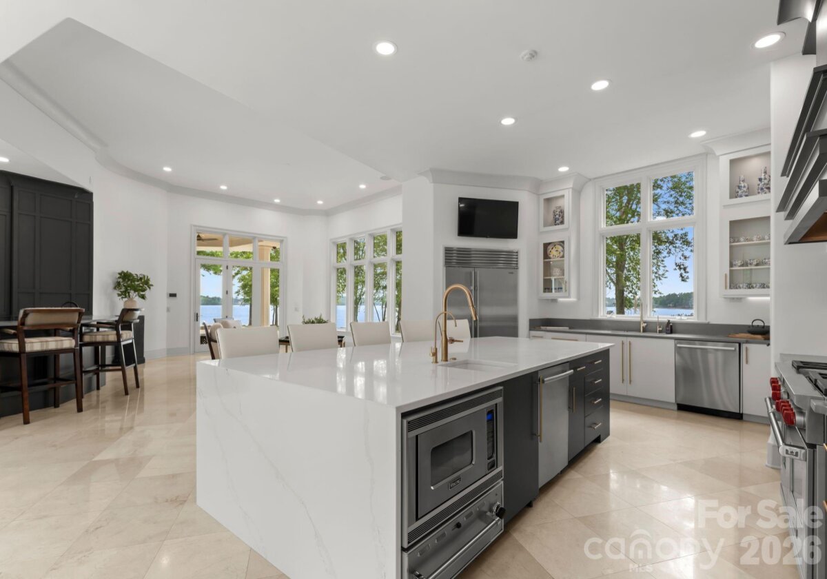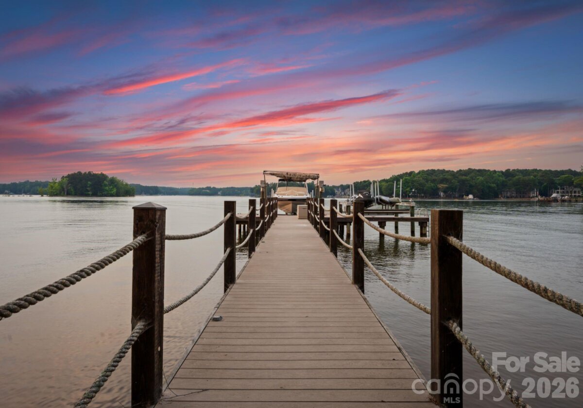 Welcome to Puesta del Sol... A Rare Waterfront Sanctuary with 938’ of Pristine Shoreline on Lake Norman — where ELEGANCE meets EXCLUSIVITY. Nestled on a private gated peninsula, this estate offers 938 feet of shoreline & panoramic lake views from every level & bedroom! Inside, light-filled spaces, curved walls, designer finishes, & a gourmet kitchen set the tone for effortless luxury. The main-level primary suite offers luxurious bedroom, dual closets, and separate shower 7 spa-like bath. Take the elevator to the second level boasting 2nd primary suite plus 3 additional spacious en-suite bedrooms, theater, billiard room, and exercise space. End or begin the day on the rooftop covered terrace with stunning sunrise & sunset vistas. The outdoor spaces are equally impressive: pool and spa, private pier with a dock, boat lift equipped with electric Swiftshield cover & jet ski lifts. This is more than a home — it’s a rare lifestyle opportunity on one of North Carolina’s most desirable lakes.