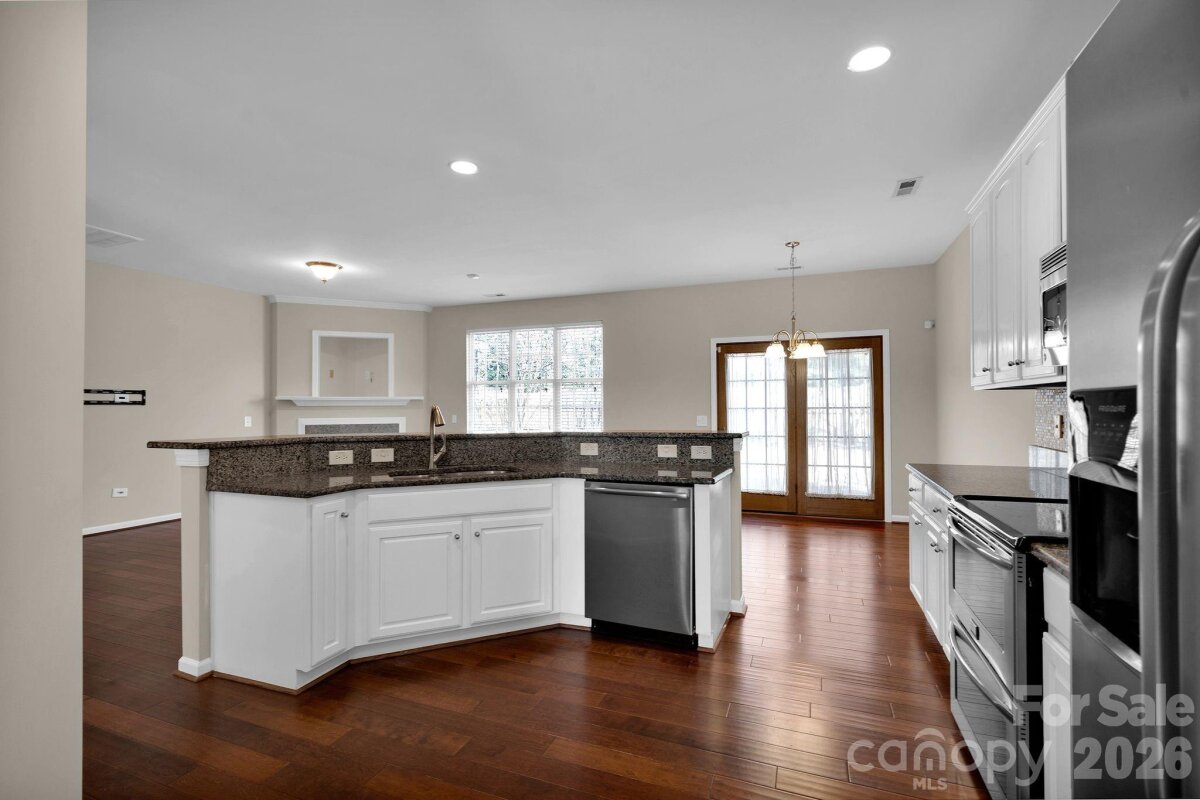 Come tour this beautiful 4 bedroom home in the highly desirable SouthHampton Commons subdivision. Upon entry you will notice an abundance of natural light, hardwood flooring and an open floor plan. The main floor offers a spacious kitchen with granite countertops, 42in cabinetry and bar area. Breakfast area overlooks a private fenced backyard for entertaining and relaxing. Primary bedroom is on the main floor with large bathroom featuring garden tub and shower, dual vanities and walk in closet. Upstairs includes 3 spacious bedrooms with a large loft. Close proximity to Blakeny and Rea Farms shopping and dining, medical and more. Great walkability, Close to award winning schools. Set up a showing today!!