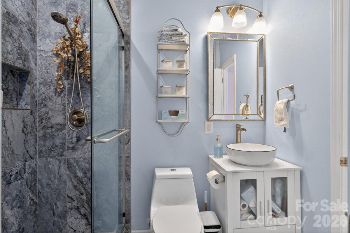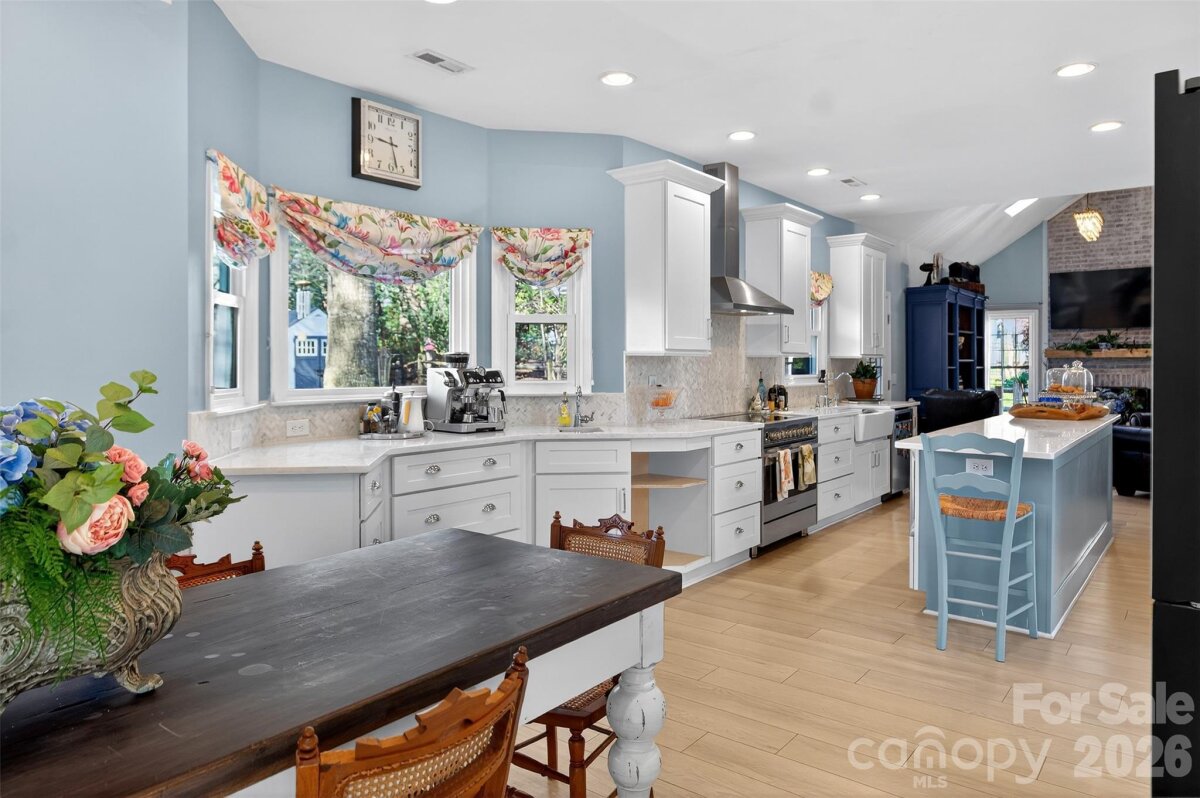Designer's Own Masterpiece: professionally curated on a premium corner lot! Welcome to your dream home- a meticulously updated residence where every room has been beautifully finished and updated. Situated on a corner lot close to the neighborhood amenities, and offering huge hardwood trees. This is the house you wanted to grow up in. Top rated schools, all in walking distance. Upscale shopping and dining close by that makes Ballantyne the "hot spot " of booming South Charlotte. Step into the chefs kitchen, featuring farmhouse sink and wet bar, 36' professional induction range,Bespoke refrigerator, quartz countertops and a 14' island. Tons of storage, and open floor plan makes this an entertainers delight. Turn key: New roof, fully landscaped, new HVAC system in 22', leaf guard gutters, new windows, new LVP flooring. Check out the owners suite with claw foot tub, oversize glass shower, walk in closet and marble topped vanity Room over the garage has its own control for heating and cooling, massive antique wardrobe, for use as a bedroom or other flex space. Remaining bedrooms with ample closets and a remodeled bathroom to share upstairs. Main level bedroom could work as an office with built in shelves, and connects to a completely new remodeled bathroom. Wood burning fireplace in the family room, and just off, a screened in porch for use nearly year round use with the addition of EZ Breeze Vinyl windows. Deck under the trees for BBQ's and family gatherings. The garage offers storage shelves and cabinets with workbench and roll down screen.