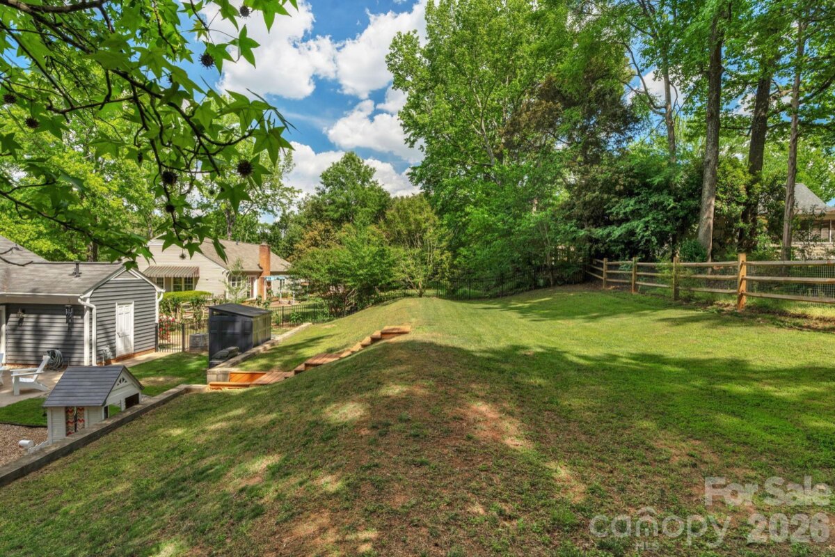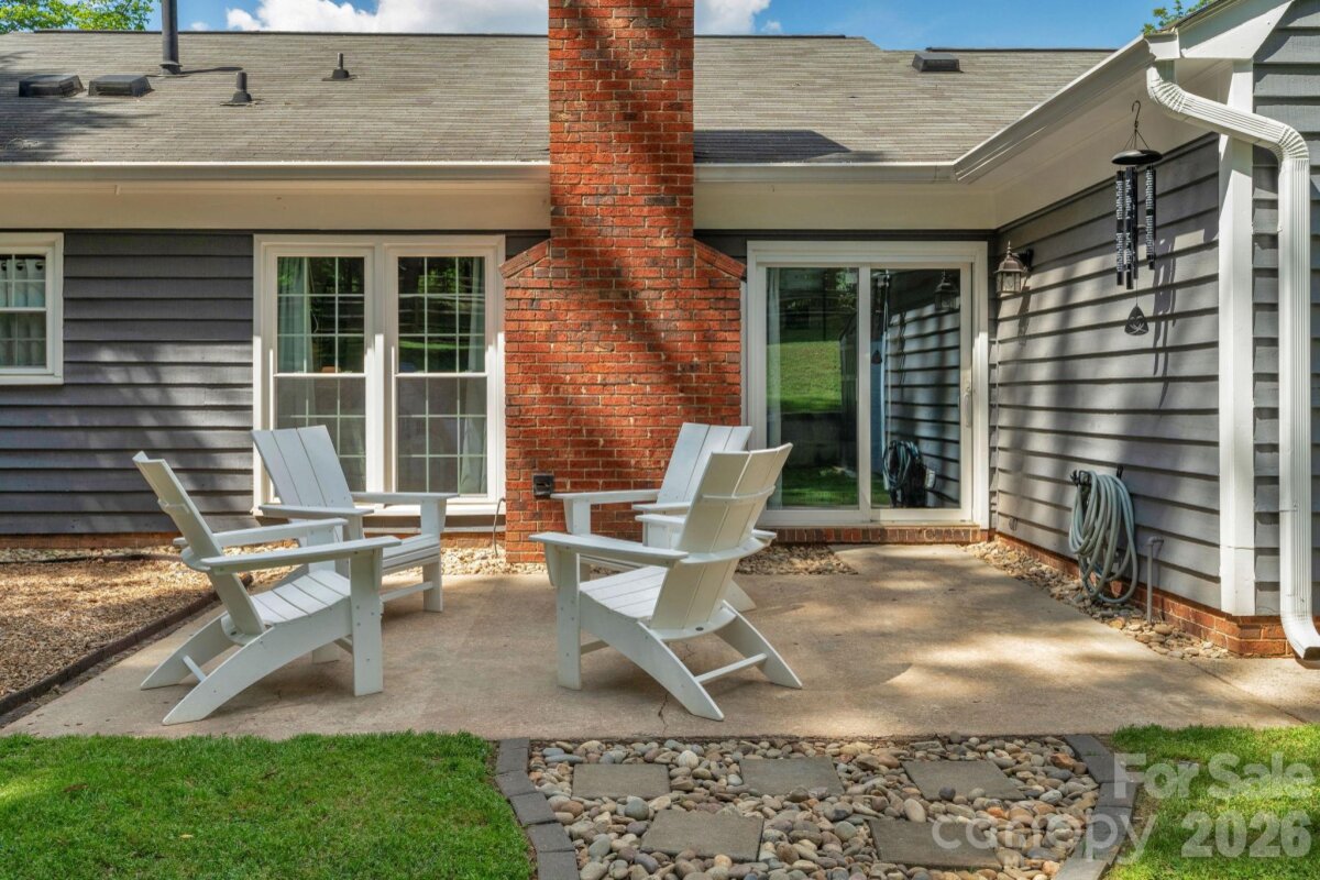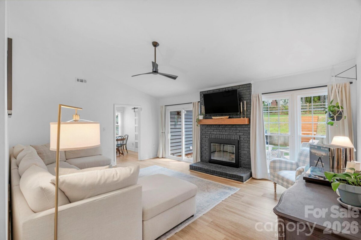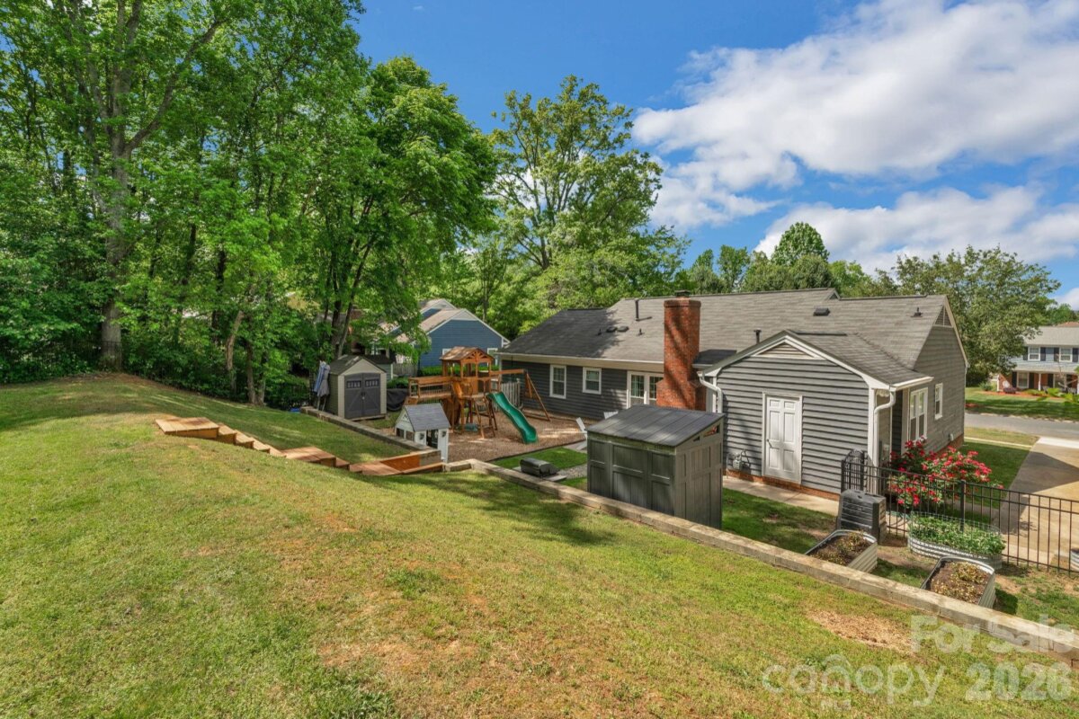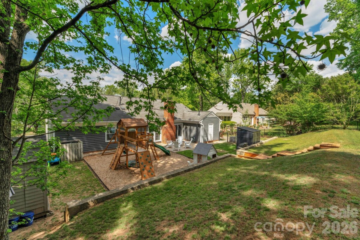 Classic brick-accent ranch with inviting covered front porch and easy one-level living, set on a private, tree-lined lot in Raeburn. Inside, the layout flows naturally with updated LVP flooring from the living and dining areas into a spacious family room with vaulted ceiling and fireplace, creating a comfortable central gathering space. The kitchen features white cabinetry, stainless appliances, and a casual breakfast area, with nearby mudroom/laundry offering additional cabinets for storage and function. The primary suite is tucked on its own side of the home with an en-suite bath and walk-in closet, while two secondary bedrooms share a full bath down the hall. Both bathrooms feature update vanities, flooring and lighting. In the back yard, the home opens to a patio and fully fenced yard with play space and multiple sheds for storage, offering both privacy and flexibility for outdoor living. Residents will also enjoy fantastic neighborhood amenities such as a pool, sports courts, playgrounds, and an athletic field easily accessed on the sidewalk at the end of the cul du sac. Don't wait to call this property home!