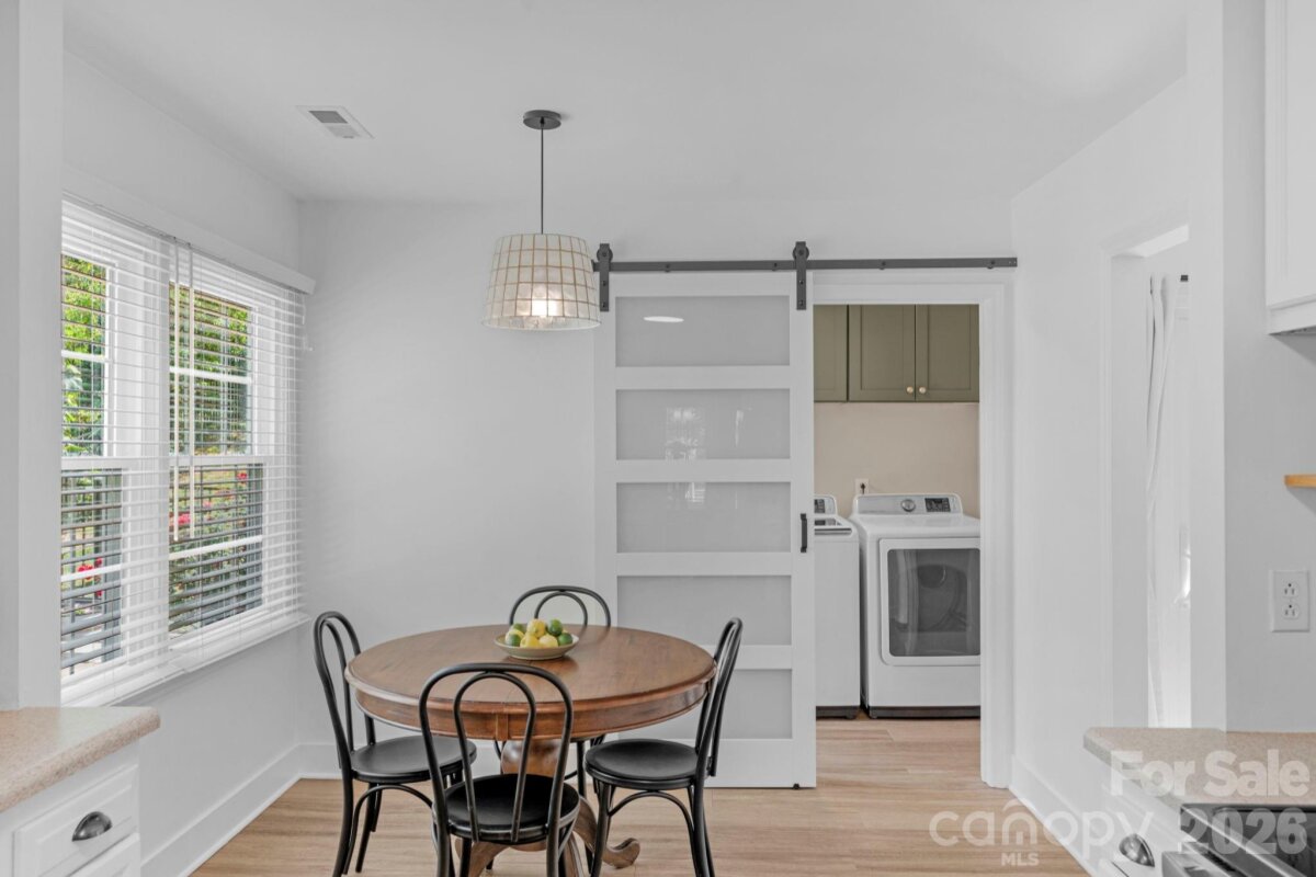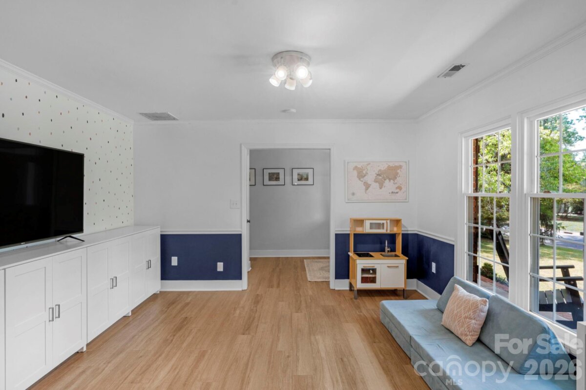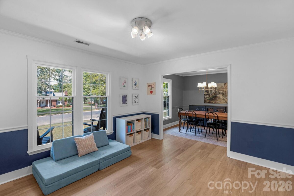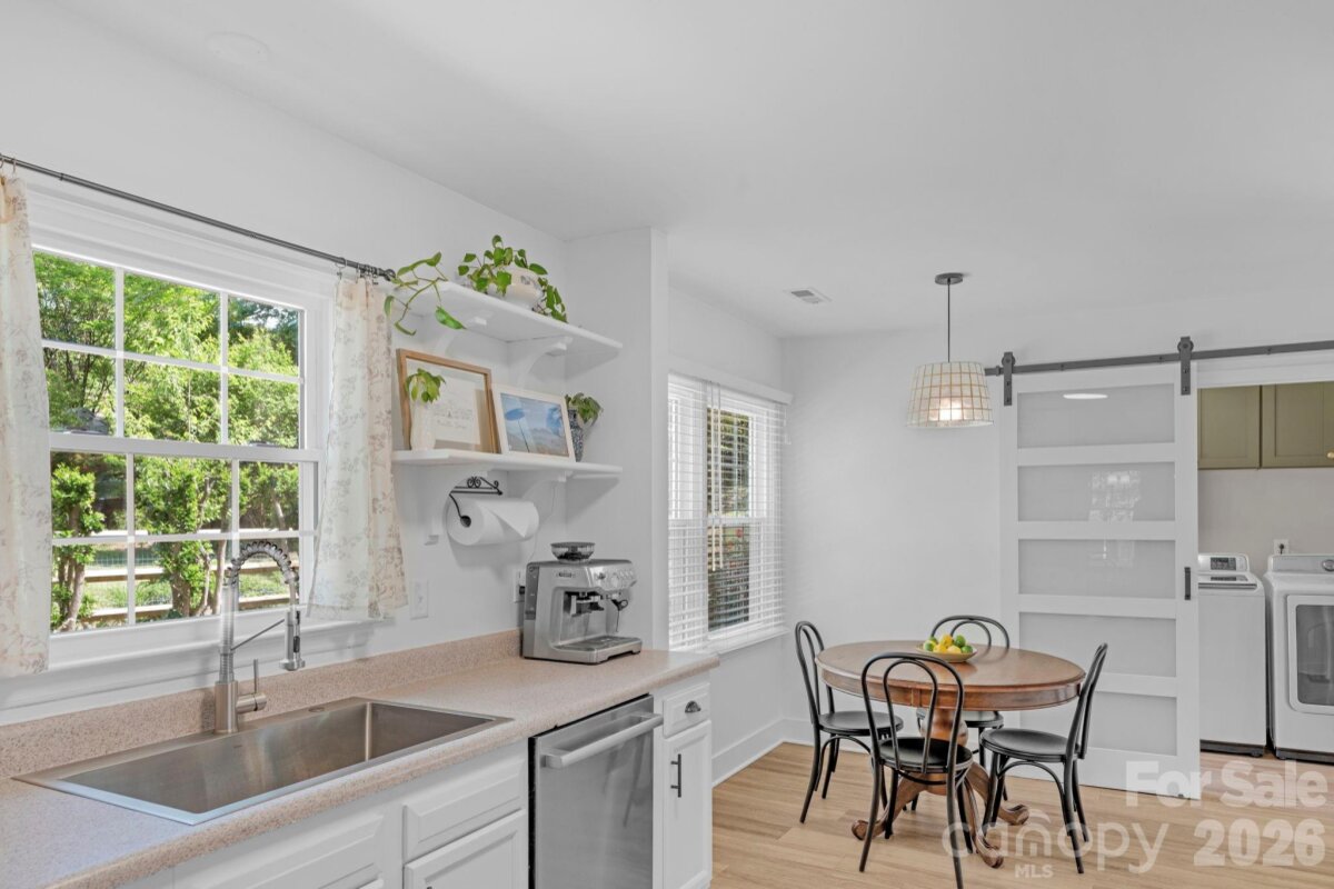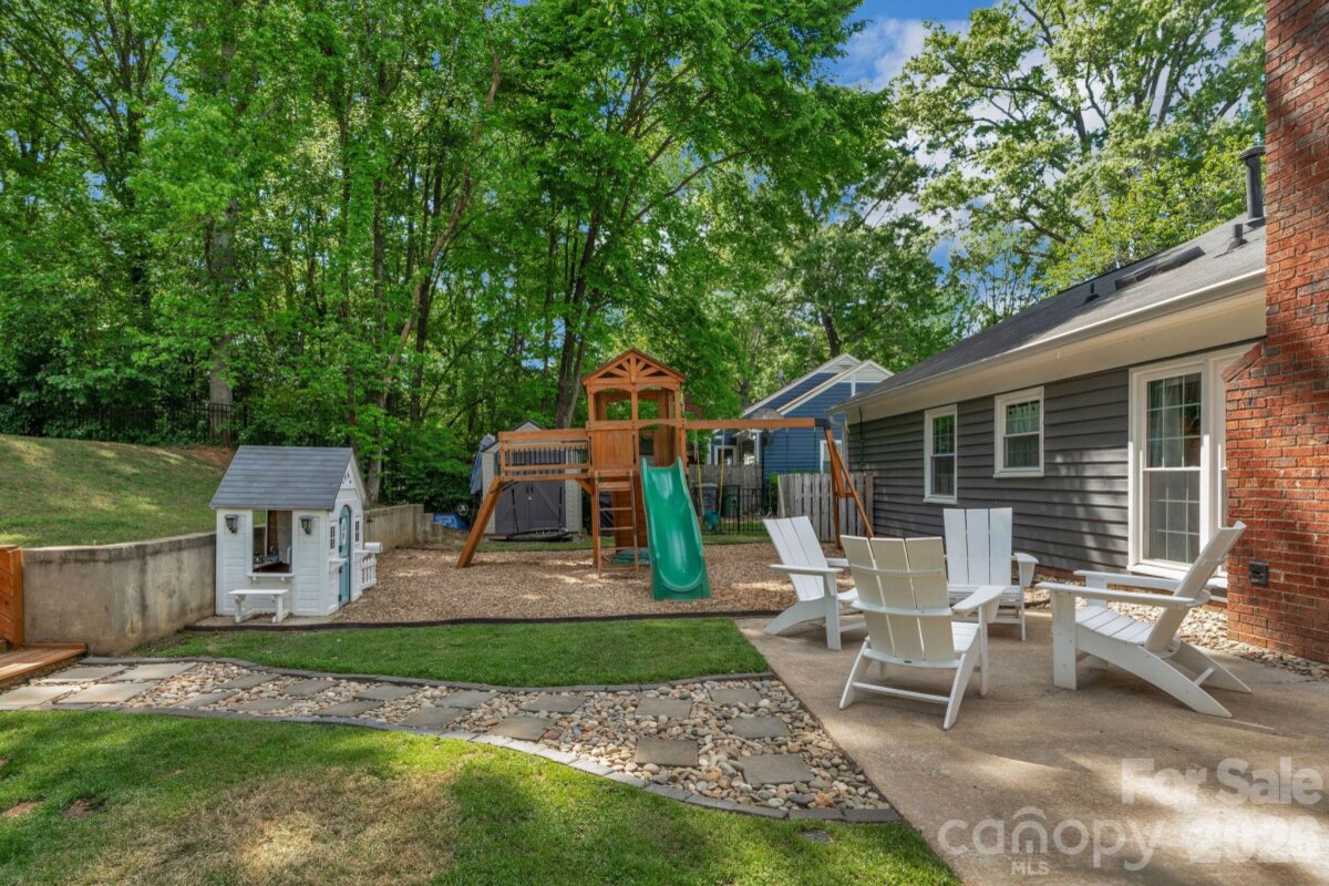 Classic brick-accent ranch with inviting covered front porch and easy one-level living, set on a private, tree-lined lot in Raeburn. Inside, the layout flows naturally with updated LVP flooring from the living and dining areas into a spacious family room with vaulted ceiling and fireplace, creating a comfortable central gathering space. The kitchen features white cabinetry, stainless appliances, and a casual breakfast area, with nearby mudroom/laundry offering additional cabinets for storage and function. The primary suite is tucked on its own side of the home with an en-suite bath and walk-in closet, while two secondary bedrooms share a full bath down the hall. Both bathrooms feature update vanities, flooring and lighting. In the back yard, the home opens to a patio and fully fenced yard with play space and multiple sheds for storage, offering both privacy and flexibility for outdoor living. Residents will also enjoy fantastic neighborhood amenities such as a pool, sports courts, playgrounds, and an athletic field easily accessed on the sidewalk at the end of the cul du sac. Don't wait to call this property home!