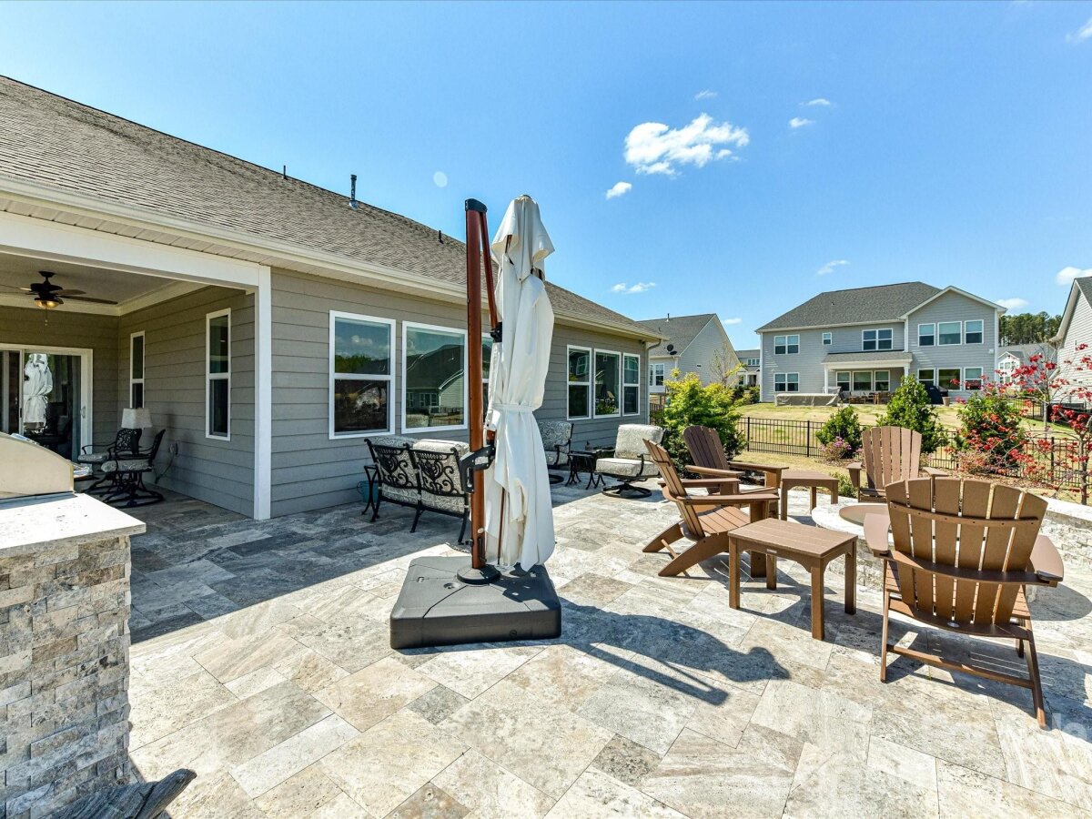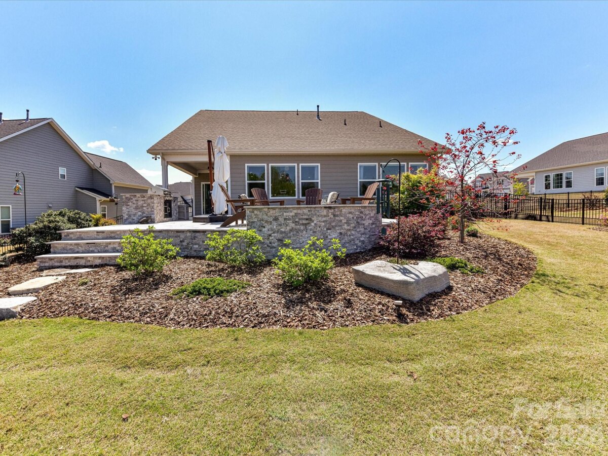 Thoughtfully designed for both everyday living and effortless entertaining, this beautiful home offers a versatile and spacious layout. A welcoming flex space just off the entry provides the perfect spot for a home office, sitting room, or play area. The dining area flows seamlessly into a large, well-appointed kitchen featuring ample cabinetry, a walk-in pantry, and a convenient butler’s pantry—ideal for hosting and storage. The inviting family room is centered around a cozy fireplace, creating a warm and comfortable gathering space. The main-level primary suite is a true retreat, complete with a generous ensuite bath and a spacious walk-in closet. A secondary bedroom and full bath on the main level offer flexibility for guests or multigenerational living. Upstairs, you’ll find an additional bedroom, full bath, and a bonus room—perfect for a media space, game room, or additional living area. Step outside to enjoy the expansive patio designed for outdoor living, featuring a built-in grill, fire pit, and plenty of space for dining ($74,000 improvement) and relaxing. The fully fenced yard adds both privacy and functionality, making this outdoor space ideal for entertaining or unwinding at home.