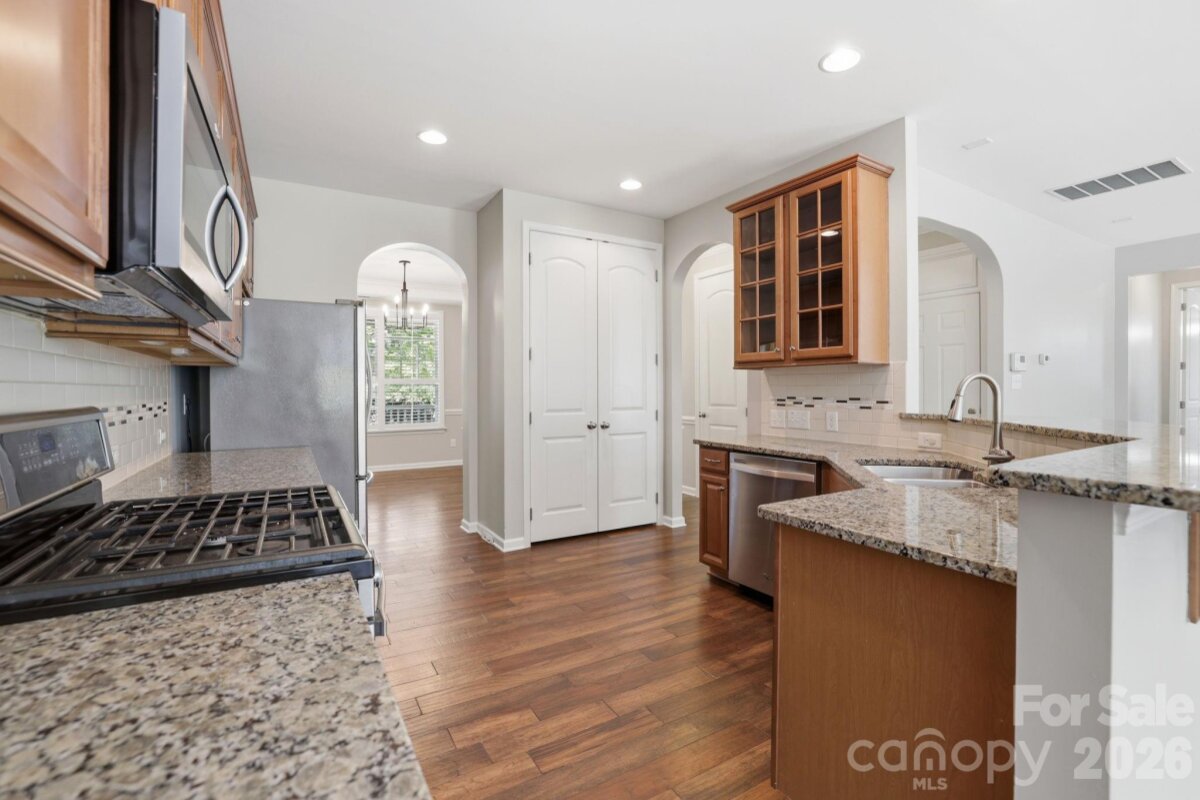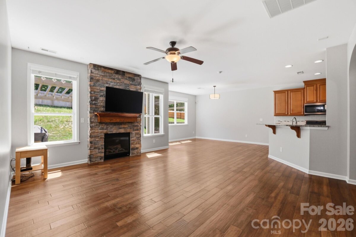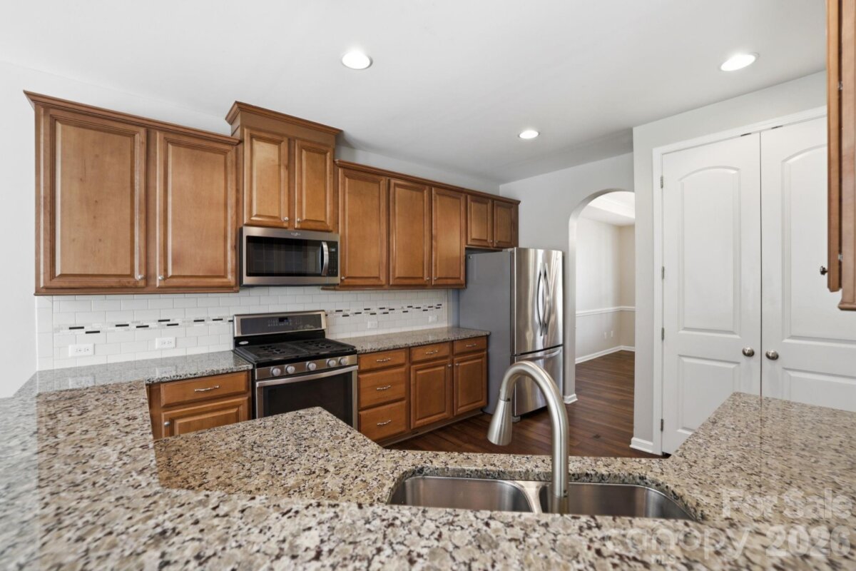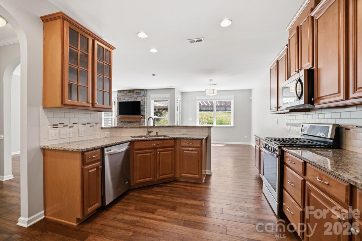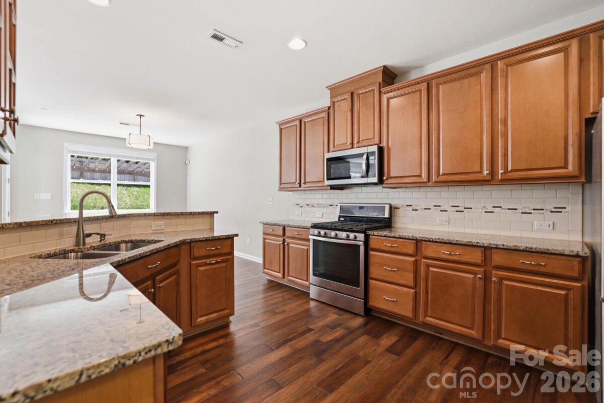 Your elegantly appointed home at 1197 McKee Farm Lane located in the heart of Belmont awaits you! This beautifully refreshed 4 Bedroom ~ 3 Full Bath Mattamy built home showcases quality craftsmanship and presents like NEW. The main level features a thoughtfully designed open concept floor plan anchored by a striking stone gas fireplace, seamlessly connecting the living, dining, and kitchen space. Kitchen beams with granite countertops, tiled backsplash, brand NEW gas range, SS appliances, large pantry, breakfast bar and large eat-in area perfect for casual dining or entertaining. A versatile main level bedroom with an adjacent full bath provides ideal flexibility for guests, home office, or multigenerational living. Upper level boasts spacious loft area for curating your own space, 2 additional well appointed bedrooms, and guest bath featuring dual vanities and ample cabinetry (a must see). The expansive laundry room adds everyday convenience. You'll get swept away in this impressive owners suite with a tray ceiling, ceiling fan, and a luxurious en-suite bath complete with dual sinks, soaking tub, walk-in-tiled shower, and two walk-in closets. Step outside to your private backyard retreat, where a charming pergola with deck and swings, along with a dedicated patio area, creates the perfect setting for outdoor living and entertaining. The fully fenced yard backs to a wooded landscape, offering both privacy and a peaceful natural backdrop. This home has a FIVE STAR location, perfectly positioned in a highly sought-after community, walkability to the Harris Teeter, easy school access without long car lines, and just a couple minutes to the vibrant and historical downtown Belmont. Enjoy some of the best coffee shops, dining, & gift shopping in the Charlotte area. Other honorable mentions: Brand New Carpet, Entire Interior Freshly Painted, (2) Genie Garage Door Openers, Updated Lighting, Exterior Pressure Washed, Central Vacuum, Air Purifier & so much more. Please contact friendly listing agent for more details.