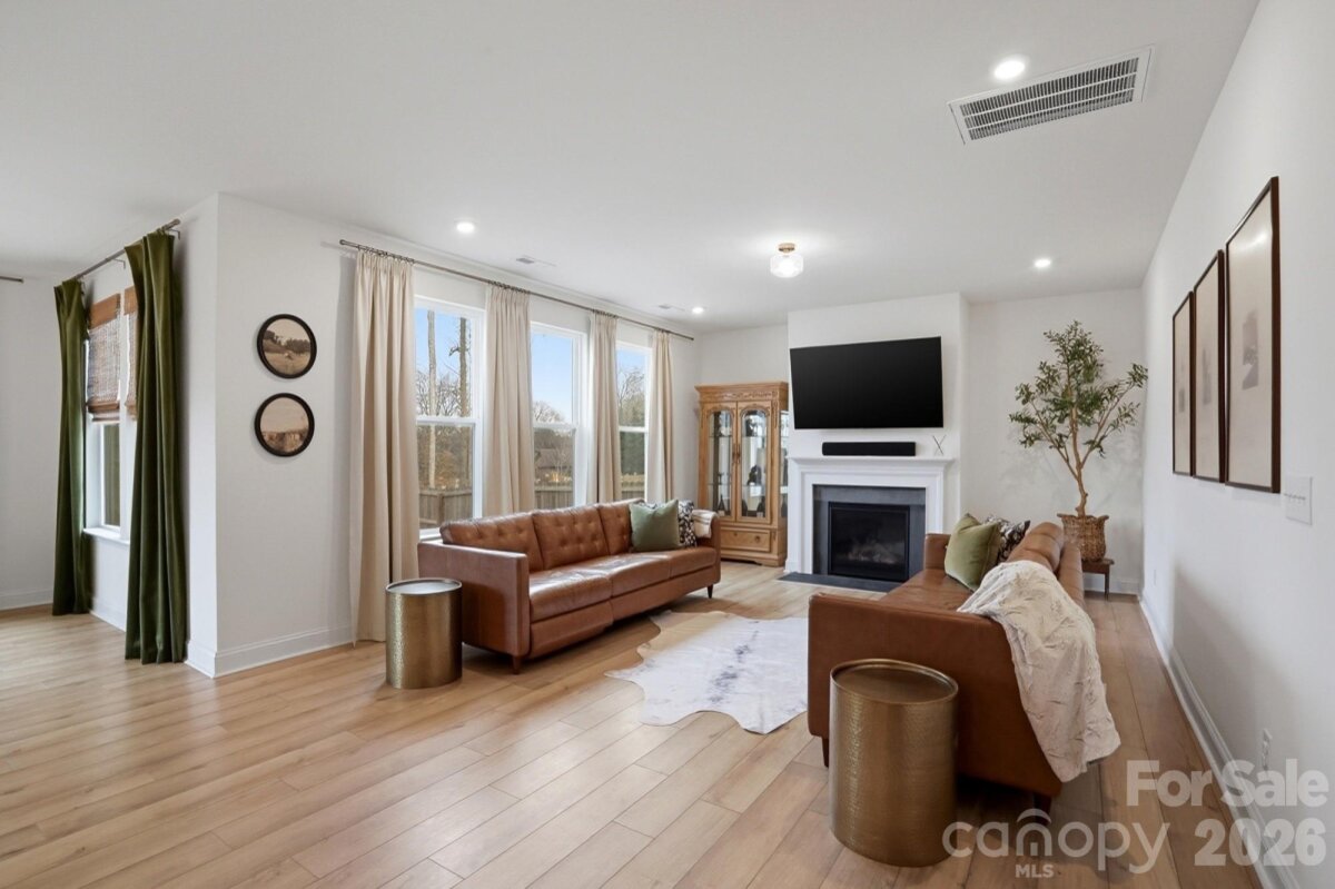 Welcome to 1563 Cedar Tree Drive in Smith Farm, a beautifully built 2023 home offering 4 bedrooms, 3 full baths and over 3,100 square feet of stylish, functional living space with exceptional indoor-outdoor appeal. The custom outdoor patio and covered rear porch create a true outdoor living retreat. Designed for entertaining and everyday enjoyment, the space easily accommodates dining and lounge seating, all overlooking a fenced backyard with wooded views for added privacy and serenity. Inside, the open-concept main level seamlessly connects the kitchen, breakfast area, and family room with a cozy gas log fireplace. The chef’s kitchen features a large island, gas cooktop, wall oven, and walk-in pantry, perfect for gathering and hosting. A main-level bedroom with a full bath provides flexible options for guests, multigenerational living, or a private office. Upstairs, spacious secondary bedrooms and a versatile loft offer additional living space. The primary suite is a true retreat, complete with a generous walk-in closet and a separate sitting area, ideal for a reading nook, home workspace, or quiet escape. Located just minutes from charming downtown Belmont, you’ll enjoy easy access to local dining, shopping, parks, and community events while still coming home to the privacy and comfort of Smith Farms. This home truly offers the perfect blend of convenience, flexibility, and exceptional outdoor living.