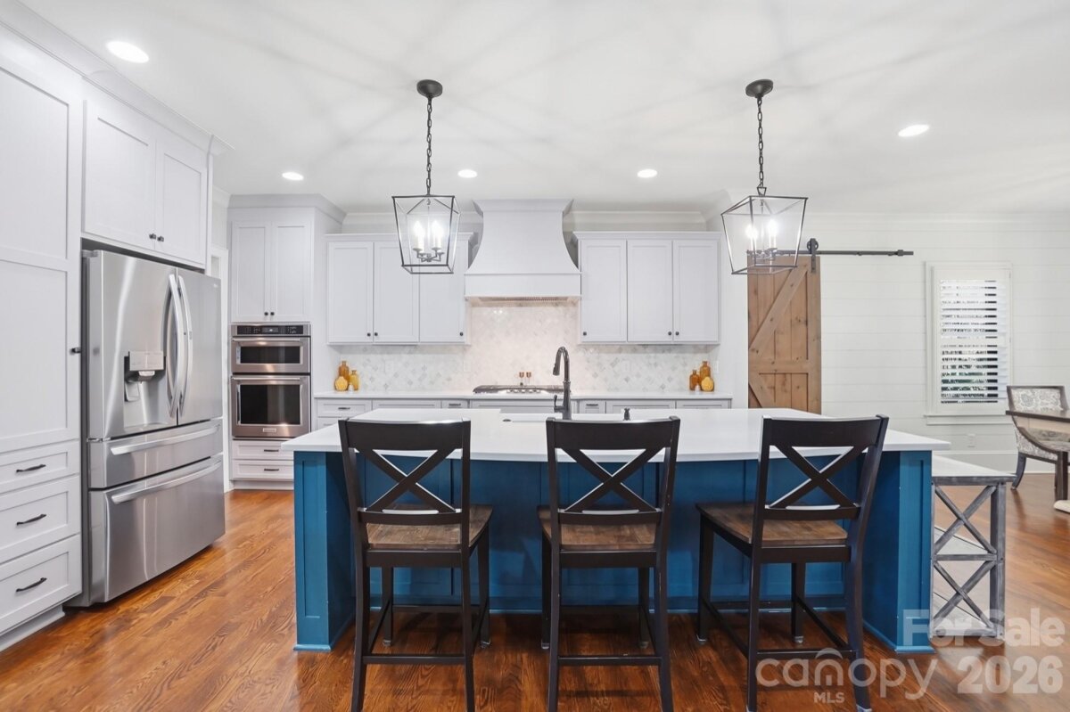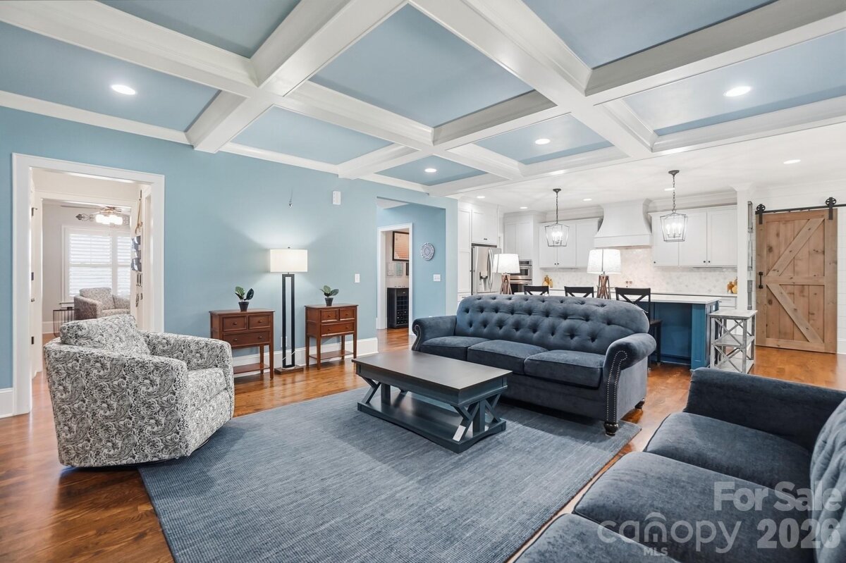 Step into this stunning home with views of Lake Wylie, where thoughtful design and upscale finishes create a seamless blend of comfort and elegance. The open floor plan showcases exquisite architectural details, including rich moldings, hardwood floors, plantation shutters, arched windows, shiplap accents, and stylish barn doors. Designed for both everyday living and entertaining, the inviting great room features a coffered ceiling and gas fireplace, seamlessly flowing into a gourmet kitchen. Here, you’ll find stainless steel appliances, a gas cooktop, quartz countertops, custom cabinetry, a large island with ample seating, two spacious pantry closets, and a bright dining area. The main-level primary suite is a true retreat, offering two walk-in closets, dual vanities, an oversized shower, and luxurious heated floors. A private home office with French doors completes the main level. Upstairs, you’ll find three generously sized secondary bedrooms, two full bathrooms, two versatile bonus/flex rooms, and abundant storage space. Enjoy outdoor living at its finest on the expansive screened patio with fireplace, or the spacious paver patio overlooking the beautifully landscaped, fenced backyard. End your evenings gathered around the cozy firepit—choosing your favorite spot may be the hardest part of your day. Additional highlights include an oversized two-car garage, irrigation system, water filtration system, workshop, and tankless water heater. Located in charming Belmont, you’ll enjoy a welcoming small-town atmosphere with the convenience of shopping, dinning, airport, and Charlotte just minutes away. There are several public boat launches and marinas just a short drive away.