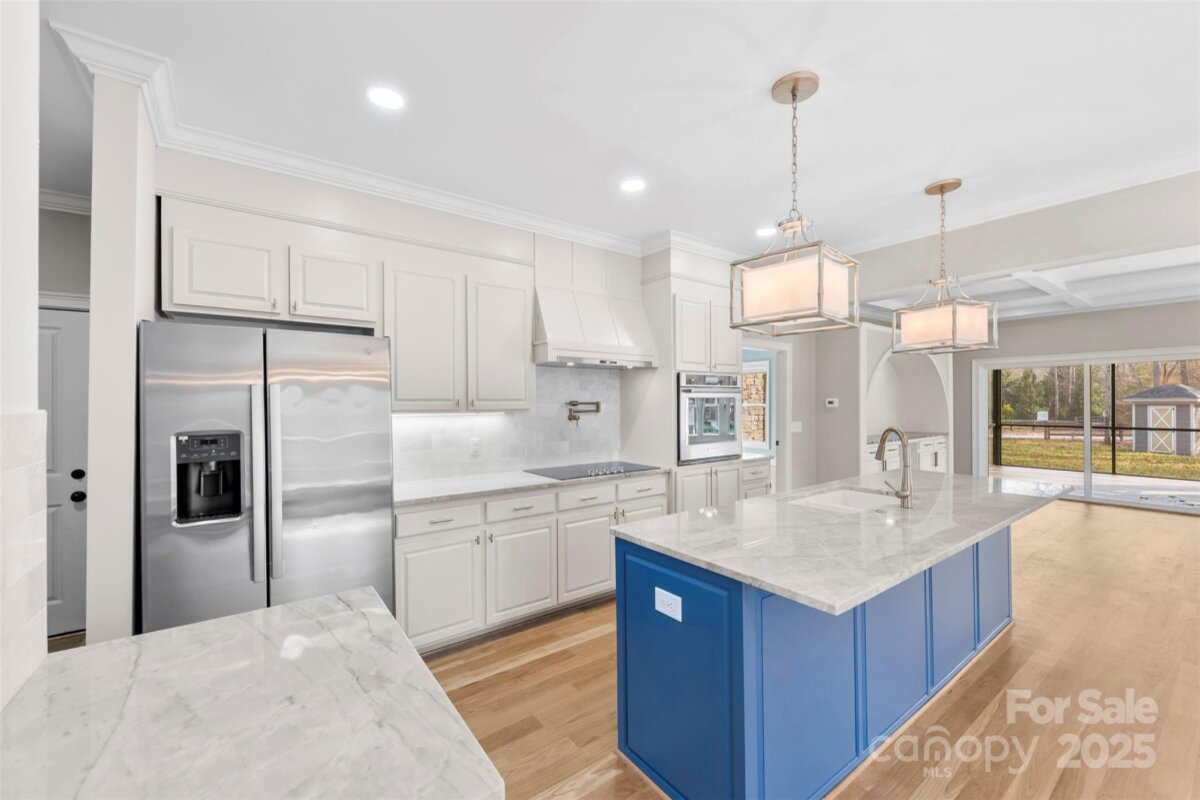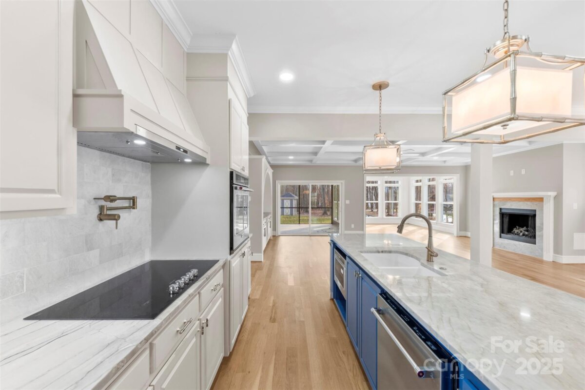 Welcome to 516 Lands End Trail, a stunning new construction home that perfectly blends luxury finishes with a peaceful, private setting just minutes from downtown Belmont. Enjoy close proximity to the lake and easy access to the interstate, offering both relaxation and convenience. This thoughtfully designed residence features an open-concept main level with beautiful engineered hardwood floors, high-end lighting fixtures, a cozy living room fireplace, and abundant natural light throughout. The gourmet kitchen showcases a large island with quartz countertops, brand-new stainless steel appliances, and elegant finishes—ideal for both everyday living and entertaining. Mahogany add a rich, sophisticated touch. The primary suite is conveniently located on the main level and offers a spacious, spa-like bathroom with a generous turn radius for added comfort and accessibility. A dedicated office on the main level provides the perfect work-from-home space. With three bedrooms, three full bathrooms, walk-in closets and a flex area this home offers both functionality and livability. Take in year-round views from the tiled screened-in porch or unwind on the tiled patio while enjoying the serene surroundings. Offering a private, country feel while being just minutes from Belmont’s charming shops and restaurants, this exceptional property delivers luxury, comfort, and location in one remarkable home.