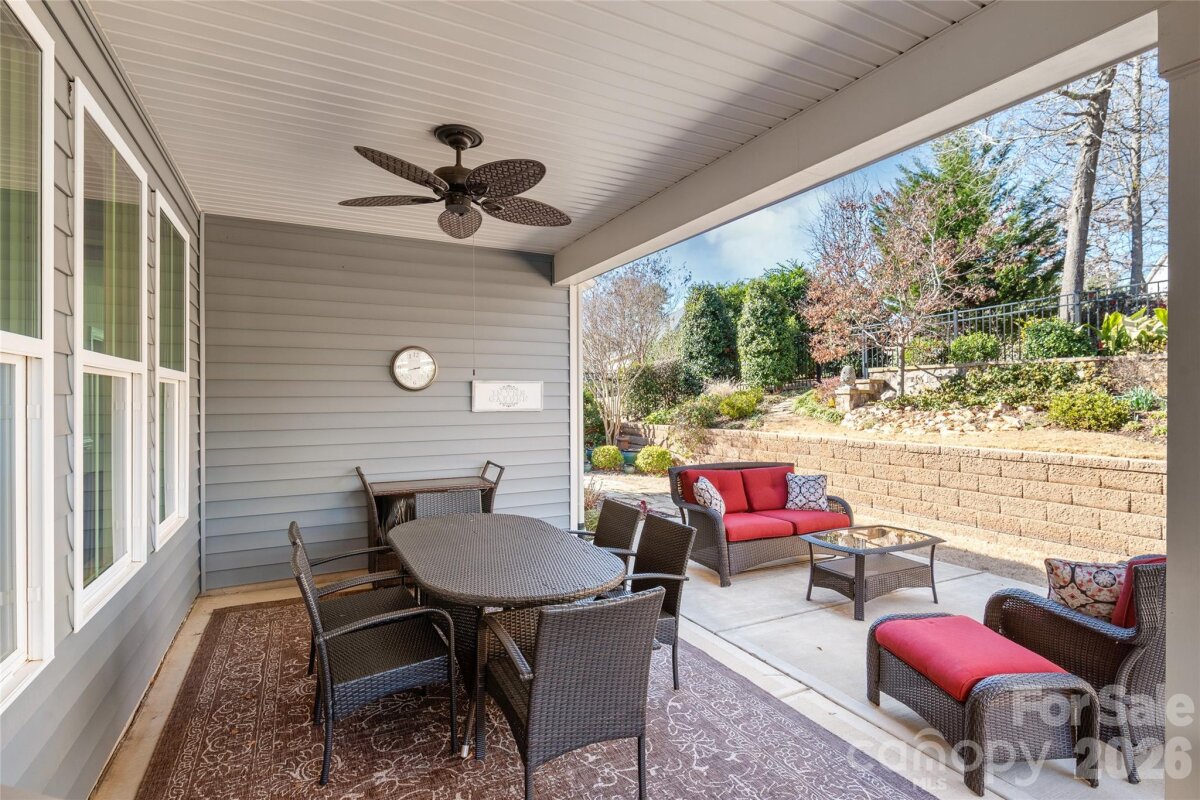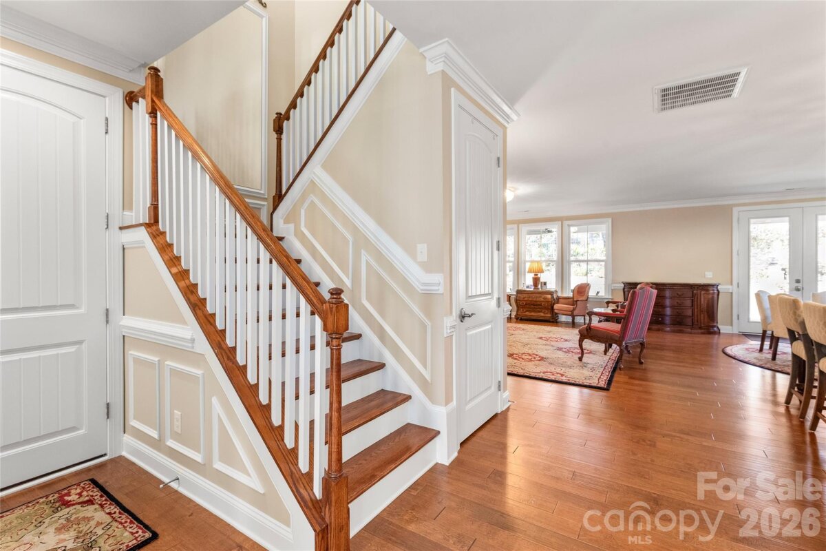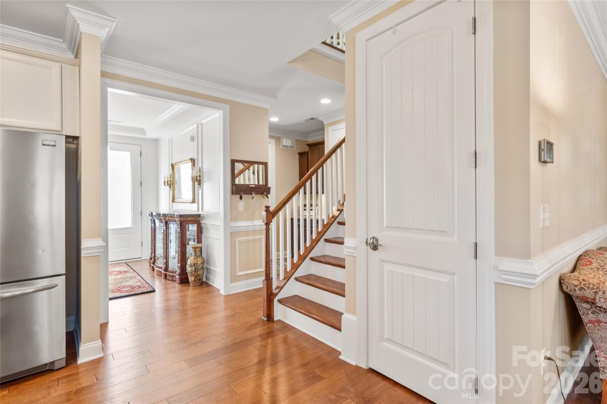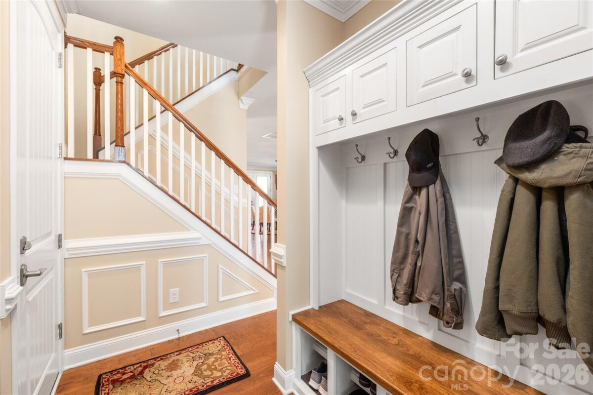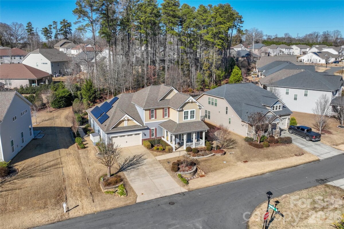 SHOWINGS BEGIN 2/20. OPEN HOUSE 2/21. The main floor welcomes you with rich hardwood flooring, oversized crown molding, wainscoting, and plantation shutters that elevate every room. A dedicated den with French doors offers the perfect space for a home office, while the open concept layout provides effortless flow between the living, dining, and kitchen areas. The gourmet kitchen is a chef’s dream, showcasing professionally painted custom cabinetry, a five burner induction cooktop, Fisher & Paykel two drawer dishwasher, quiet under sink disposal, walk-in-pantry and an oversized exquisite quartz island ideal for entertaining. The butler’s pantry adds additional hidden storage space to keep your kitchen clutter-free. Retreat to the primary suite on the main level, complete with an expansive, spa inspired walk in shower and a custom designed closet featuring extensive shelving and cabinetry. Upstairs, you’ll find two additional bedrooms, a full bath, and a generous loft offering flexible living space. Stylish ceramic tile enhances all bathrooms and the laundry room. Step outside to a beautifully landscaped, fully fenced, terraced backyard that backs to a serene tree lined common area—your own private park like setting. Enjoy year round outdoor living on the large covered porch and extended patio. The finished garage is a standout, equipped with an upgraded insulated garage door, side utility entrance, hanging storage, EV charging station, under mount utility sink with cabinetry and granite counters. The owner’s entry is equipped with a custom drop zone, bench and cubbies for even more everyday convenience. This property is designed for modern efficiency, featuring solar photovoltaics panels (21 years remaining on warranty), a whole house Generac generator, American Standard dual fuel HVAC system with SMART thermostats (8 years remaining on warranty), and a Rinnai tankless water heater. Whole house gutters with leaf filters add to the low maintenance appeal. Located within walking distance of Lake Wylie, this home is a boater’s dream. The community offers on site boat and RV storage, walking trails, a dog park, pool, and cabana, everything you need to enjoy an active, outdoor lifestyle. If you’re seeking luxury, thoughtful upgrades, and exceptional energy efficiency, this home delivers it all.