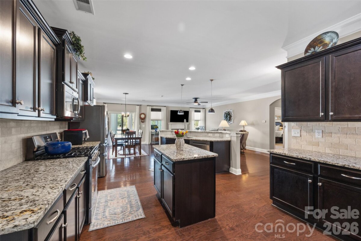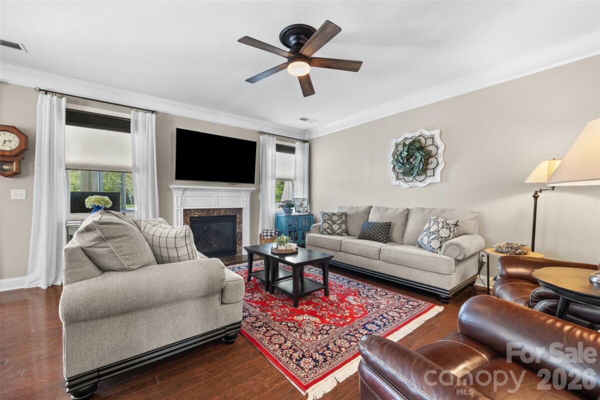 Beautifully maintained and move-in ready! Charming and inviting 1.5 story home includes 3 Bedrooms, 2.5 Baths. The open floorplan features gleaming hardwoods, oversized bedrooms, and abundance of natural light. The large kitchen has plenty of cabinets and granite countertops, perfect for everyday cooking and entertaining. There is a spacious breakfast area off the kitchen for casual dining and could accommodate 8 chairs. The formal dining room features extensive moldings and coffered ceilings. Not the formal type? Then the dining room makes a great home office, den, sitting area, library, or playroom! The family room centers on a cozy fireplace, creating a warm focal point for gatherings. The spacious master suite includes a luxury spa like bath with a garden tub, walk-in shower, dual vanity, private water closet, and a large walk-in closet with custom built-in drawers and shelving. Upstairs are 2 huge, secondary bedrooms and share a full bathroom. Begin your day with a cup of coffee or smoothie or retire from your workday with a cocktail in the year-round comfort of your four-season sunroom. The large, privacy-fenced backyard is ideal for pets, relaxing, gardening, or playing in sun. There is a walk-in attic for ample storage. Nearby conveniences: grocery, dining, medical, and Lake Wylie Marina. This home boast modern updates and generous living spaces making it an ideal blend of style and function for easy living. So, what are you waiting for? Let's make this your next home today!