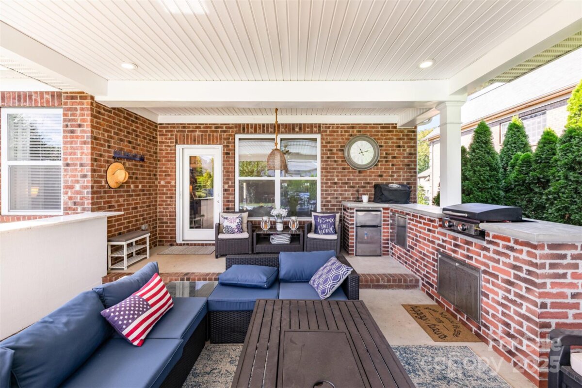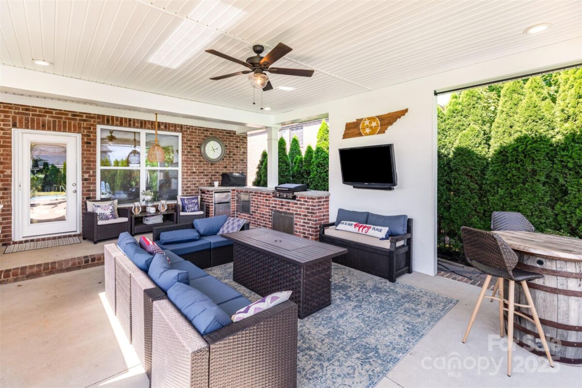 Entertainer’s dream in award-winning Clover schools! This full-brick 4-bedroom, 3-bath home lives easy with the Primary suite on the main level plus a second main-level bedroom with its own full bath—ideal for guests, an office, or multigenerational living. Second level boasts two additional bedrooms, a full bath, and a spacious family room m for play, workouts, relaxing or media. Smart-home upgrades include Alexa-linked dual-zone thermostats, Ring doorbell, and front and rear security spotlights. Fresh updated lighting, fans, and interior paint deliver a crisp, move-in-ready feel. Outside, your private oasis awaits: a 14,000-gallon heated saltwater pool, plus a built-in grill area, beverage cooler, and TV under the extended covered 464 square foot patio built in 2022—perfect for game day or summer nights. The flat, fenced yard is wrapped in privacy trees and enhanced by dusk-to-dawn landscape lighting. All of this in the heart of Clover—minutes to the lake and parks, about 30 minutes to Charlotte Douglas International Airport, with low South Carolina taxes. Come home to resort-style living, everyday.