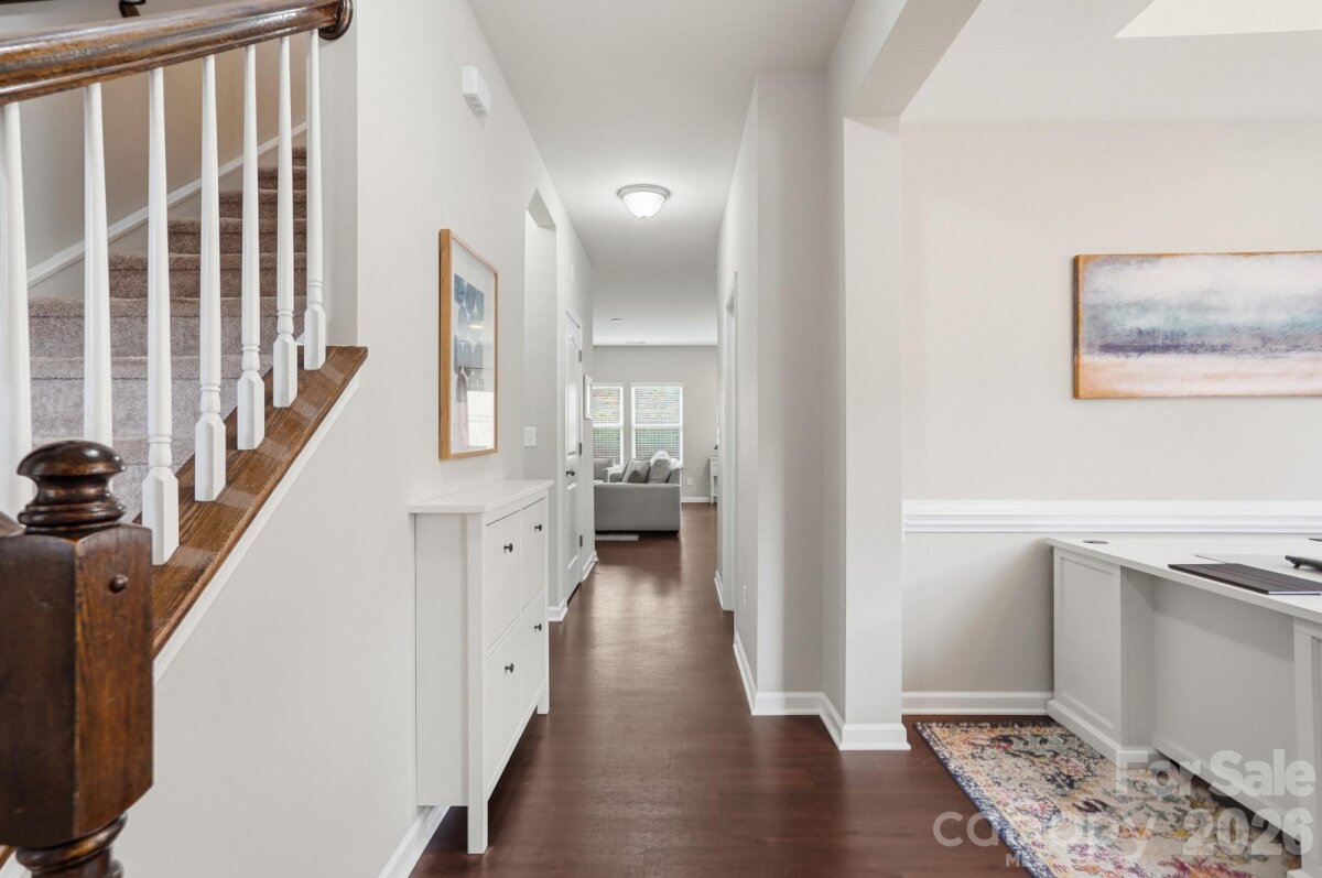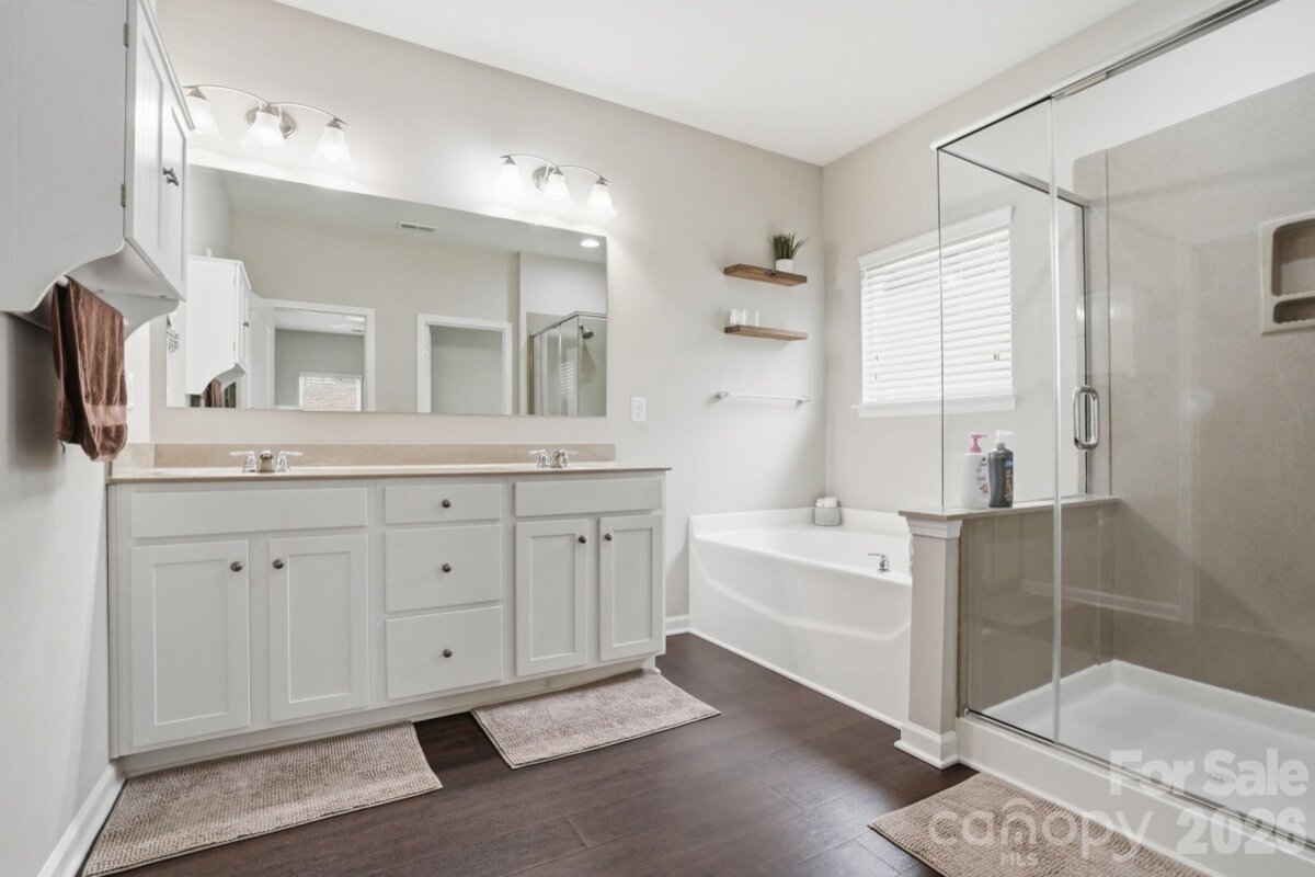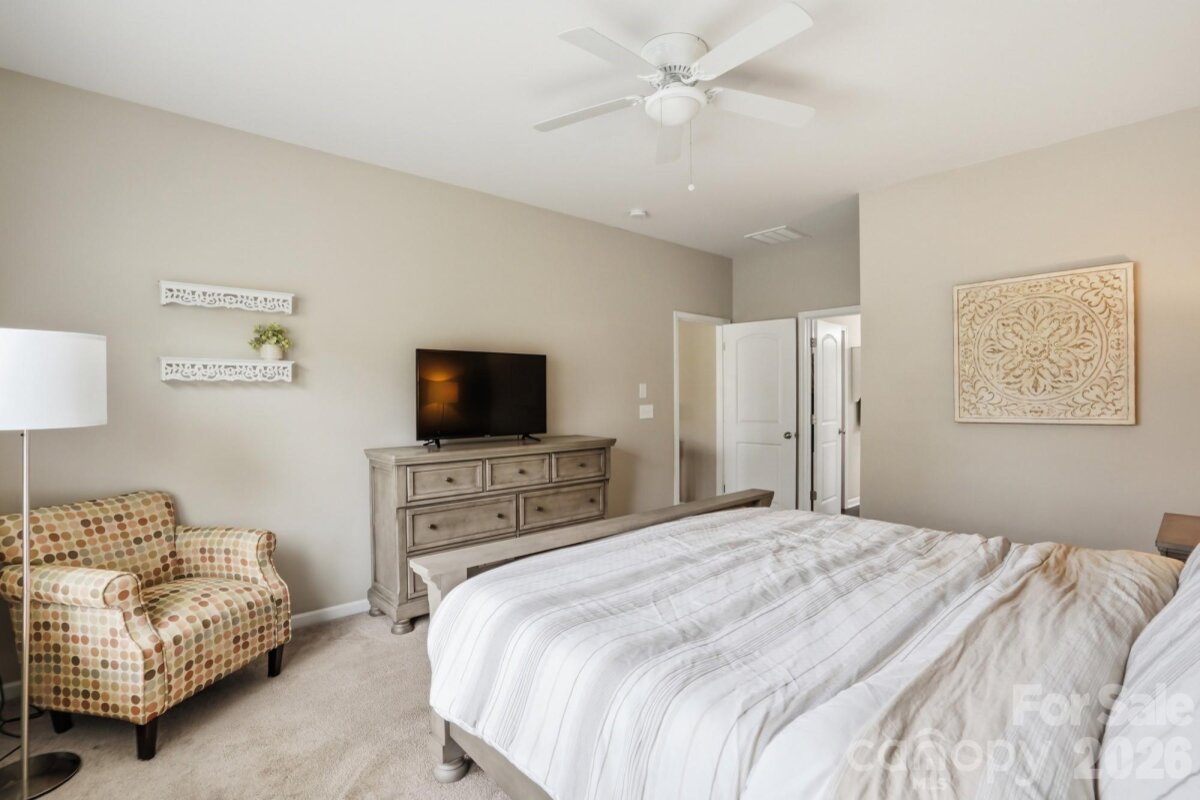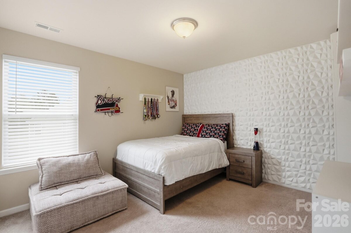 This charming home sits on a cul-de-sac lot in the popular Mill Creek Falls neighborhood. The open floor plan features a white kitchen with a large kitchen island, breakfast room, and a Great Room with a gas fireplace. A front room off the foyer can be used as a formal dining room or a home office. The spacious primary bedroom is located on the first floor, and its ensuite bathroom has dual vanities, a soaking tub, and shower. A half bathroom and laundry room are also located on the main level. Upstairs you’ll find three additional bedrooms, each with decorative shelving, and a full bathroom with two sinks. The loft area offers space for watching TV or other recreation. The fenced backyard has a patio and backs up to the neighborhood common area. Mill Creek Falls offers an array of community amenities including an outdoor pool, tennis and pickleball courts, walking trails, disc golf, and a pond stocked with fish for catch and release.