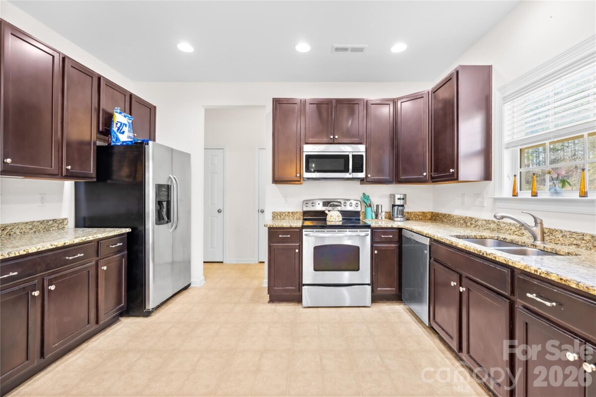 Located just two miles north of Lake Wylie, this Mill Creek Falls 3-bedroom, 2.5-bath home offers a functional layout and convenient access to shopping, dining, and everyday essentials. The main level features an open floor plan with wood floors in the main living areas, a gas fireplace, and a kitchen with granite countertops, stainless steel appliances, a double-door pantry, and an adjoining dining area. A drop zone off the garage entry includes two large storage closets for added organization. Upstairs, the primary suite offers large windows and a private bath with a garden tub, separate shower, and dual sinks. Two additional bedrooms provide generous closet space, along with a loft area and a dedicated laundry room. The fenced backyard backs to trees and includes a patio and stone fire pit, offering space to relax or entertain. Community amenities include a junior Olympic-size pool, playground, clubhouse, tennis & pickleball courts, walking trails, disc golf, picnic area, and fishing pond. Conveniently located near Publix, Lowe’s, Walmart, and local dining. Situated in the Clover School District with low Lake Wylie taxes. USDA Eligible.