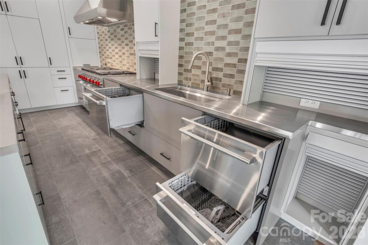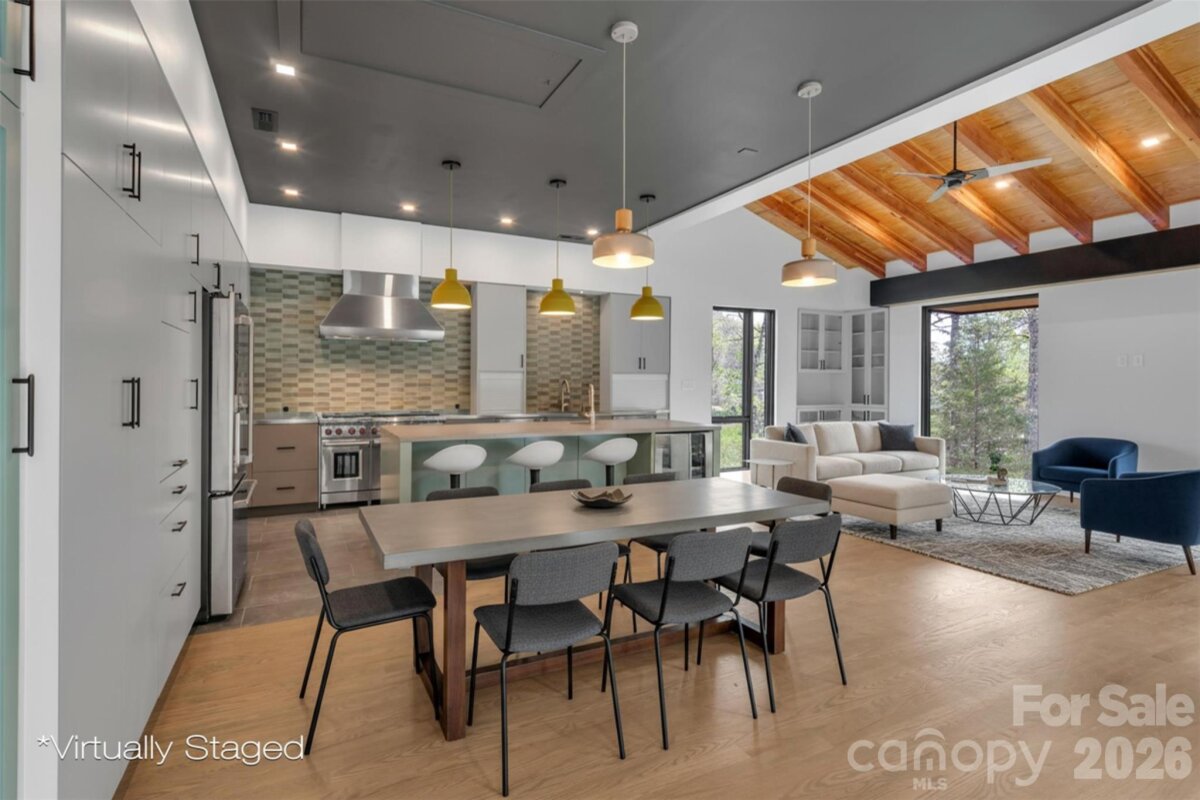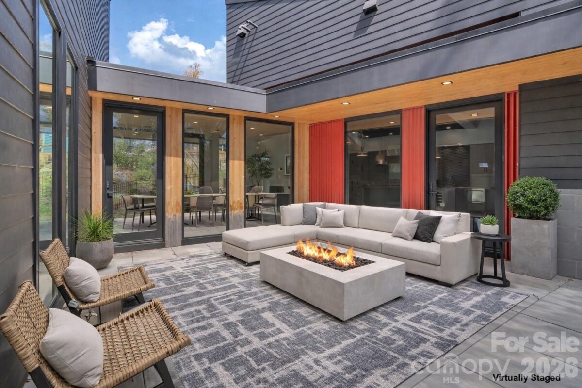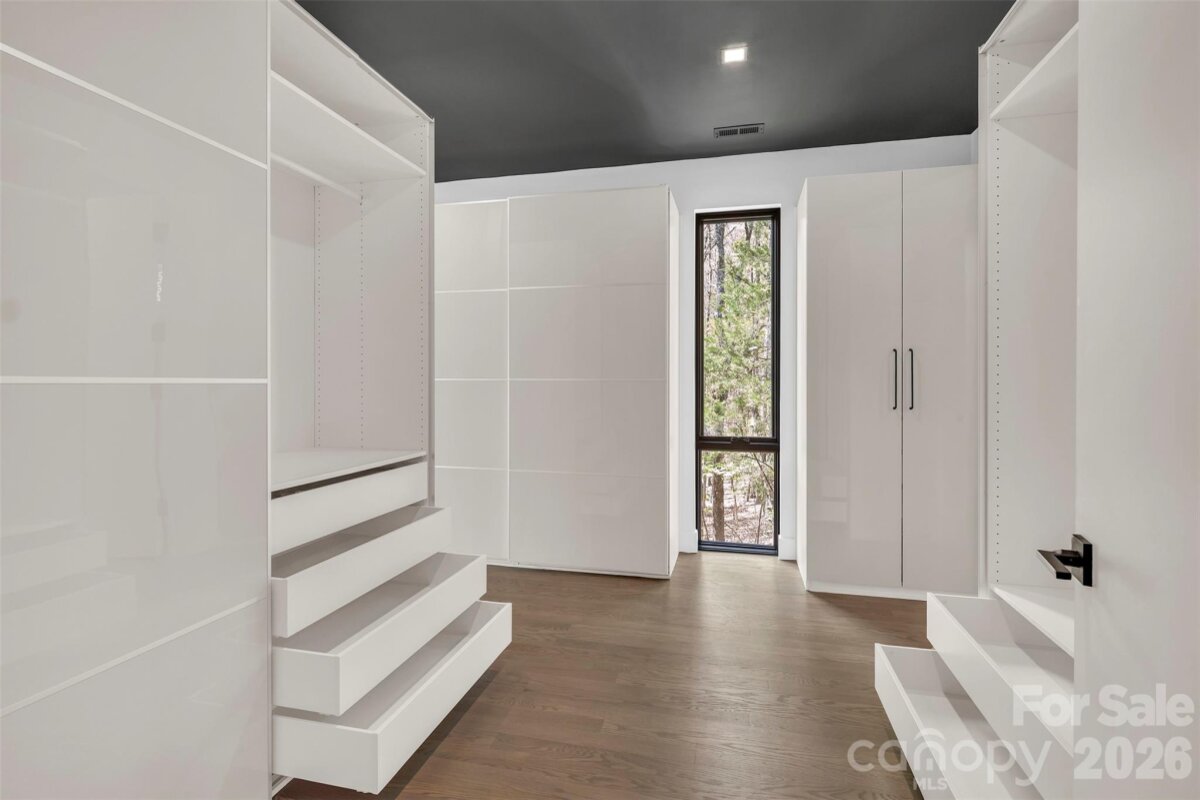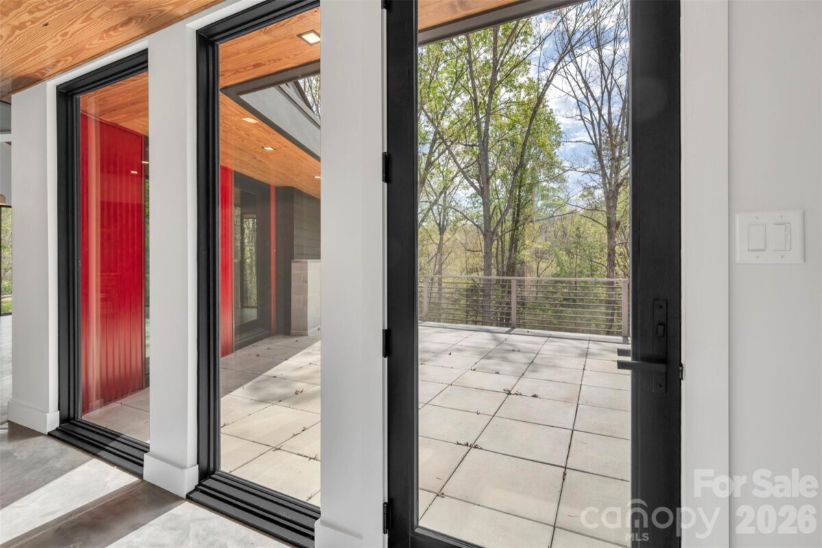 Set within the serene, tree-lined enclave of Heron Cove near the shoreline of Lake Wylie, this architecturally striking 2024 residence redefines modern lakeside living. Thoughtfully sited on a private, and wooded 0.81-acre lot with seasonal lake views, the home masterfully blends contemporary design, effortless flow, and refined privacy. Just minutes from Lake Wylie’s boating, trails, and recreation, along with an easy 40-minute drive to Charlotte. Natural light pours into every space through expansive, strategically placed windows and glass walls that frame the surrounding landscape like living art, creating an atmosphere that feels simultaneously monumental and deeply grounded. The open-concept layout unfolds with quiet sophistication, guiding you seamlessly from one area to the next while preserving intimate pockets of privacy. The chef’s kitchen commands attention with its dramatic custom concrete island in a striking teal finish, premium Wolf appliances, dual dishwashers, integrated appliance garages, dedicated beverage center, and a built-in barista station turning the space into a true centerpiece for gathering and entertaining. An elevated central courtyard terraces blur the boundaries between inside and out, offering a dramatic perch for al fresco dining, morning coffee with lake breezes, or peaceful evenings under the stars. Built with forward-thinking precision, the home features energy-efficient systems, solar-ready design, smart-home pre-wiring, two tankless water heater, and sustainable construction details throughout. Concrete and tile flooring, attached two car garage, and a no-HOA setting further enhance its low-maintenance appeal. This is more than a home—it’s a rare opportunity to own a thoughtfully crafted modern retreat in one of Lake Wylie’s most desirable pockets, where privacy, views, and refined living converge. Schedule your private showing today and experience firsthand the exceptional design, setting, and elevated lifestyle that set this property apart.