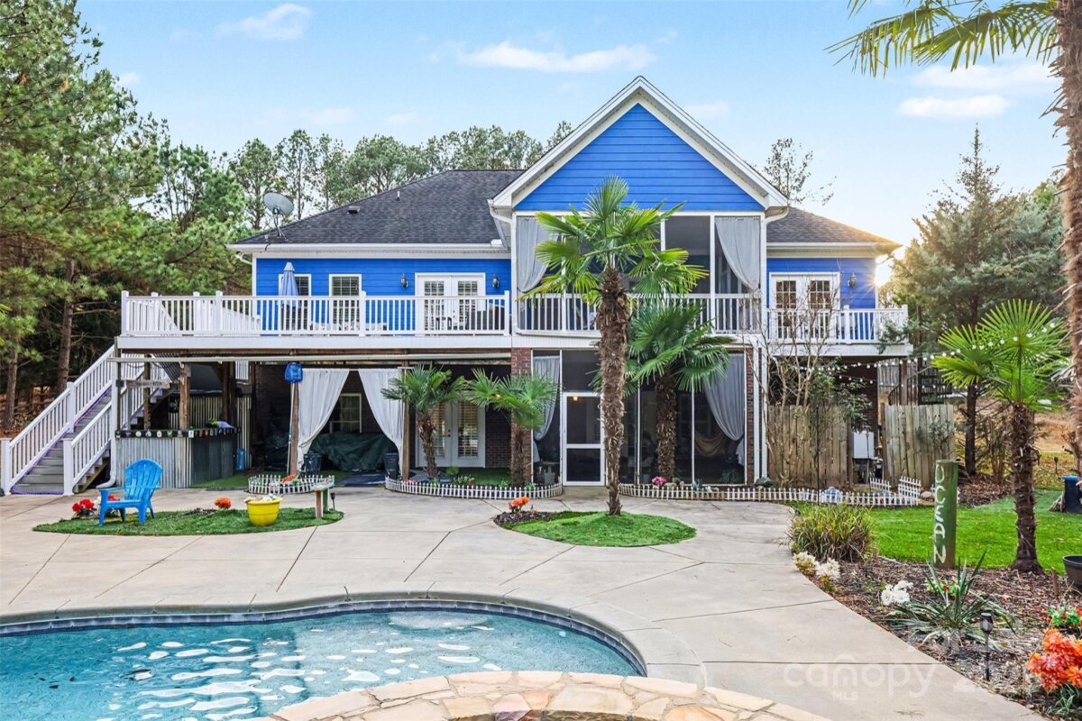 Custom-built home with a private pool and hot tub—perfectly positioned just steps from the shores of Lake Wylie. This thoughtfully designed residence offers 3 bedrooms plus a bonus room on the upper level that could be used as an additional bedroom, 3 full baths, and 2 half baths, with an open, free-flowing layout filled with natural light and inviting spaces for everyday living and entertaining. The main level features spacious living and dining areas, a well-appointed kitchen, and a convenient secondary suite ideal for guests or multi-generational living. The lower level is home to the private primary bedroom retreat, offering separation and quiet, along with generous closet space and a well-designed bath. Outdoor living is a true highlight, with a beautifully landscaped backyard centered around the pool and hot tub, complemented by two screened-in porches—ideal for relaxing or hosting gatherings. Located in a peaceful Lake Wylie community, this custom home blends comfort, privacy, and thoughtful design in a truly special setting.