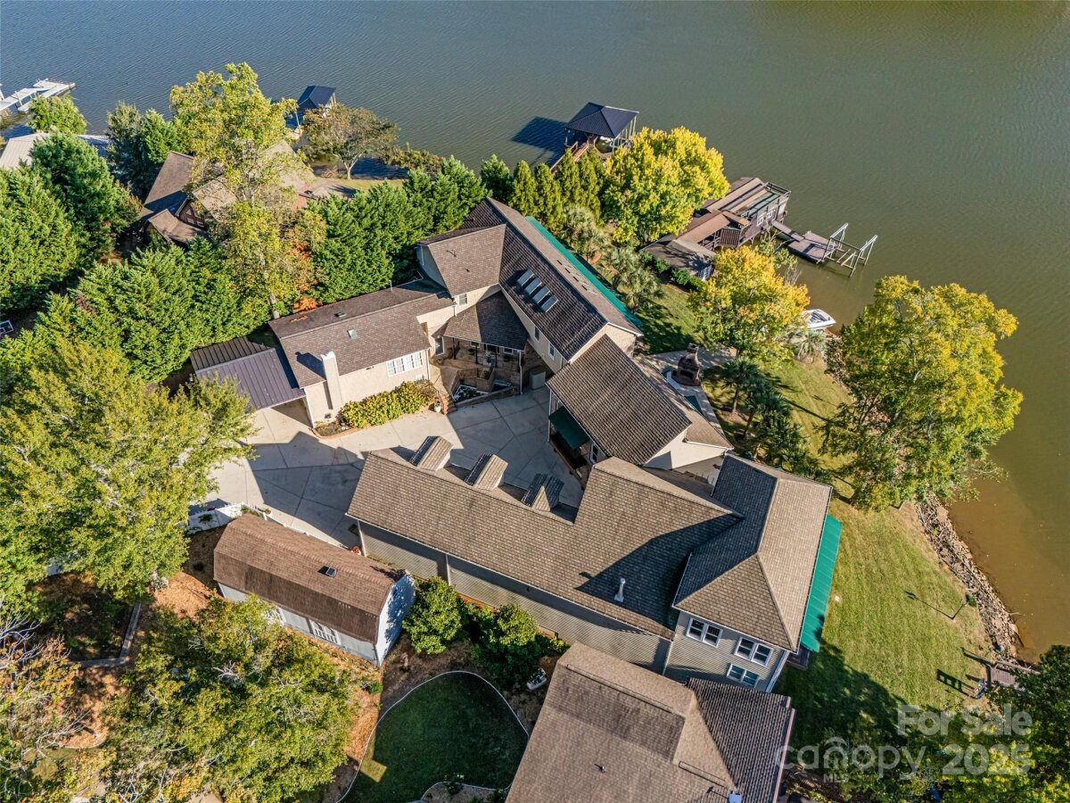Unique custom-built waterfront home on Lake Wylie. Perfect for a large family or anyone who loves to entertain! Beautiful lakes views throughout the entire home. Enjoy your (2) private docks, one with a boat lift, your own private boat ramp to launch into the lake and enjoy anytime. The boathouse has plenty of room with its own kitchen for those fun days out on the lake. The main home provides an open great room with fireplace, full gourmet kitchen, commercial grade stainless appliances and hibachi stove top, wet bar, and walk-in butler's pantry all leading to the large Trek deck overlooking the lake. The large open-airy primary bedroom provides amazing natural light from the skylights to the balcony overlooking the lake, dual walk-in closets, fireplace and your private sitting room and wet bar area. The walk-out finished basement with separate bedroom and full bathroom leads out to a private brick patio overlooking the lake. The separate living quarter/apartment area attached to main home includes a private entrance, large living area, bedroom, bathroom and full kitchen perfect for guests or an in-law suite. The extended wing that is also connected to the main home also with a separate entrance has a beautiful custom library/office with fireplace that overlooks another great room with beautiful lake views. The wing also has a beautiful full kitchen, separate bathroom w/sauna that leads to the Gunite pool/outdoor kitchen and fireplace. The gathering/lounge room leads to a private theater room perfect for cold/rainy days. There are several garages, one connected to the main home with built-in cabinets can easily fit several cars and/or toys. The large, attached garage(s) to the wing has an area large enough to pull your RV/Camper or boat, that is wired for 50 AMP and has plenty of room several vehicles, hobbies and work.