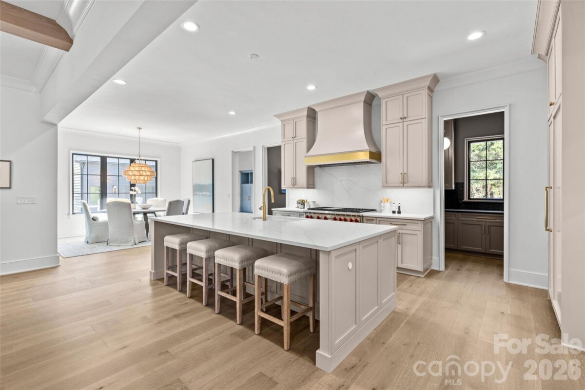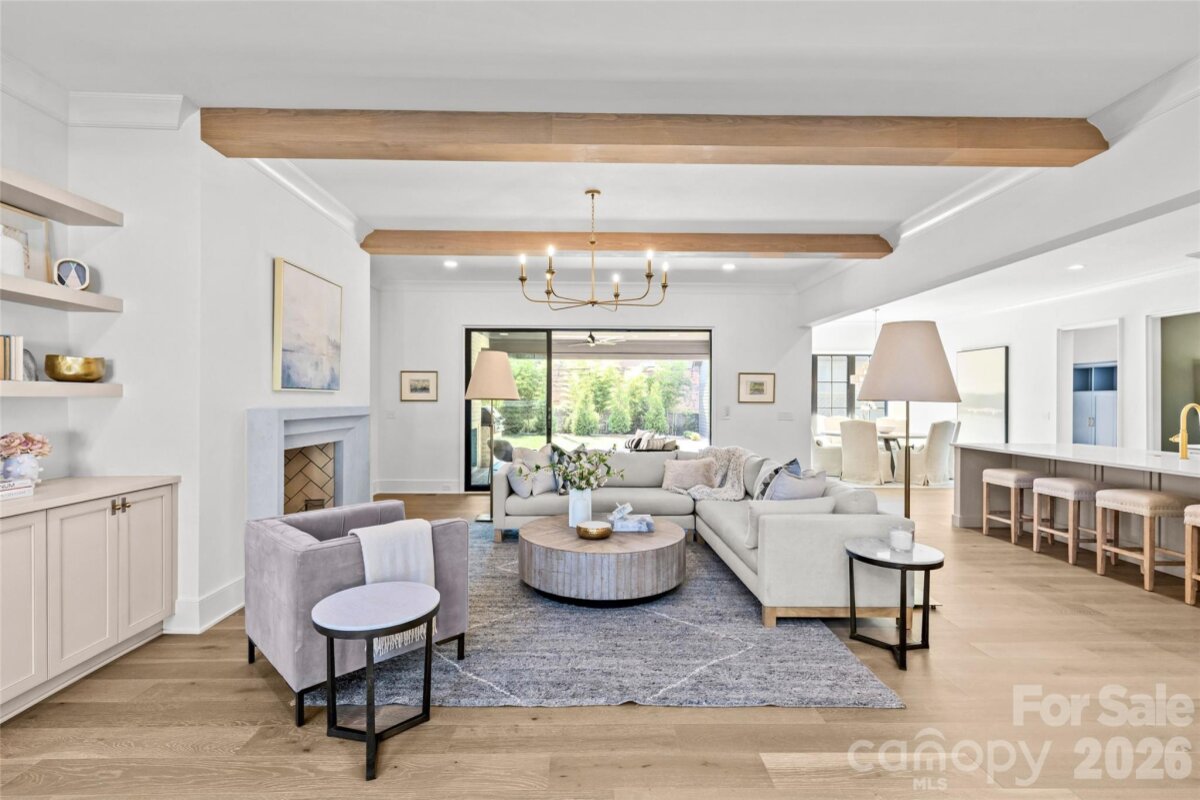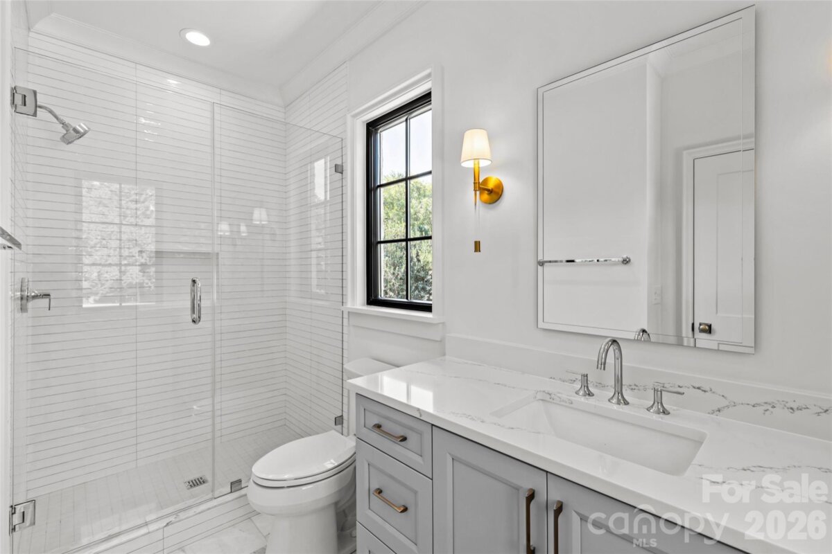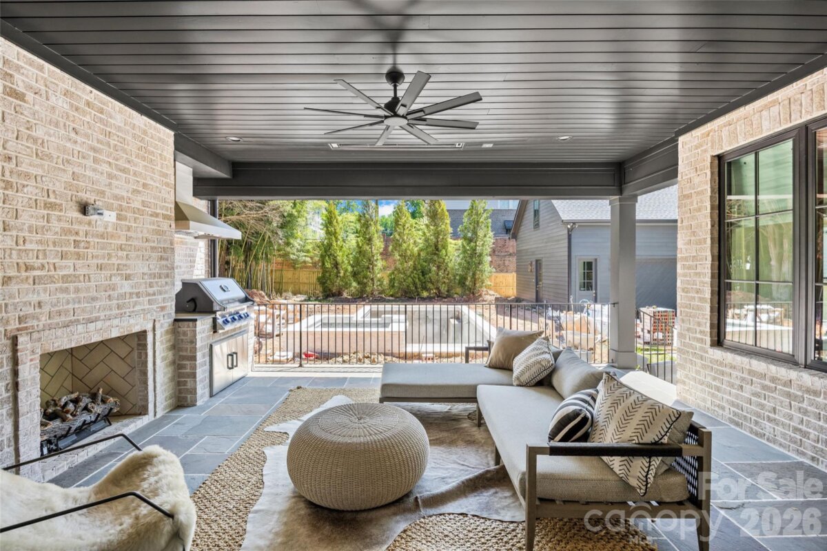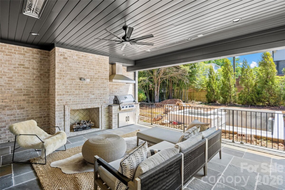 Drawn by acclaimed architect Robert Foster and built by Westwood Custom Homes, this Old Cotswold stunner delivers refined, modern sophistication in one of Charlotte’s most coveted neighborhoods. A soaring two-story foyer with hardwood herringbone inlay sets the tone, complemented by bountiful natural light, curated interiors, and custom trim throughout. The chef’s kitchen features bespoke cabinetry, a 46" Wolf range, and a show-stopping scullery with exceptional storage, wine and beverage fridges, and a second dishwasher—designed for those who love effortless entertaining. The Great Room is anchored by a wood-burning Isokern fireplace and opens through a retractable glass wall to a covered outdoor living space complete with a gas fireplace, built-in heaters, and a gas grill. A glamorous pool with an integrated spa creates seamless year-round indoor/outdoor living. The main-level primary suite offers a vaulted ceiling, oversized windows with custom window treatments, and a spa-inspired ensuite with a soaking tub, dual vanities, and a zero-entry shower. The expansive walk-in closet includes an integrated washer and dryer, completing the retreat. A main-level office with an adjacent bath doubles as a guest suite, while the second level offers three ensuite bedrooms and a flexible living space with a dry bar and dedicated half bath. The large laundry room adds ideal everyday functionality. A nearly 400-square-foot private suite over the garage provides additional space for guests or a secondary office. 1321 Ferncliff delivers elevated design, exceptional craftsmanship, and true resort-style living.
