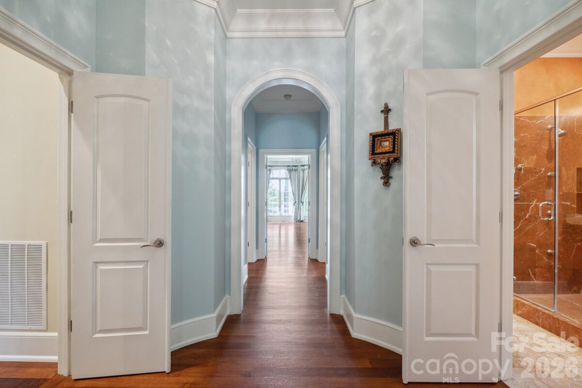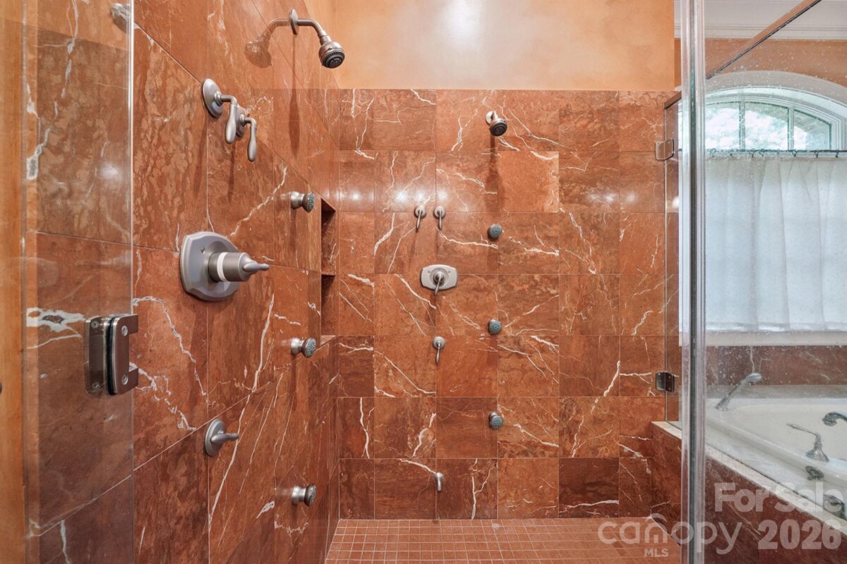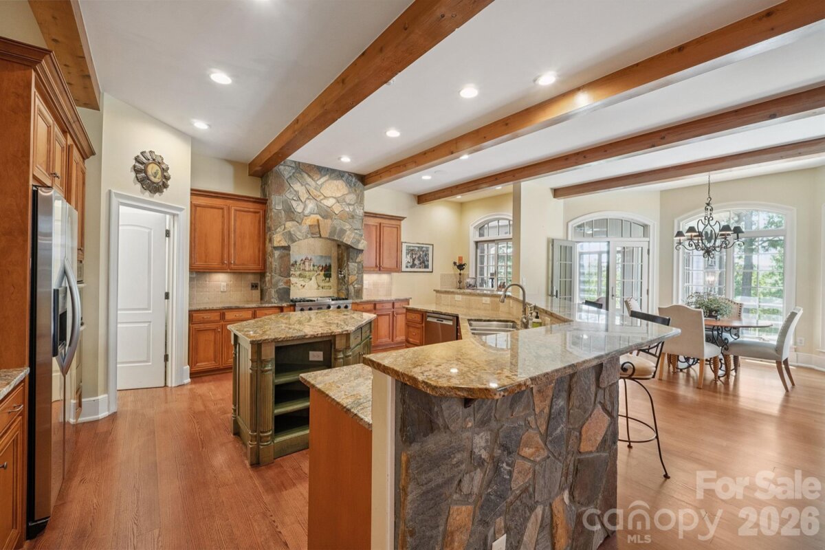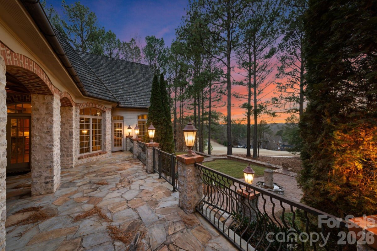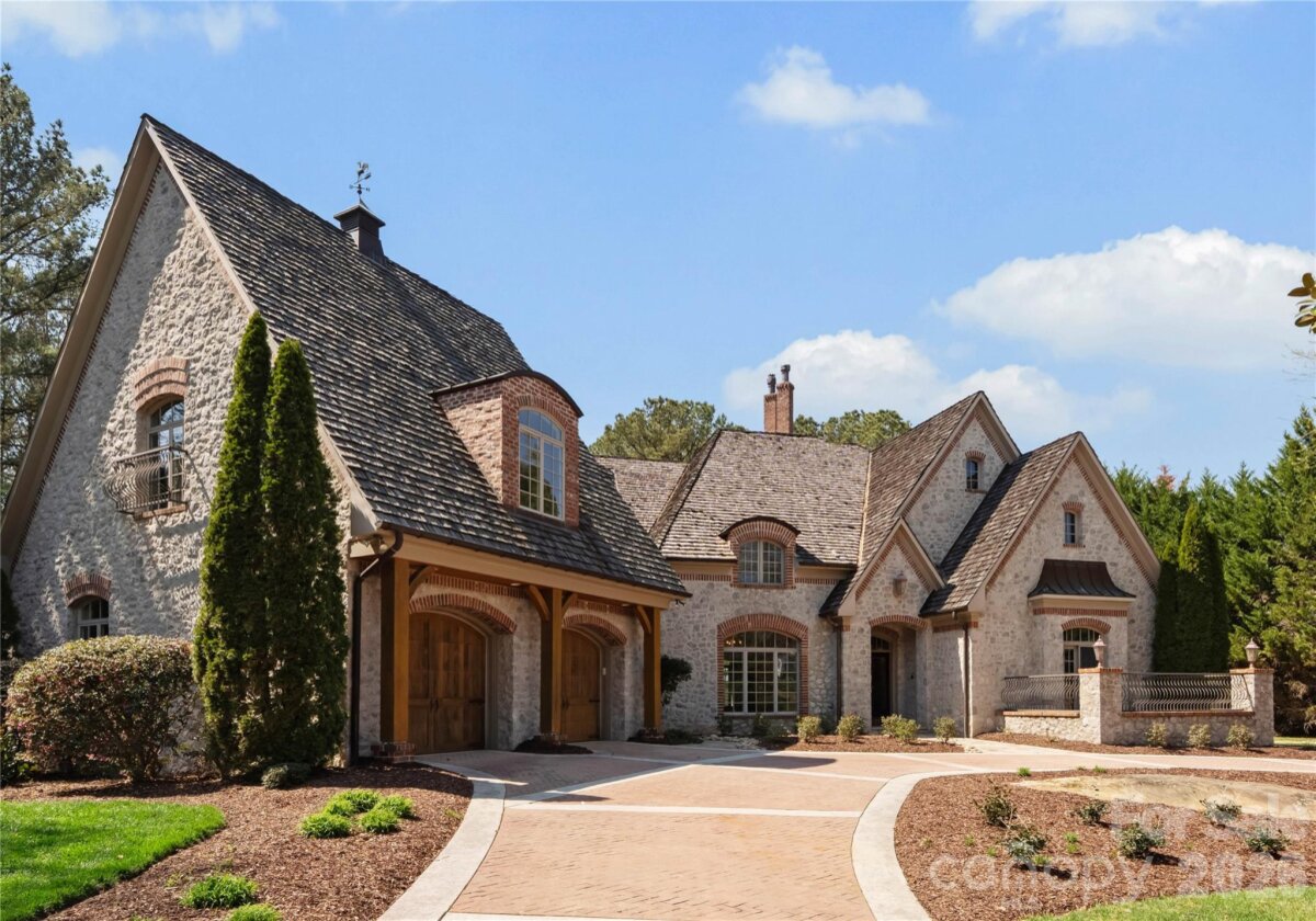 Stunning French Country Estate on three (3) combined golf course lots in prestigious Verdict Ridge, overlooking the iconic 16th Green. Natural stone exterior, brick detailing, and copper accents exude timeless charm. Wellness-focused features include an indoor HydroWorx Sports Therapy pool, Fitness Room with pro-grade flooring, Sauna, and Steam Bath - a private health retreat. Gourmet Kitchen with Viking range, stone hood, mural backsplash, wine bar with copper sink, and pass-through to golf-view Sun Room. Great Room with beamed/coffered ceilings and floor-to-ceiling stone fireplace. Main-level Primary Suite with multi-tiered tray, European-style fabric wall coverings, & private study. Expansive walk-in attic storage areas, perfect for additional bedrooms or bonus rooms (see example in attic space expansion PDF file attached). Enjoy radiant heat floors, Artisan-inspired murals, flagstone terraces, putting green, Generac whole-house standby generator (automatic backup power), natural fenced area for furry loved ones, oversized garage with golf cart bay, and whimsical playhouse in garage apartment above. A rare blend of old-world charm and modern amenities - luxury meets lifestyle.