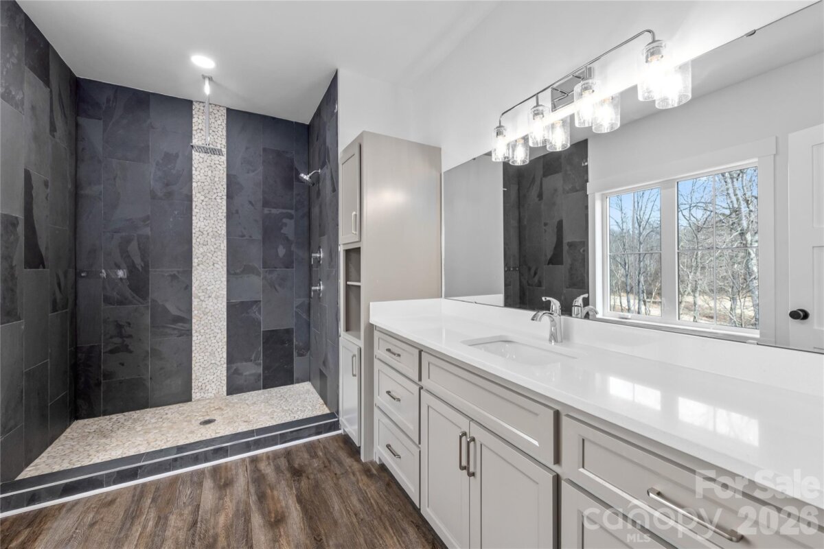 Experience modern elegance and breathtaking golf course views in this custom 2023-built masterpiece, perfectly situated on the 4th hole of Verdict Ridge Country Club. Nestled on a peaceful cul-de-sac, this 4-bedroom, 3.5-bath home boasts over 3,100 sq. ft. of thoughtfully designed living space, blending luxury and functionality at every turn. Step through the dramatic 20+ ft vaulted entry and into a light-filled interior that exudes contemporary sophistication. Dual offices/flex spaces offer versatility for work or study, while 10-ft ceilings, 8-ft doors, and oversized 8x12 sliders create an effortless flow between indoor and outdoor living. The open-concept design leads to a spacious sun deck, where you can take in panoramic views of the Virdict Ridge Golf Course and surrounding wooded landscape—a true sanctuary. The sleek kitchen, a modern chef’s dream, showcases quartz countertops, stainless steel appliances, and a butler pantry for seamless entertaining. Anchoring the great room is a striking floor-to-ceiling stone fireplace, adding warmth and style to this inviting space. Upstairs, the serene primary suite offers a private retreat with tranquil treetop vistas and a spa-inspired bath featuring a dual-head walk-in shower and overhead waterfall. The fully finished walkout basement expands your living options, complete with additional lounging areas, a covered porch, hot tub, and unrivaled views of the creek and golf course—your private escape to unwind. Thoughtful touches like a drop zone and laundry room ensure daily convenience without compromising on the home's sophisticated charm. This home is more than just a place to live; it’s a modern haven that perfectly balances elegance, comfort, and the beauty of golf course living.