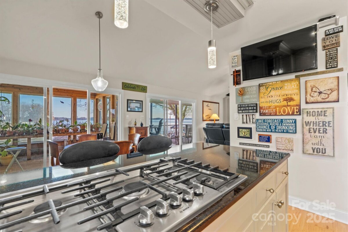 Experience extraordinary main-channel views and timeless waterfront living in this beautifully maintained 3-bedroom, 2-bath ranch on Lake Norman. Positioned to capture wide, open water, this home offers stunning sunrises, peaceful moonrises, and shimmering reflections from nearly every roomΓ’β¬βan exceptional vantage point rarely found. Located in a welcoming, well-established community with no HOA, the property provides both freedom and convenience. Friendly neighbors, a comfortable sense of privacy, and the ability to park your boat or RV at home all enhance the appeal. Inside, the great room features hardwood floors and a wood-burning stove, creating a warm and inviting central gathering space oriented toward the lake. The updated kitchen offers granite countertops, a Bosch gas range, double ovens, and excellent storage, including a walk-in pantry. A thoughtful drop zone off the garage adds everyday functionality. The dining room includes custom built-in cabinetry, and both bathrooms have been updated with skylights that bring in soft natural light. A standout feature is the screened porch that spans the length of the home, offering the perfect place to enjoy lake breezes, morning coffee, and year-round views. This space also includes a hot tub and sauna, creating a private retreat for relaxation. Outdoors, the property shines with a large grassy backyard ideal for play, gatherings, and enjoying the outdoors. The 10,000-gallon Gunite pool sits on the lake side and becomes surrounded by lilies each spring through AugustΓ’β¬βa unique and beautiful seasonal touch. The gently sloping lot leads to your private waterfront, complete with a dock, 2 boat lifts, and 8Γ’β¬β10 feet of water at full pond, offering exceptional access for boating and recreation. Practical updates and features include a 2013 roof, 2017 furnace, heat pump, and central air, a gas tankless water heater, a whole-house generator, and a 4-car garage added by the sellers, providing abundant storage for vehicles, tools, and lake equipment. A dedicated wood shed supports the wood-burning stove. Combining exceptional views, meaningful updates, generous outdoor amenities, and an unmatched main-channel setting, this Lake Norman home offers a rare opportunity to experience lake life at its finest.