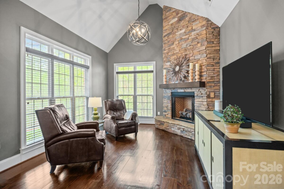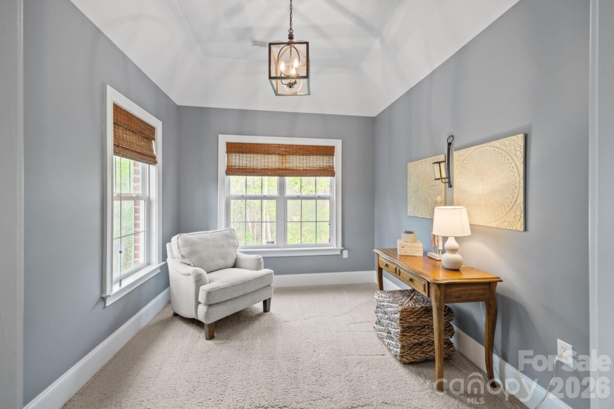 Opportunities like this are becoming increasingly rare — custom-built full brick home set on 2.76 private, wooded acres in a gated community — offering a level of privacy, craftsmanship, and character that is increasingly hard to find in today’s market. A long private driveway and manicured landscaping create a true sense of arrival, leading into an open, thoughtfully designed layout highlighted by vaulted and coffered ceilings, extensive millwork, solid wood doors, and rich hardwood flooring throughout the main living areas. The vaulted family room is anchored by a floor-to-ceiling stone fireplace and flows seamlessly into the kitchen and keeping area—creating a natural gathering space ideal for both everyday living and entertaining. The kitchen features granite countertops, a large center island, stainless steel appliances, and a striking exposed brick accent wall with custom wood mantle—a standout design element rarely found in typical new construction. The primary suite on the main level offers a true retreat, complete with a coffered ceiling and a private sitting room or home office behind French doors. The en-suite bath includes dual vanities, a soaking tub set within an arched alcove, a walk-in tiled shower, and an expansive walk-in closet w/ custom shelving. Outdoor living is almost more impressive, with a covered back porch featuring a beadboard ceiling and Trex decking, overlooking a peaceful, wooded backyard that provides exceptional privacy and usable space. Additional highlights include a formal dining room with detailed trim work, multiple flexible living areas, spacious secondary bedrooms, private upstairs bedroom w/ full bathroom and an enormous walk-in attic, and a 3-car side-load garage. Homes offering this combination of acreage, privacy, and custom craftsmanship—within a gated community—are increasingly rare, especially in such a convenient location near Lake Norman. Schedule your showing early to experience it in person.