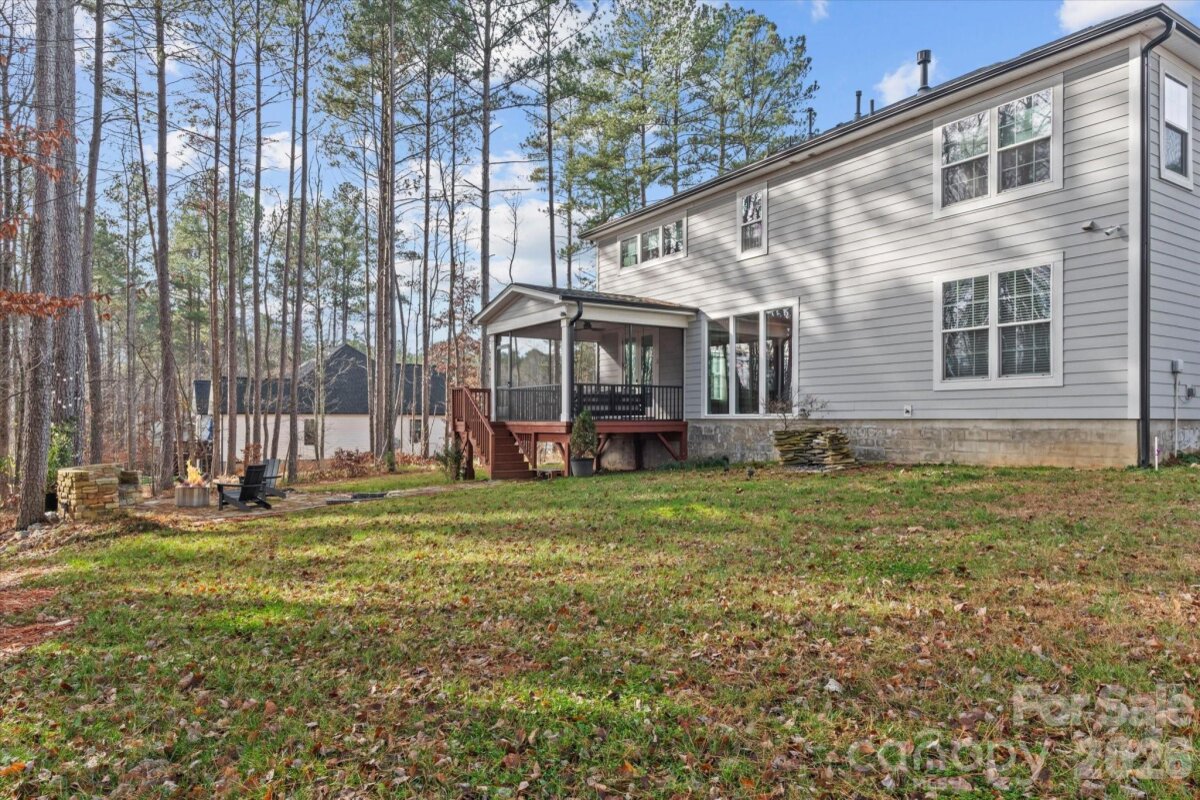 Stunning wooded retreat just steps from Lake Norman. This beautifully updated home is tucked among the trees and showcases an array of high-end finishes and thoughtful upgrades, including an extended concrete driveway, in-ground irrigation, whole-home sound system, updated upstairs flooring, and a newly designed back patio with fire pit. Professionally landscaped grounds feature new front sod, a graded wooded backyard, and an upgraded drainage system. Inside, pre-finished hardwood floors flow throughout the main living areas. The living room with gas fireplace opens seamlessly to the dining area, where double doors lead to a tranquil screened-in porch. The gourmet chef’s kitchen offers bar seating for four, top-tier stainless steel appliances, and a spacious walk-in pantry. A main-level in-law suite with a full attached bath adds flexibility. Upstairs, an oversized loft provides the perfect space for a home office, playroom, or bonus area. The primary suite features a modern ensuite with a full glass shower, dual vanities, and an expansive walk-in closet with direct access to the laundry room and sink. Two additional bedrooms and a full hall bath complete the upper level. Step outside to a beautifully secluded, tree-lined backyard with a private patio—ideal for relaxing evenings just blocks off the lake. A rare combination of privacy, luxury, and location near Lake Norman.