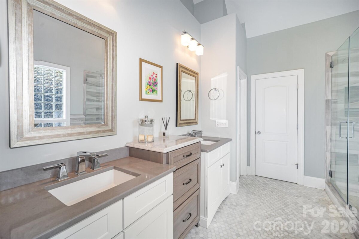 Stunning WATERFRONT estate on the shores of Lake Norman set on a large, extremely private 1+ acre lot with 146 feet of pristine shoreline and deep water. Enjoy your own private pier with boat lift and covered seating area. You'll love the exceptional privacy and year round, long-range water views of the lake. This 5 bedroom, 4 bathroom luxury property was thoughtfully designed for both everyday comfort and elevated entertaining. The Main Level Primary Suite features serene lake views and a spa-inspired primary bathroom with heated floors. The well-appointed kitchen has a gas cooktop, oven with a warming drawer, instant hot water faucet, breakfast bar, and center island. Connected and open living and dining areas have views of the lake from multiple vantage points. The fully finished walk-out lower level significantly expands the home’s living space. This level includes a second full kitchen complete with oven, cooktop, refrigerator, microwave, and wine cooler, along with a spacious living area, office, fitness room, bedroom, full bath, and a dedicated theater room with surround sound whole-home audio. The full second kitchen and living quarters along with private, separate entrance make this a great set up for guests or multi-generational living. This home is all about lake living and the outdoor living spaces are exceptional, with multiple porches and patios designed to maximize lake views and outdoor enjoyment. Professionally designed landscape with irrigation and accent lighting extends the living space outdoors all the way to the dock. In addition to your own private pier, covered seating and boat lift, you'll have two personal watercraft (PWC) ramps, and a new swim ladder—providing effortless access to all Lake Norman has to offer. Additional upgrades include a whole-home water filtration and softener system, radon mitigation system, central vacuum, irrigation system, sealed and coated garage floor, and extensive storage throughout. Pebble Bay is a beautiful Lake Norman community located with easy access to Charlotte Douglas International Airport, shopping, and dining, this remarkable property offers a rare combination of luxury, privacy, and lake access to enjoy an exceptional Lake Norman lifestyle. This home has it all!