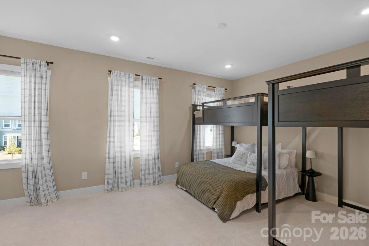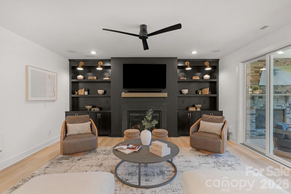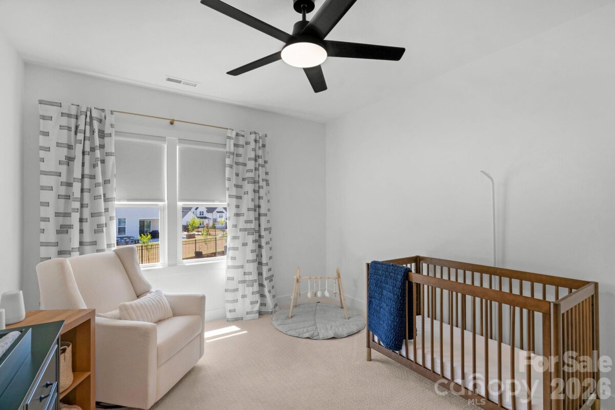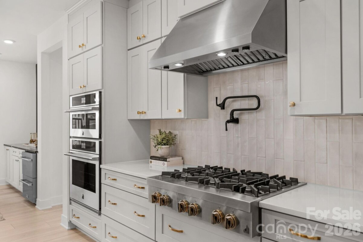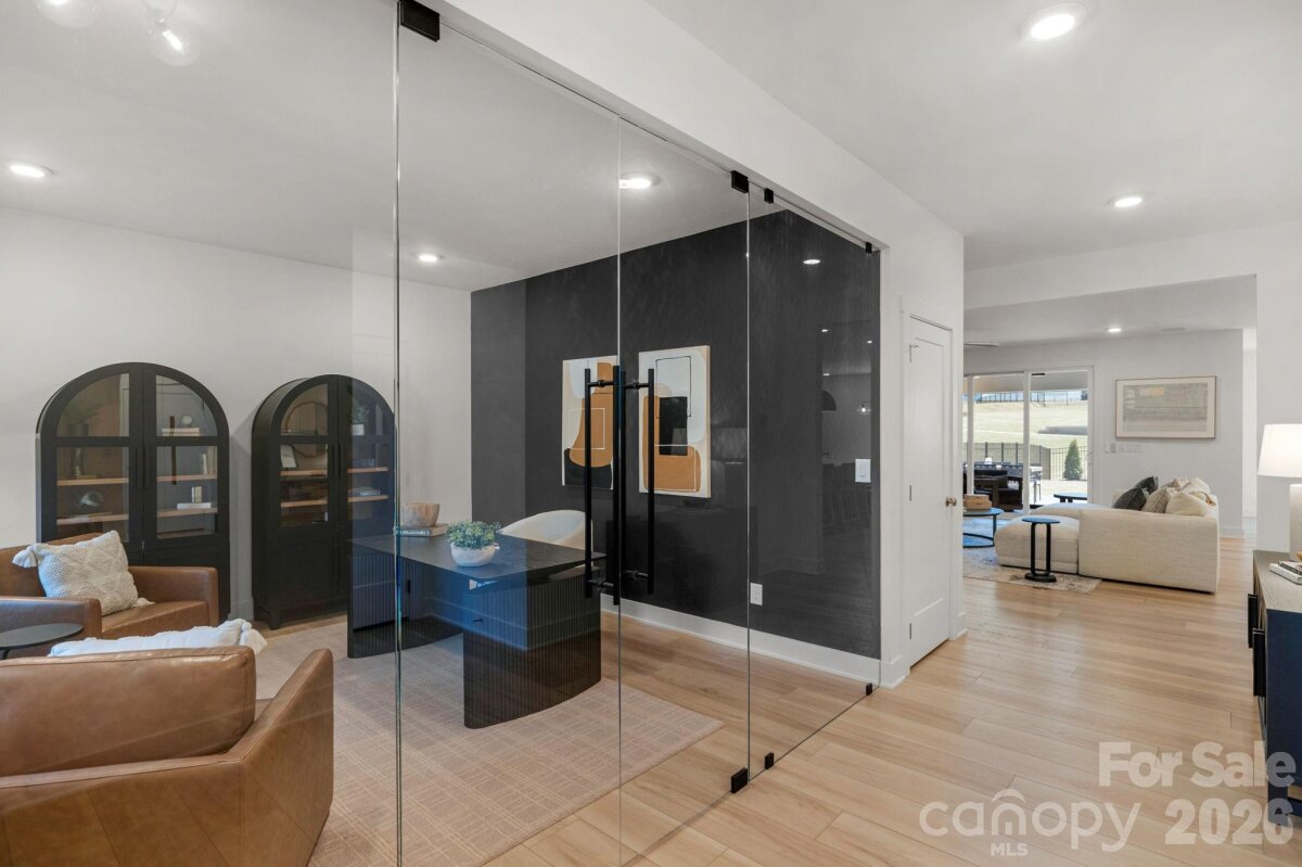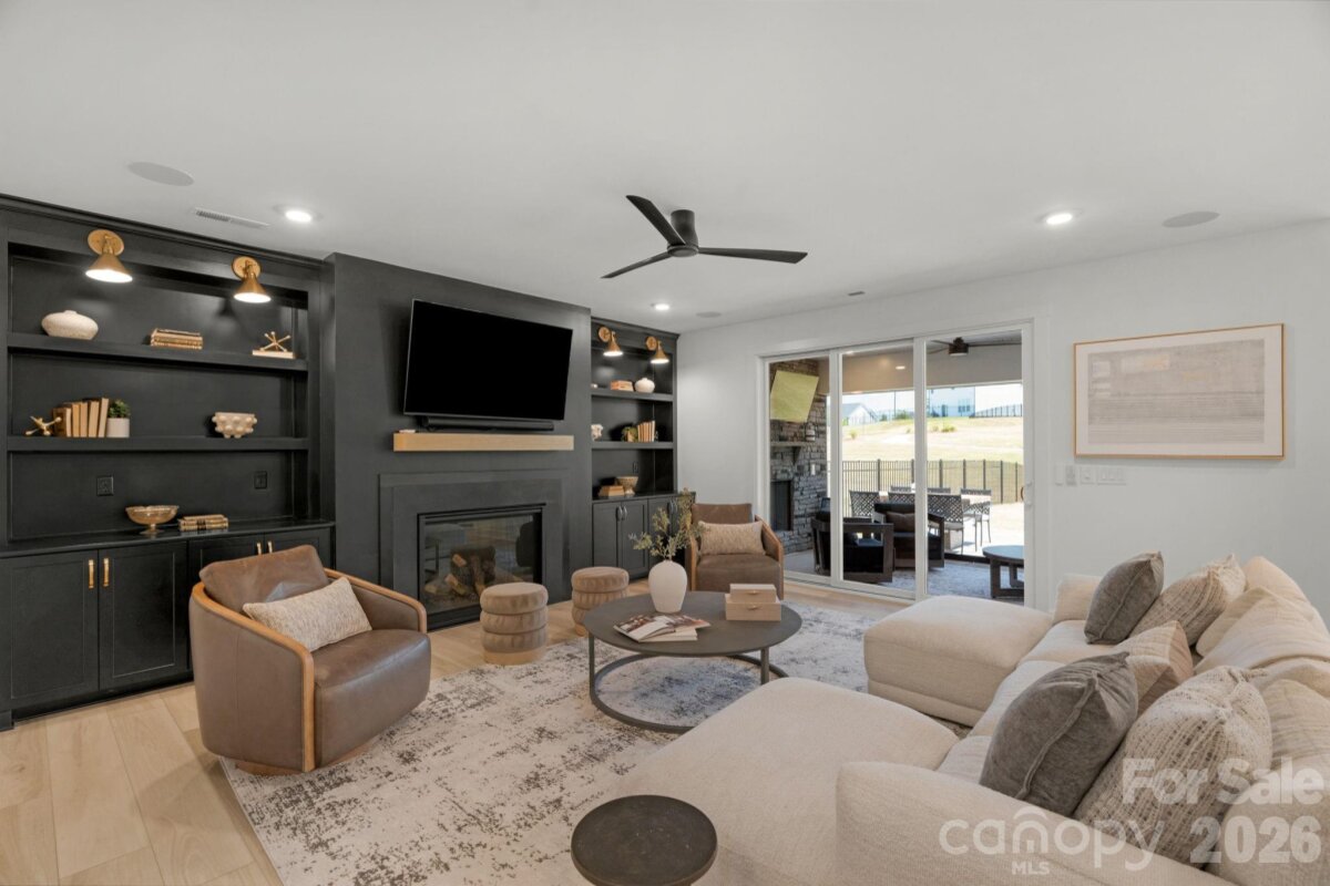 Exquisite, meticulously maintained modern farmhouse offering 5 bedrooms and 4.5 baths. Built in 2024 by Toll Brothers, this exceptional home is nestled in Fort Mill’s coveted Ridgecrest community, just moments from Charlotte's Ballantyne Area with premier shopping, dining, entertainment, and effortless access to major highways. A thoughtfully curated open-concept design blends sophistication and functionality, featuring a main-level guest suite and a private home office with custom glass doors. The great room is anchored by a gas fireplace with custom built-ins and designer lighting, creating a warm yet refined gathering space. The gourmet chef’s kitchen impresses with an expansive island, high-end appliances, hooded gas cooktop with pot-filler, stacked cabinetry, and a spacious walk-in pantry, complemented by a convenient drop zone and powder room. Seamless indoor-outdoor living awaits with a covered patio showcasing a striking stacked-stone gas fireplace and motorized screen, extending to an enlarged patio overlooking the professionally landscaped, fenced backyard—perfect for both intimate evenings and upscale entertaining. Upstairs, the luxurious primary suite is gorgeous and a true retreat, highlighted by a tray ceiling and a spa-inspired bath featuring two expansive walk-in closets, a freestanding soaking tub, oversized glass-enclosed tiled shower, and dual vanities. Three additional bedrooms, two full baths, a generous loft, and a beautifully appointed laundry room with built-in cabinetry, countertops, and utility sink complete the upper level. Set within a low-tax area and served by highly regarded schools, this home offers an exceptional blend of elegance, comfort, and convenience.