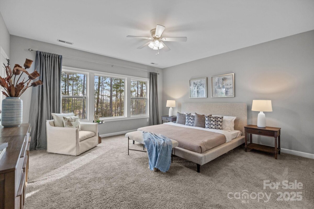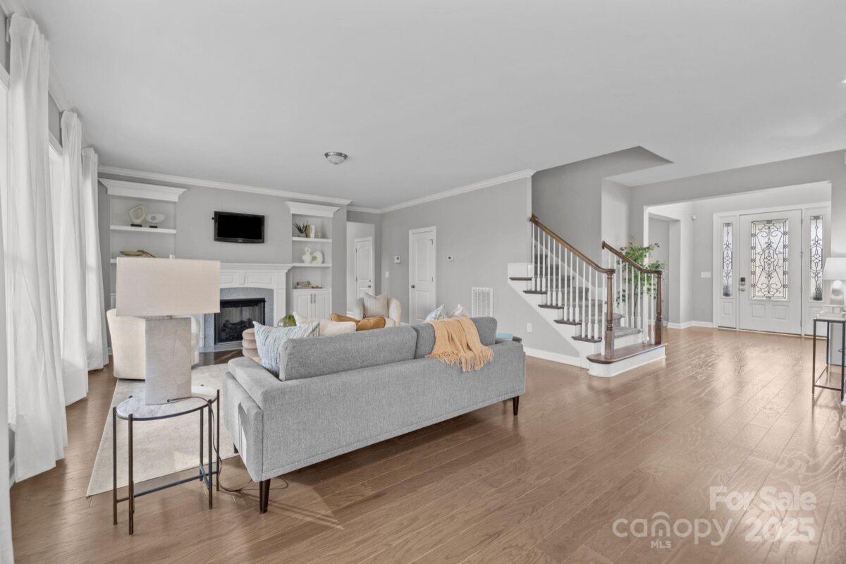 Welcome home to this stunning 5 bed, 5 bath home in the highly sought-after Habersham community. This home offers an exceptional blend of space, style, and comfort. A grand two-story entry foyer welcomes you inside, while the inviting front porch sets the stage for rocking chairs, sweet tea, and classic Southern living. The main level features an inviting open-concept layout with rich wood floors, a spacious living room with a cozy gas fireplace and built-in shelving, as well as a gorgeous chef’s kitchen with an oversized quartz island, gas cooktop, double ovens and ample storage. A formal dining room is ideal for entertaining, while an informal dining area overlooks the backyard and opens directly to the deck for seamless indoor/outdoor living. The main-level guest suite is thoughtfully designed for privacy and comfort, featuring a spacious bedroom, a full en-suite bathroom, and ideal separation from the main living areas, perfect for hosting guests, multigenerational living, or even a private home office. A convenient drop zone just off the garage adds everyday functionality. Upstairs, you’ll find generously sized bedrooms and flexible living spaces, including two bedrooms connected by a Jack-and-Jill bathroom and an additional bedroom with its own private en-suite. The primary bedroom features access to a second-level private deck—perfect for morning coffee or a relaxing evening drink and a peaceful retreat. The spa-like primary bathroom offers a walk-in shower and a soaking tub, creating a true owner’s escape. A large bonus room provides additional space for a media room, playroom, or home gym, while oversized closets throughout offer excellent storage and comfort. Habersham offers resort-style amenities including a pool and clubhouse, sidewalks and walking trails, streetlights, and a tranquil pond with a dock for fishing. Conveniently located just minutes from I-77, shopping, dining, and top-rated schools, this home provides easy access to Charlotte and delivers the best of comfort and community living.