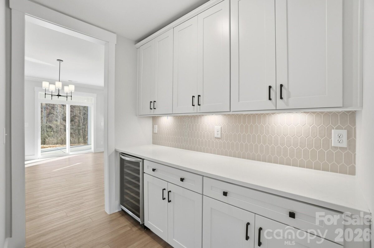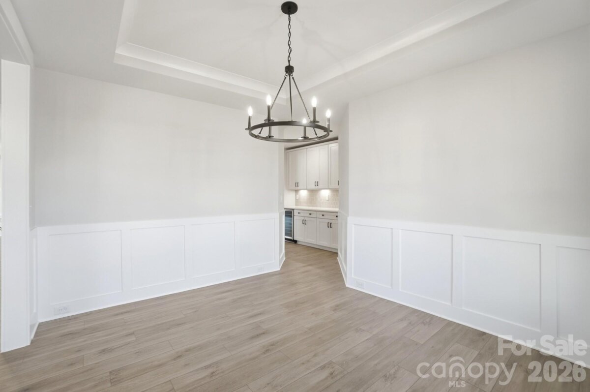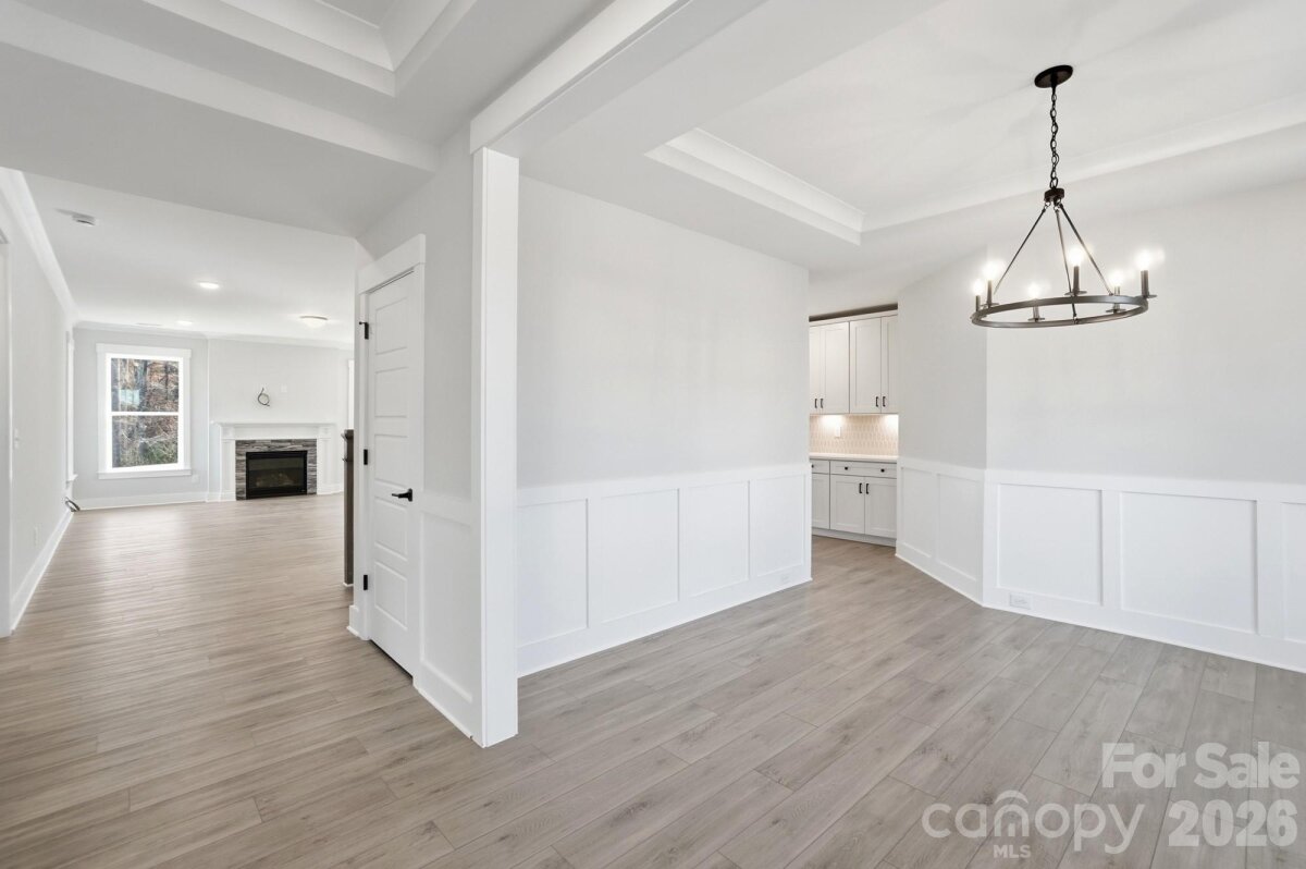 This beautiful home is READY NOW! This Charleston plan offers 5 bedrooms, 4 full baths, and more than 3,700 square feet of living space! The main floor features a guest bedroom & full bath, an office with French doors & Wainscoting, a dining room with tray ceiling, and a butler pantry with built-in wine cooler. The spacious kitchen has white cabinetry with a contrasting island, quartz counters, tile backsplash, a stainless range hood, and stainless appliances, including a gas cooktop. The upper floor includes the primary suite with luxury shower, 3 secondary bedrooms, a Jack-n-Jill bath, an additional full bath with a tiled 5-ft shower, and a loft with Enhanced Vinyl Plank (EVP) flooring. Outdoor space features a large covered rear porch and a paver patio with fire pit and seating wall. Other wonderful upgrades include 9-foot ceilings on the upper floor, tray ceilings in the foyer and primary bedroom, a gas fireplace in the family room, and a beadboard drop zone in the mud room. Neighborhood amenities include a pool, dog park, clubhouse & fitness center. Visit today and find out more!