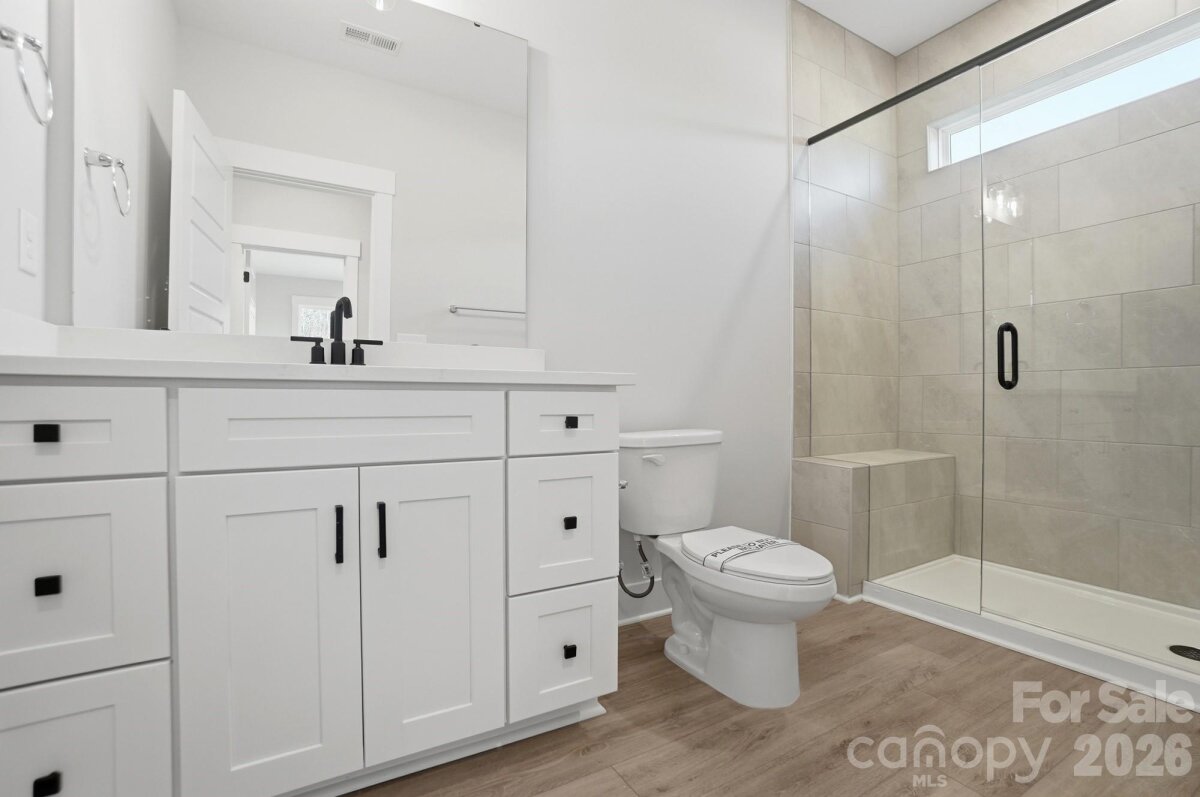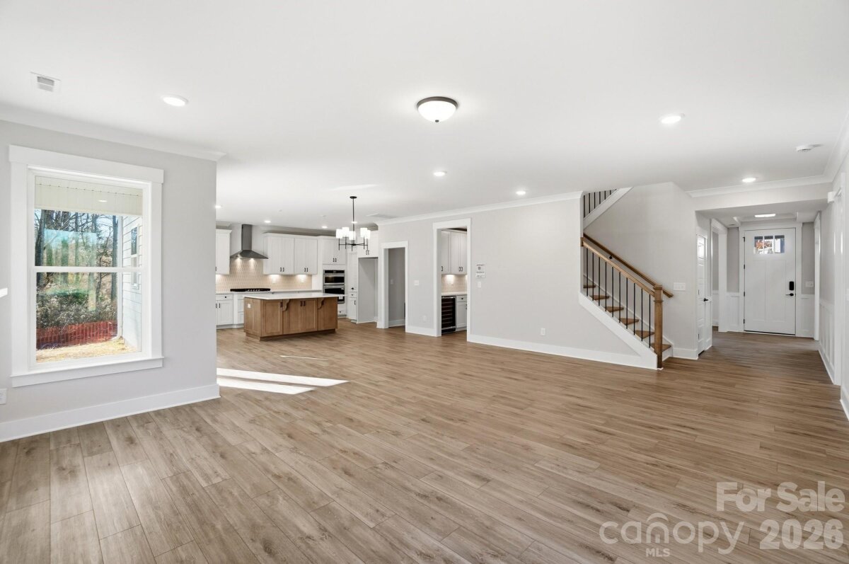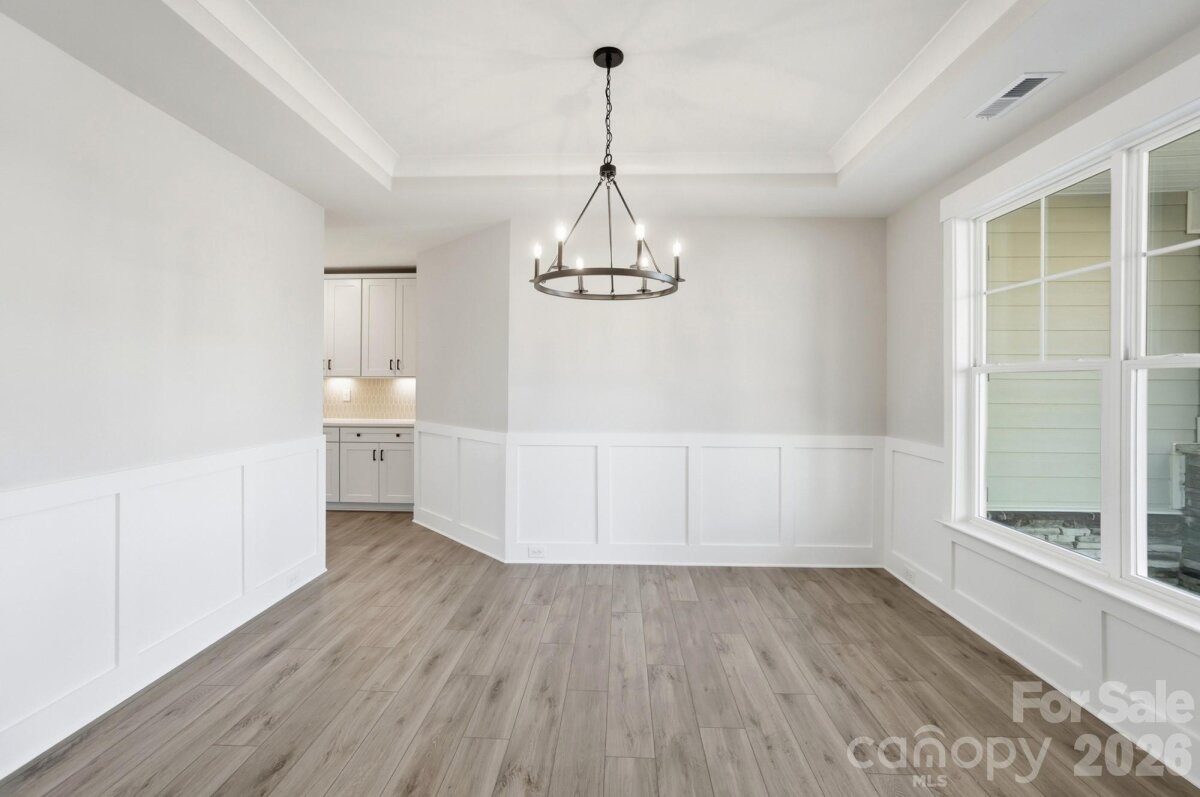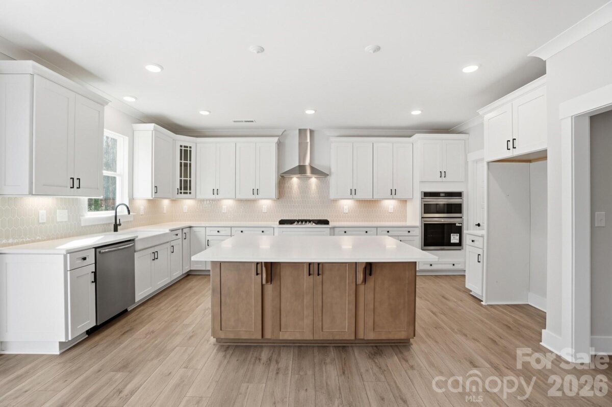 This beautiful home is READY NOW! This Charleston plan offers 5 bedrooms, 4 full baths, and more than 3,700 square feet of living space! The main floor features a guest bedroom & full bath, an office with French doors & Wainscoting, a dining room with tray ceiling, and a butler pantry with built-in wine cooler. The spacious kitchen has white cabinetry with a contrasting island, quartz counters, tile backsplash, a stainless range hood, and stainless appliances, including a gas cooktop. The upper floor includes the primary suite with luxury shower, 3 secondary bedrooms, a Jack-n-Jill bath, an additional full bath with a tiled 5-ft shower, and a loft with Enhanced Vinyl Plank (EVP) flooring. Outdoor space features a large covered rear porch and a paver patio with fire pit and seating wall. Other wonderful upgrades include 9-foot ceilings on the upper floor, tray ceilings in the foyer and primary bedroom, a gas fireplace in the family room, and a beadboard drop zone in the mud room. Neighborhood amenities include a pool, dog park, clubhouse & fitness center. Visit today and find out more!