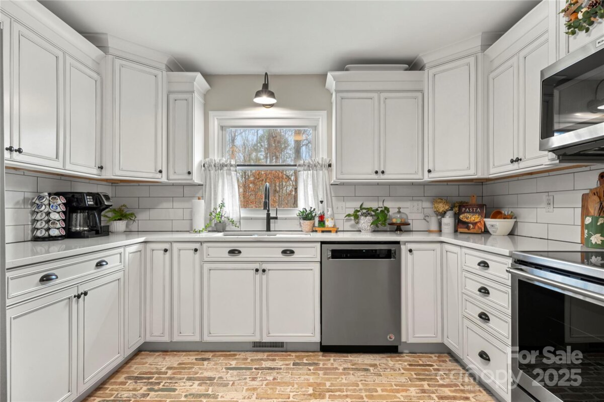 2010 Monticello Drive, located in Monticello Woods, boasts hardwood floors, custom cabinetry, quartz countertops, a walk out lower level with tile floors, in-ground pool, and fenced yards. With more than .42 acres, this property is just what you are looking for. There are 3 bedrooms and 2 bathrooms on the main floor along with a large living room, kitchen and dining room. The lower level includes a great room, bedroom, full bathroom, den/flex room and huge sunroom with walkout access to the carport, pool and rear yard. Kitchen updates include full overlay cabinetry with quartz countertops, stainless steel, kitchenaid appliances, reclaimed brick flooring, large crown molding and new pantry shelving. The solid surface floors on both levels provide ease of maintenance as well as ample room to entertain. With exterior updates in the past five years including french drains, rv parking, pool deck, pool liner, pool pump and components, increased lot size, fenced play yard and pool area; this brick ranch with a walkout lower level is ready for you to call it home. Located off Redbud Drive, this home is minutes from Hwy 74 & 85 and a short drive to 485. Survey, Floor plan, upgrades and disclosures available in mls media and by request. Make an appointment to see 2010 Monticello Drive today.