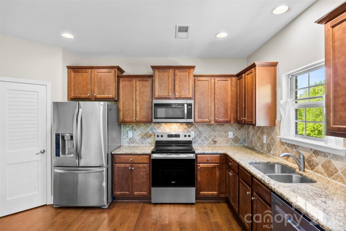 Welcome to the highly desired Kinmere Farms neighborhood. This 3 level home features 5 bedrooms, 4 full bathrooms, and a finished walk out basement. The main level has a walk out porch off of the kitchen/dining area that overlooks the trees beyond the back yard. There is a bedroom and full bathroom on the main level, 3 bedrooms upstairs with new carpet, and a bedroom with a full bathroom in the basement. The basement has an additional flex space along with 2 ample sized storage closets. This home has no shortage of space for entertaining. The back yard does have a slope going down to the trees. The owner has installed a small fenced in area outside of the walk out basement.