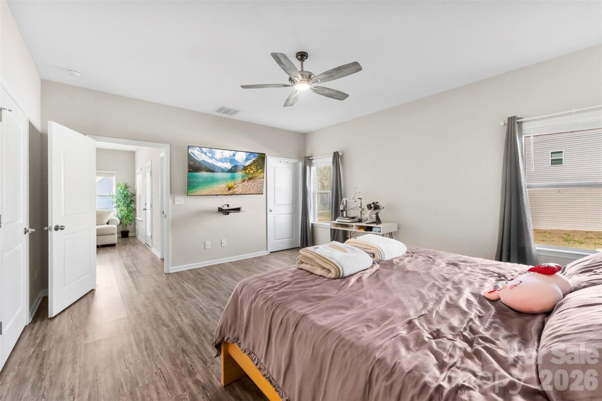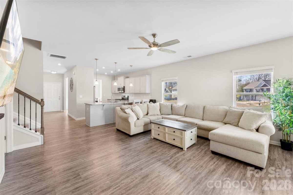 Built in 2020 and barely broken in, this Maycroft gem delivers the rare combination of modern construction, thoughtful layout, and an unbeatable location just minutes from the charm of downtown Belmont and Cramerton. Step inside and you're immediately greeted by an open-concept main level designed for real life. The kitchen anchors the space with gas cooking, stainless appliances, and a layout that flows effortlessly into the family room — making weeknight dinners and weekend gatherings equally easy. Slide open the back and you've got a covered rear porch waiting on you, the perfect spot to unwind without lifting a finger. Here's what sets this one apart: the primary suite is on the main level. Private, tucked away, and completely en suite — this is the kind of setup buyers are actively hunting for, and it's right here. A powder room rounds out the first floor, so single-level living is truly within reach. Head upstairs and you'll find two generously sized bedrooms, a full bath, and a flex loft space that works as a home office, homework hub, or hangout room, whatever your situation calls for. Corner lot. Two-car garage. Walking trail in the neighborhood. HOA-maintained. And priced to move at $409,900. This one checks every box.