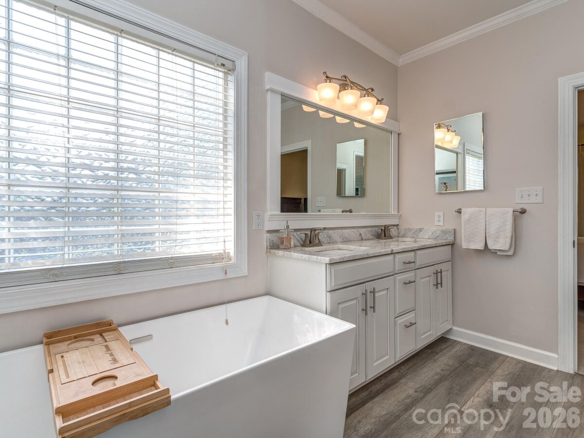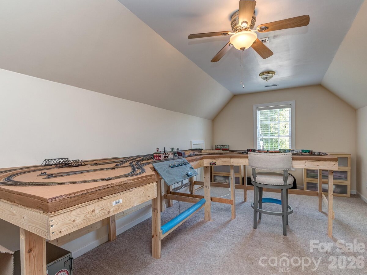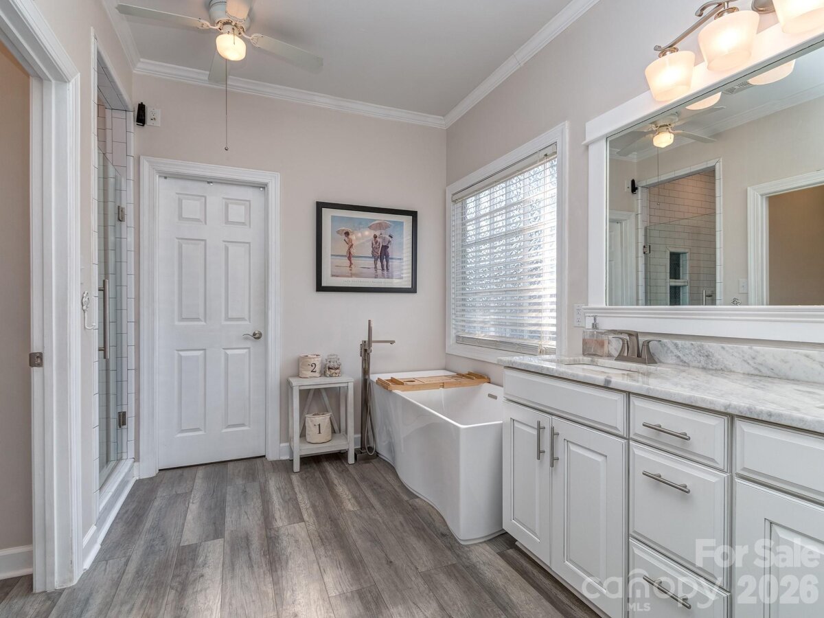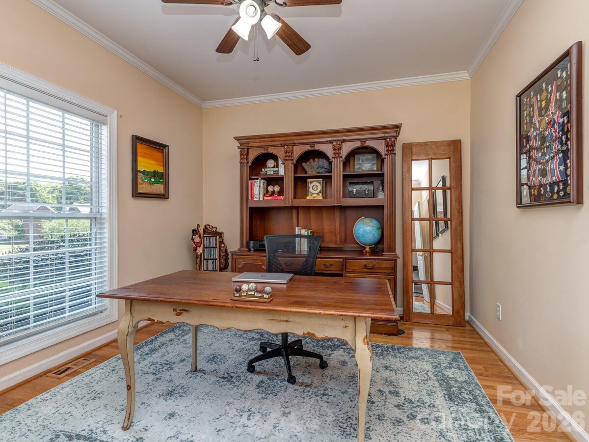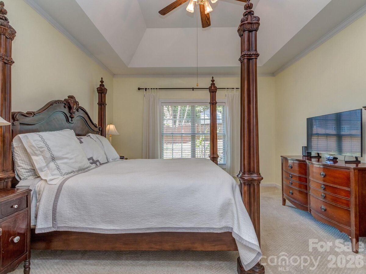 Situated in the highly desirable and centrally located Cambridge Estates, this spacious 5-bedroom home offers a rare combination of comfort, privacy and abundant natural light. Thoughtfully updated throughout, the home features upgraded lighting fixtures, modern sinks and faucets, striking kitchen countertops and elegant wall and island paneling. The main floor primary suite provides convenient, easy living and includes a beautifully updated bath, adding both style and functionality with an oversized soaking tub and separate shower. Upstairs, the unique layout offers four generously sized bedrooms-perfect for family and guests-along with a full bathroom and a versatile bonus room which is ideal for a home gym, media space, hobbies or additional storage. Designed for both everyday living and entertaining, the home offers ample indoor and outdoor space. The well maintained gardens provide seasonal blooms and fruit, creating a serene and inviting outdoor setting. Located just minutes from shopping, dining, schools, major commuter routes and Charlotte Douglas International Airport. This home combines peaceful neighborhood living with exceptional convenience. A must see opportunity in a quiet, established community.