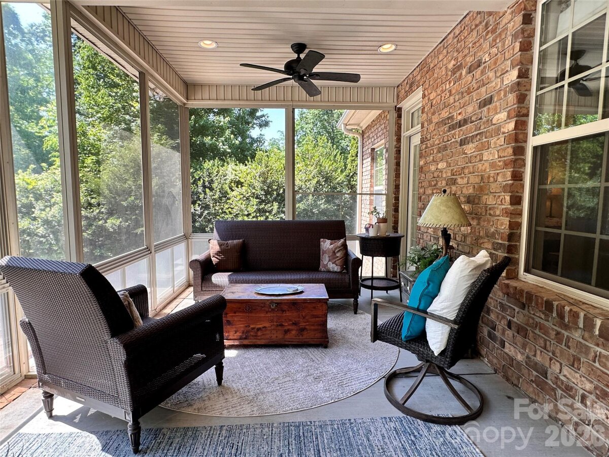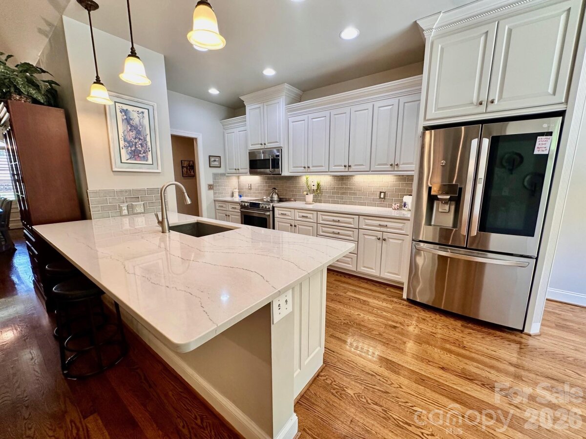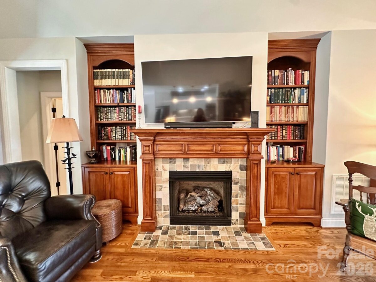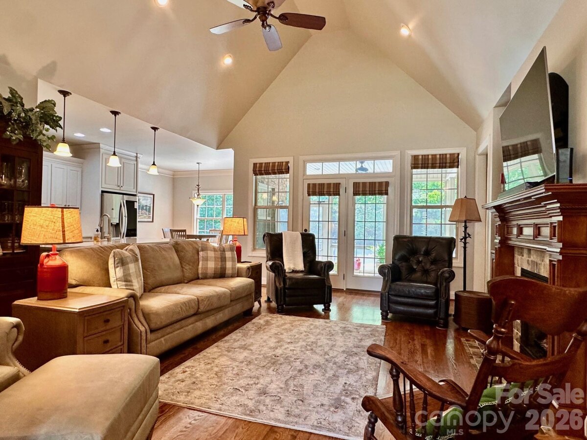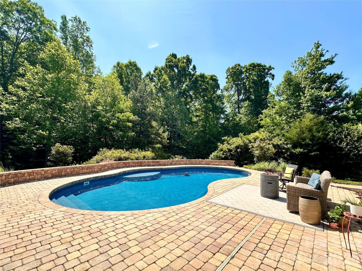 Custom built, full brick home offering exceptional quality upgrades and sits on a private ¾-acre lot on a cul-de-sac street. Featuring primary bedroom on the main with vaulted ceilings and a spacious upstairs bonus room with full bath ideal as a 4th bedroom or guest suite. The remodeled kitchen showcases quartz countertops, subway tile backsplash, and is open into the inviting open living spaces. The main floor has hardwood floors throughout, plantation shutters, a gas log fireplace, and custom built-ins. Enjoy outdoor living with a covered front porch featuring slate flooring, plus a backyard retreat complete with a 36-ft freeform pool, paver decking, and an enclosed porch with Easy Breeze windows. Mature landscaping, including emerald arborvitaes and holly trees, provides exceptional privacy. Major upgrades include new HVAC systems (2025), a tankless water heater, an electric vehicle charger, oversize garage, and an irrigation system. A rare combination of privacy, upgrades, and curb appeal. This one truly stands out.