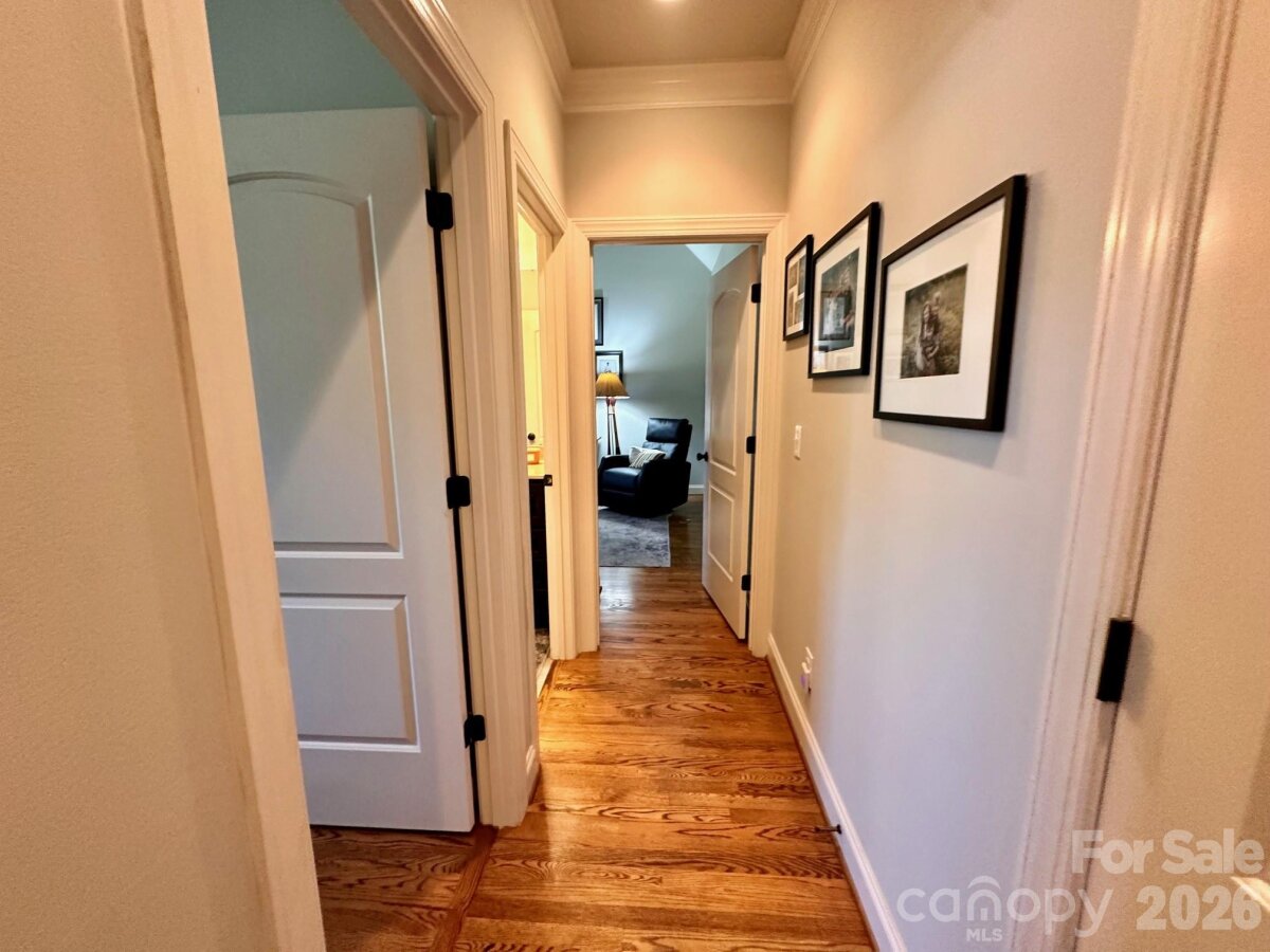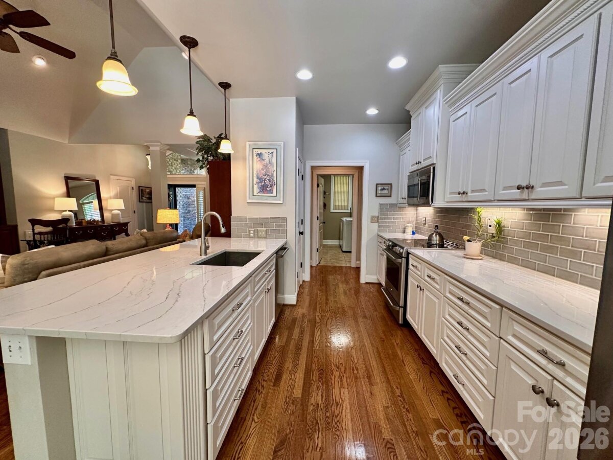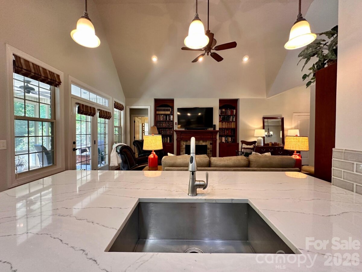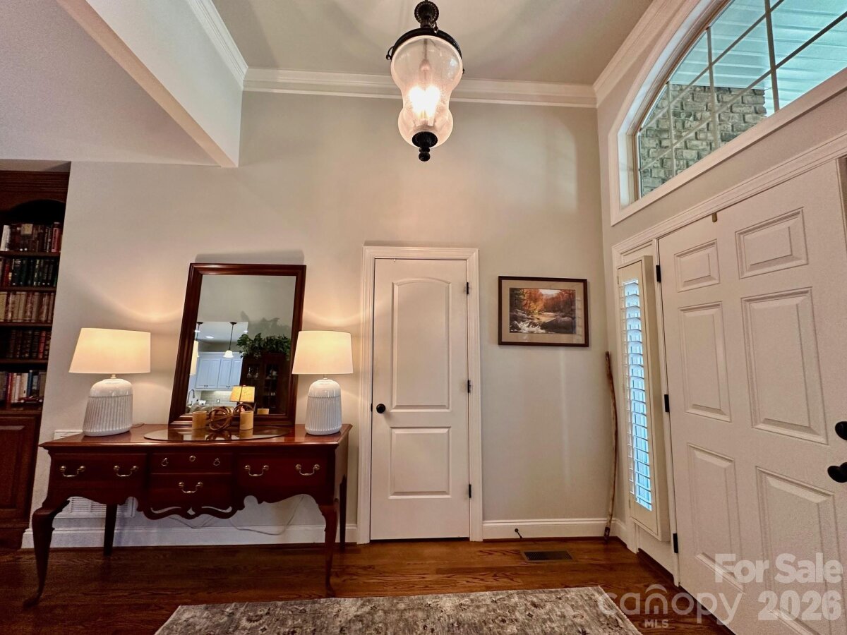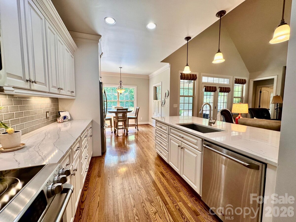 Custom built, full brick home offering exceptional quality upgrades and sits on a private ¾-acre lot on a cul-de-sac street. Featuring primary bedroom on the main with vaulted ceilings and a spacious upstairs bonus room with full bath ideal as a 4th bedroom or guest suite. The remodeled kitchen showcases quartz countertops, subway tile backsplash, and is open into the inviting open living spaces. The main floor has hardwood floors throughout, plantation shutters, a gas log fireplace, and custom built-ins. Enjoy outdoor living with a covered front porch featuring slate flooring, plus a backyard retreat complete with a 36-ft freeform pool, paver decking, and an enclosed porch with Easy Breeze windows. Mature landscaping, including emerald arborvitaes and holly trees, provides exceptional privacy. Major upgrades include new HVAC systems (2025), a tankless water heater, an electric vehicle charger, oversize garage, and an irrigation system. A rare combination of privacy, upgrades, and curb appeal. This one truly stands out.