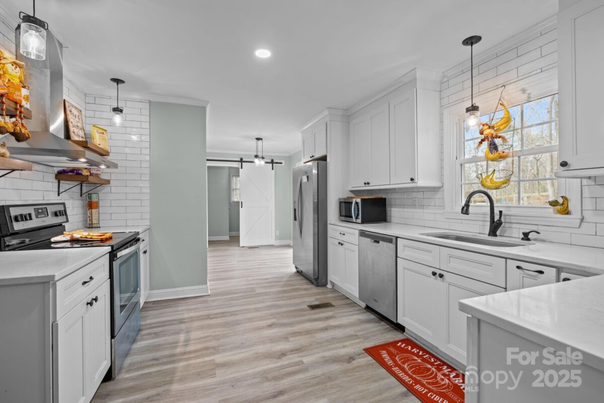 Discover serene country living on this 2-acre retreat, beautifully updated w timeless farmhouse style. Tucked away from the bustle yet close to everyday conveniences, this charming property offers the perfect blend of warmth, character & modern comfort. Sit on the rocking chair front porch & take in the tranquility of the expansive yard, mature trees & private acreage. Step inside to find efficient living spaces accented w rustic touches. The living room is filled w natural light & features a unique mantle w a wood-stove insert. Enter the custom white kitchen w quartz countertops, subway backsplash to the ceiling, wooden shelving & stainless steel appliances. Entertain in the dining room w a farmhouse light fixture & ample space. A laundry/mud room will greet you from the garage w a sliding barn door. Upstairs, the primary suite features a custom accent wall, walk-in shower + his/her closets. One of the standout features is the screened-in back porch, a peaceful spot to sip coffee, entertain guests, or simply unwind while overlooking the trees and back yard that surround the property. With nearly two acres to call your own, and fully fenced backyard there’s plenty of room for gardening, pets, play, or future outdoor projects. Whether you’re dreaming of a tranquil homestead feel or a stylish rural escape with no HOA, this home delivers privacy, charm & modern farmhouse appeal—all wrapped into one.