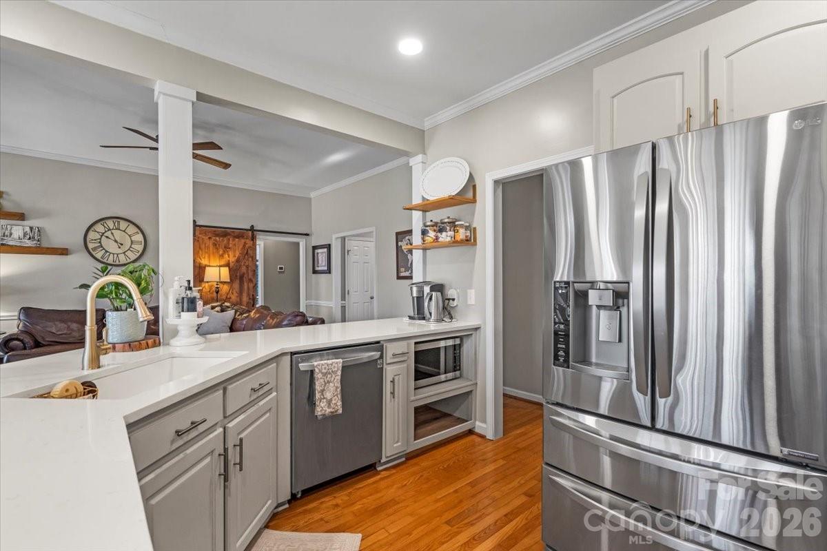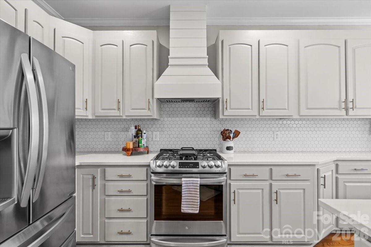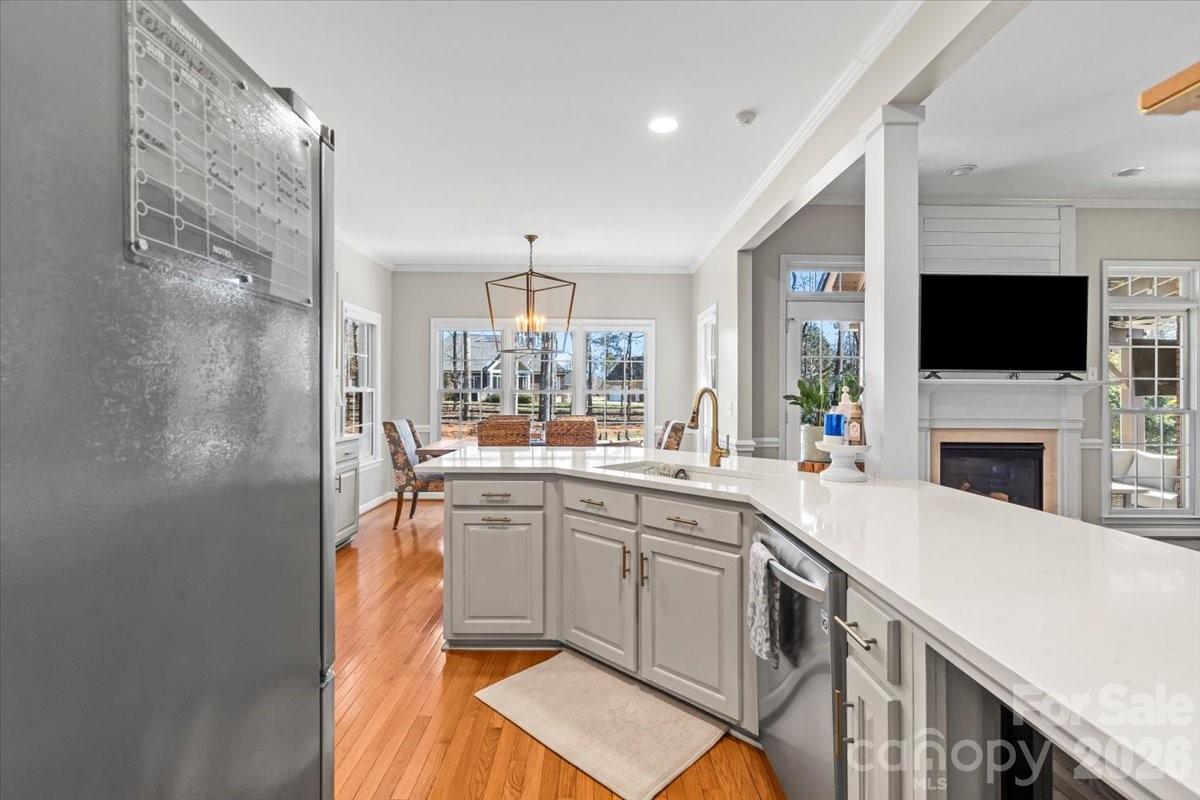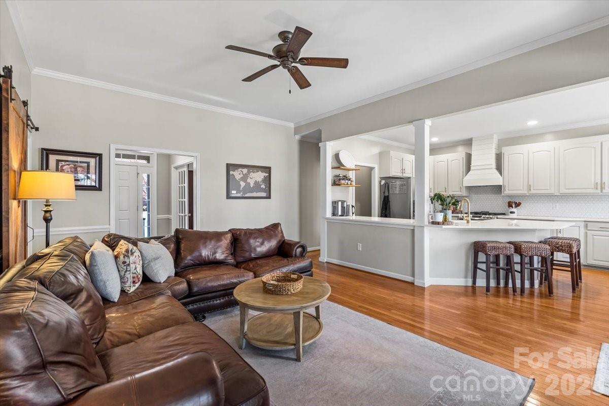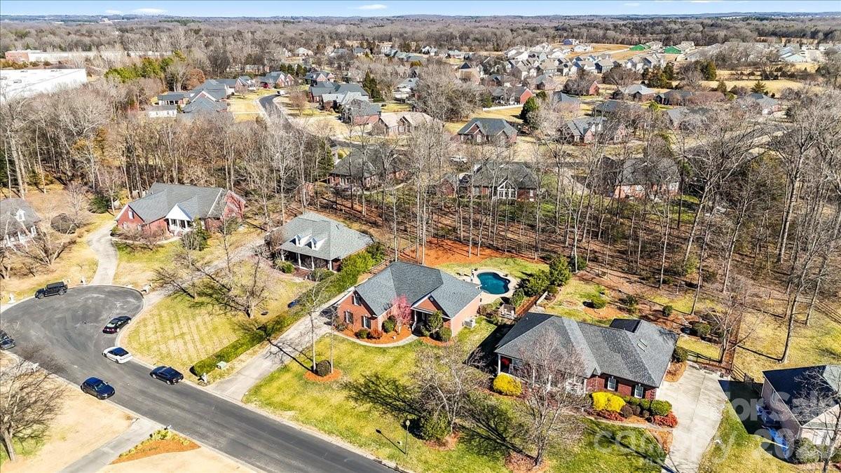 Welcome to this beautifully updated brick home, tucked away on a quiet cul-de-sac in desirable Harrisburg with no HOA and within walking distance to top-rated schools. Thoughtfully designed and meticulously maintained, this home offers a warm, open layout filled with natural light, hardwood floors, crown molding, and timeless finishes throughout. The heart of the home is the stunning, renovated kitchen featuring quartz countertops, stainless steel appliances, custom cabinetry, tile backsplash, and a large center island—perfectly positioned to flow into the dining area and spacious great room. The living room centers around a cozy fireplace and opens seamlessly to the outdoor living space, ideal for entertaining or everyday enjoyment. The primary suite is a true retreat with a tray ceiling, generous walk-in closet, and a spa-like en-suite bath complete with a soaking tub, separate shower, and updated dual vanity. Additional bedrooms are generously sized and offer flexibility for guests, home office, or bonus space. A well-appointed laundry room with custom shelving adds everyday convenience. Step outside to your private backyard oasis featuring a covered patio, outdoor entertaining area, and a beautiful in-ground swimming pool, creating the perfect setting for summer gatherings or quiet evenings at home. Mature landscaping and thoughtful outdoor design provide both privacy and charm. Conveniently located near shopping, dining, parks, and major roadways, this move-in-ready home blends classic character with modern updates in one of Cabarrus County’s most sought-after communities.