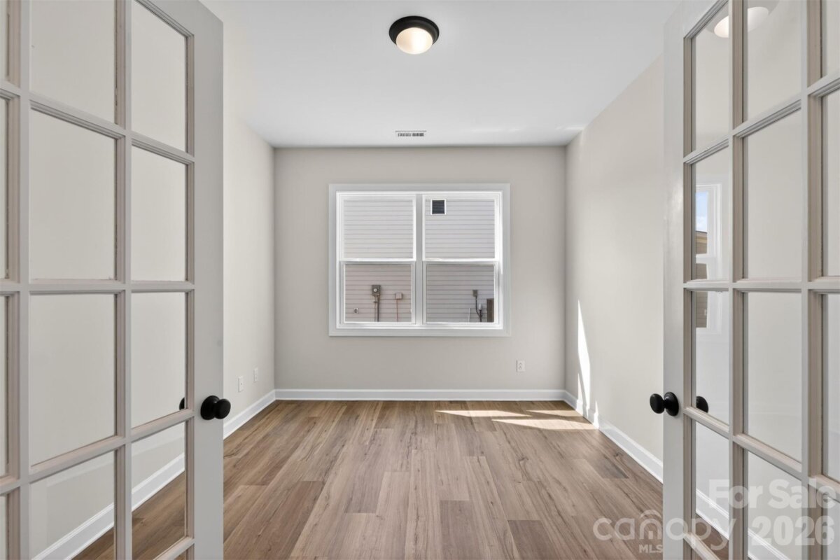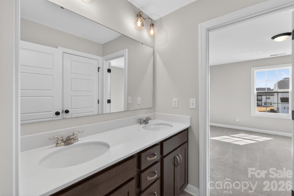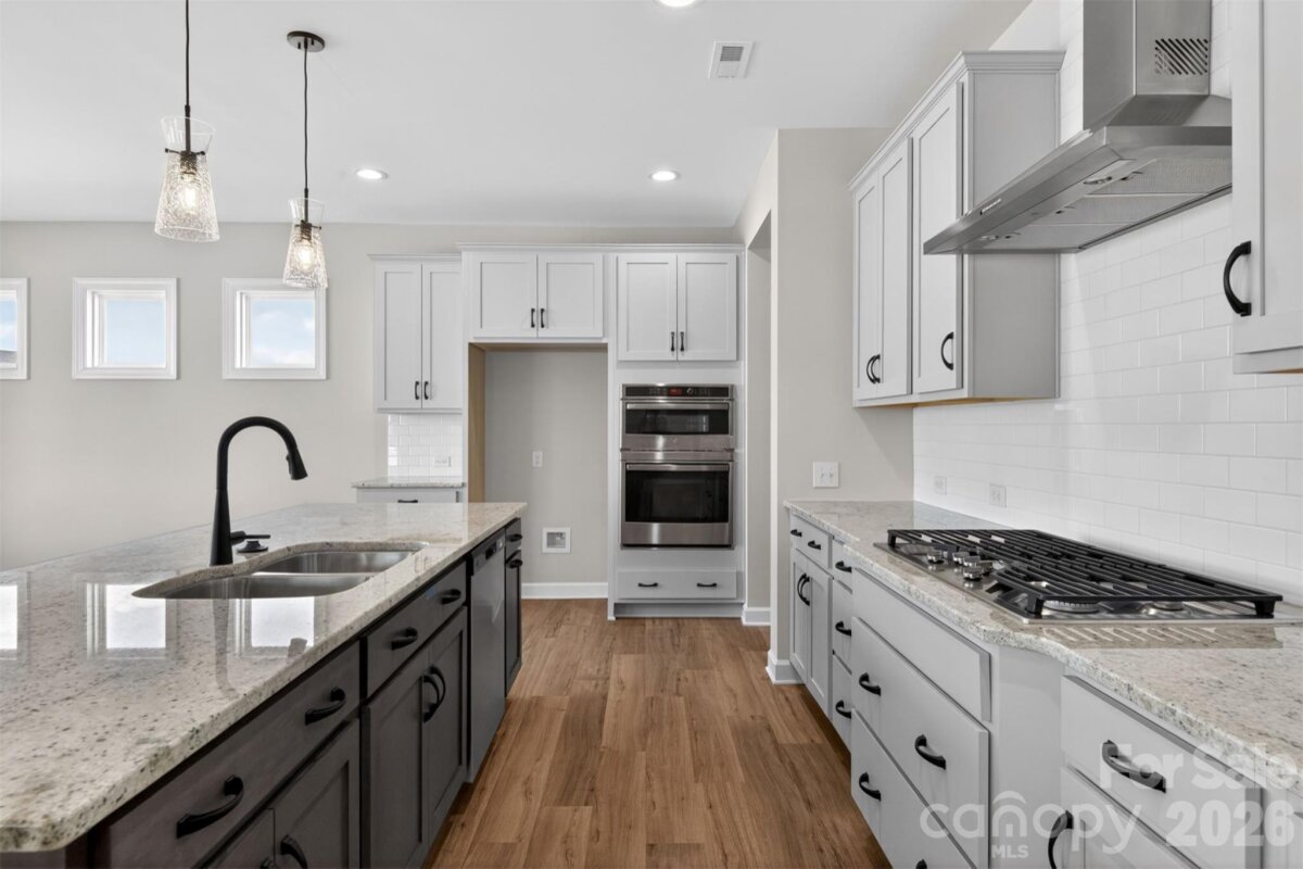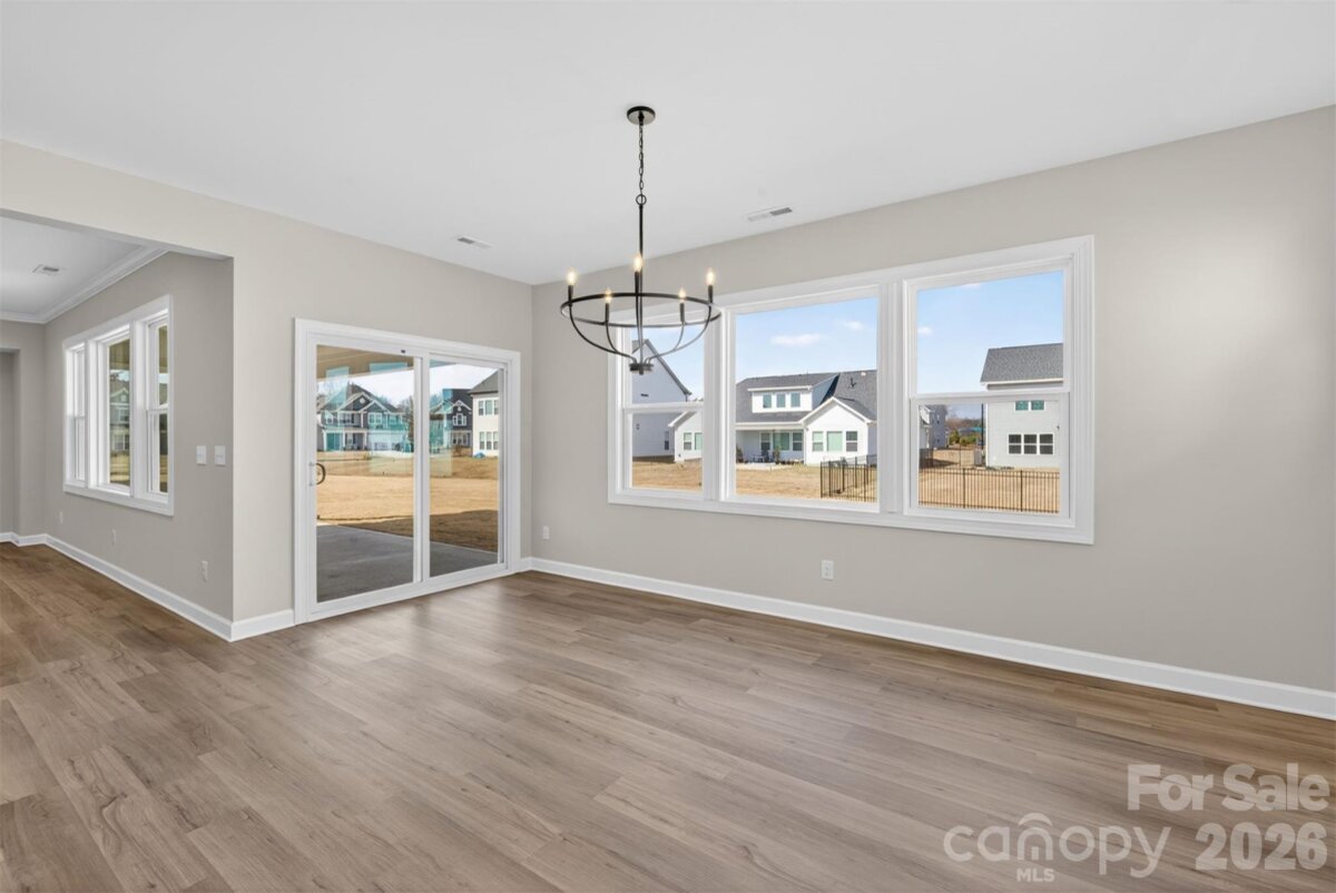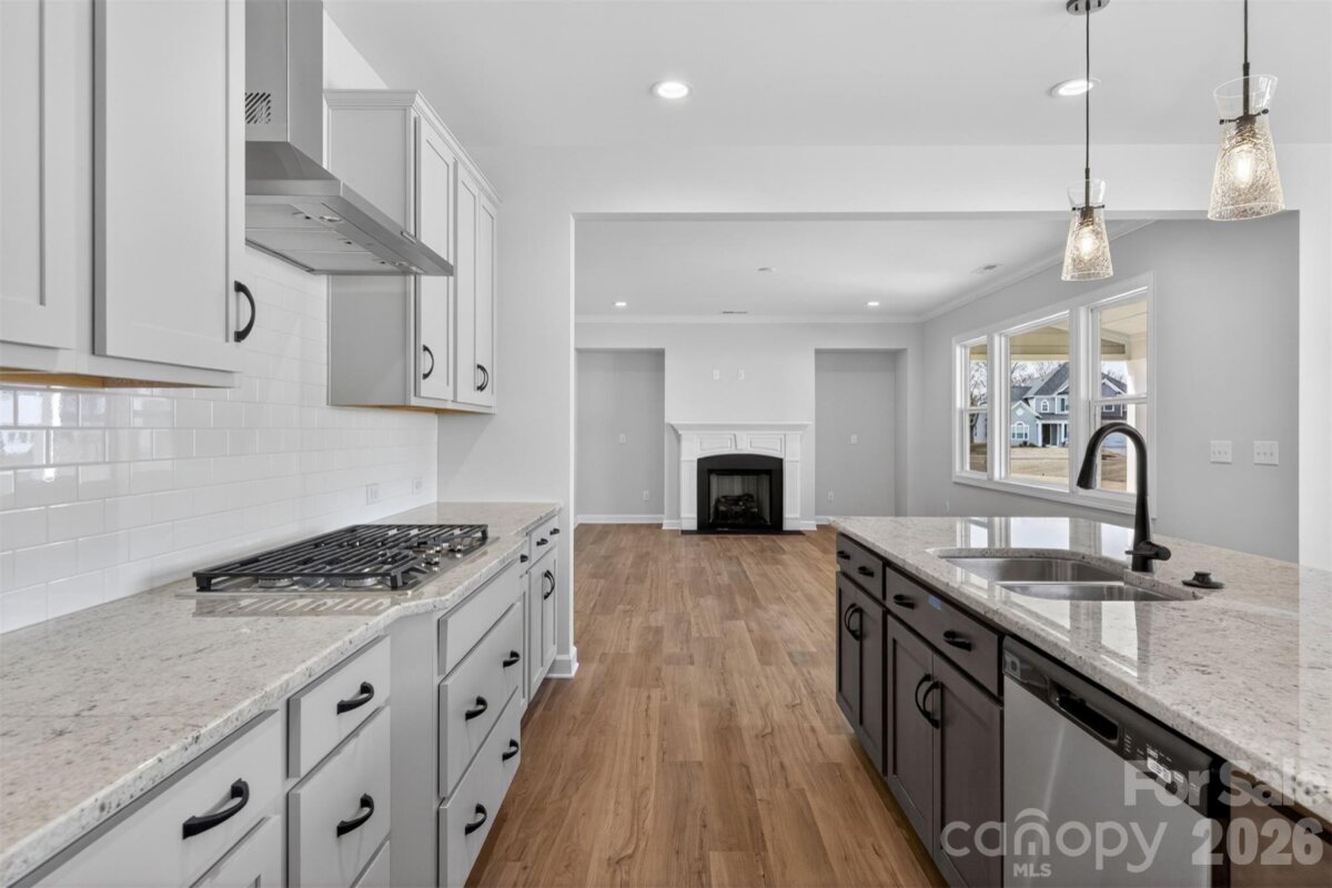 New Craftsman-style home in Harrisburg, featuring a .25-acre flat homesite in an amenity-rich community by Stallings Road Park. Enjoy the open-concept layout and abundant windows, first-floor guest bedroom and bathroom with walk-in tiled shower, Flex room with office, and luxuriously spacious upstairs Premier Suite. The Family room features a gas fireplace flanked by 2 niches for your personal touch, and a large Kitchen with split cooking. There are 42" creamy-grey cabinets with soft-close doors & drawers, double trash pullout, GE stainless steel appliances with a Profile 36" gas cooktop, wall oven, and microwave, plus chimney extraction hood vented outside, and a large walk-in pantry. Tucked off the kitchen is a mudroom with built-in drop zone. Enjoy the outdoors from the large rear covered patio. Upstairs is a spacious Rec room and laundry with tiled floor. Get away from it all in the Premier Suite, with a tray ceiling and huge walk-in closet. The spacious bathroom has a large tiled shower, quartz counters, and tiled floor. Two bedrooms share a Jack & Jill bath. Secondary baths have quartz counters and tiled floors. Medium-toned natural wood color LVP flooring is throughout most of the first floor plus upstairs hall, with oak treads on the stairs. The exterior features Hardie® siding, a carriage-style garage door, and a service side door in the garage. Energy-saving features include a tankless hot water heater and radiant barrier sheathing.