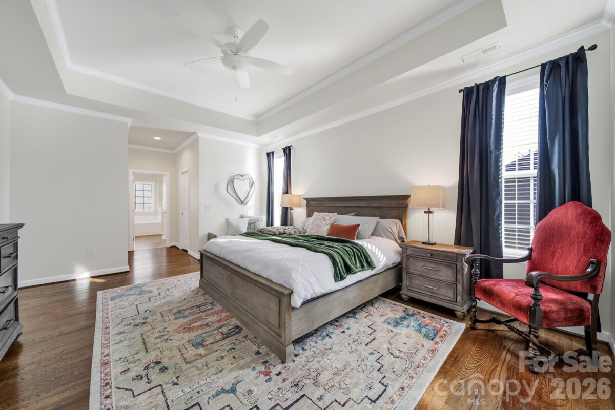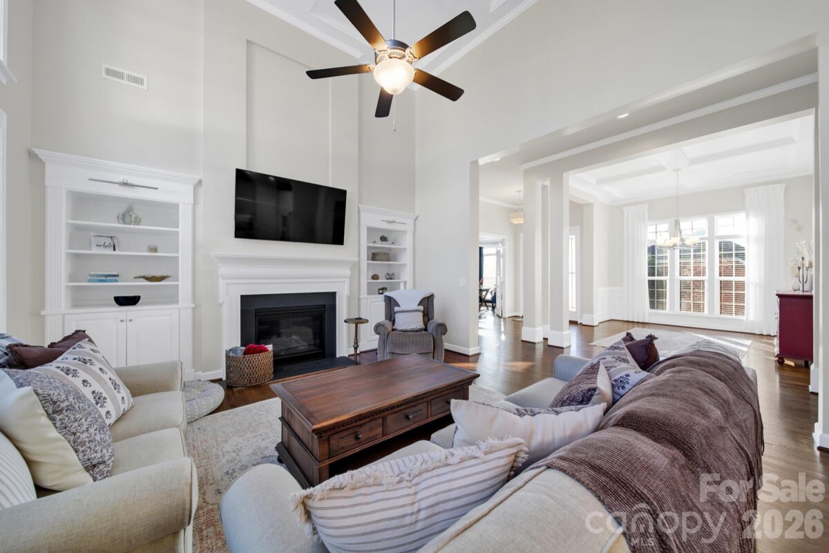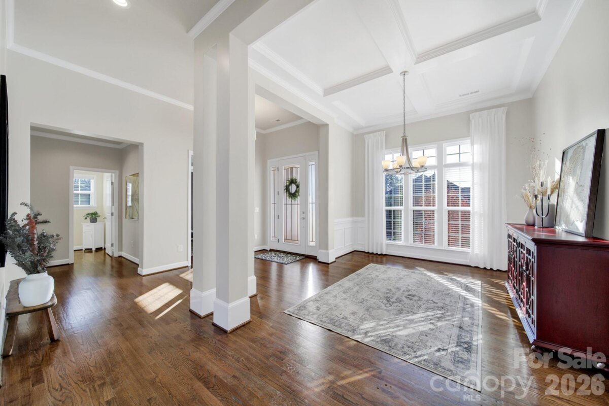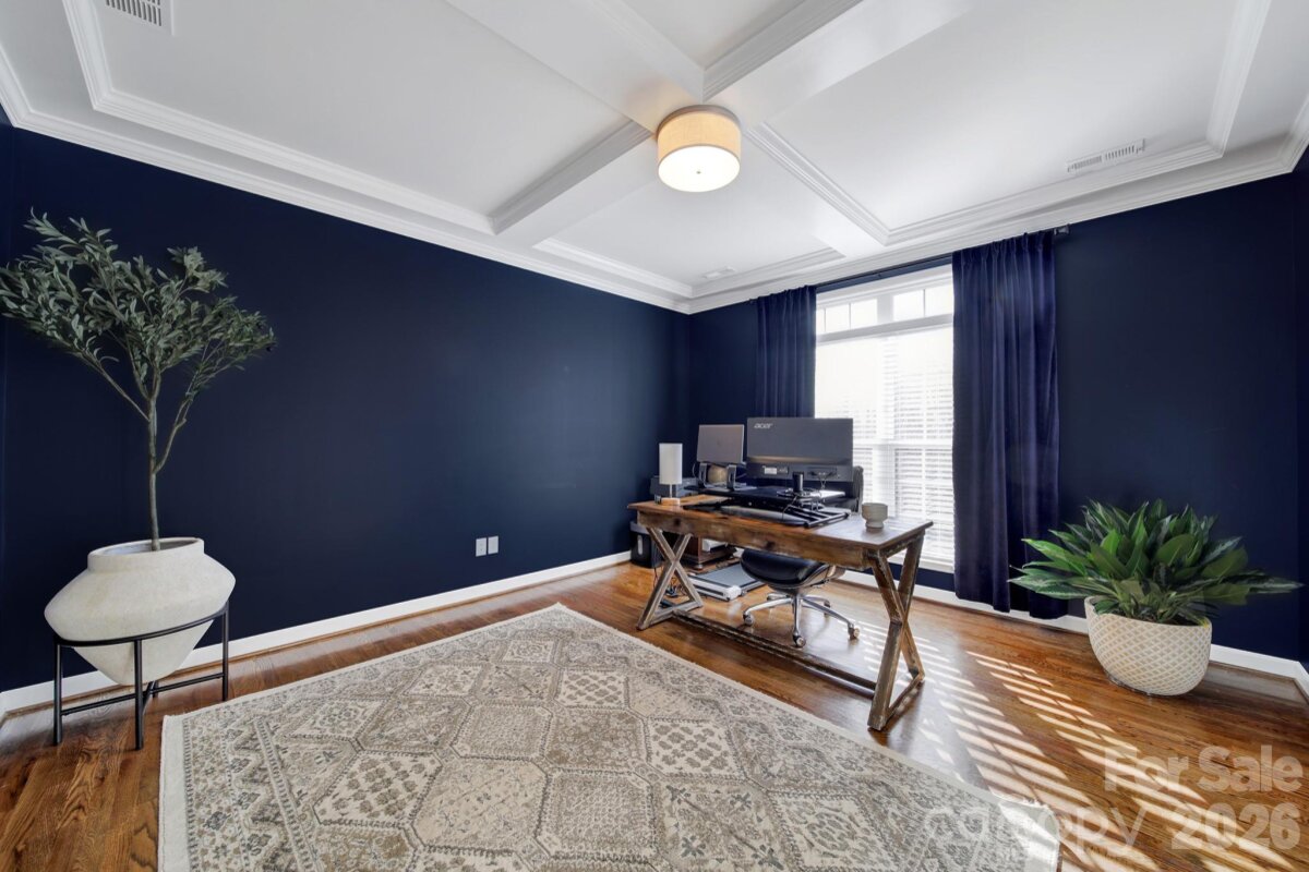 Welcome to this beautifully designed one-level home in the highly desirable Kensington Forest community in Harrisburg. Step inside to an open floor plan featuring hardwood floors, coffered ceilings, built-in cabinetry, and custom upgrades throughout. The gourmet kitchen includes white Shaker soft-close cabinets, granite countertops, a wall oven, gas range, oversized island with seating, pantry, and a breakfast area. Just off the kitchen, a two-story great room is filled with natural light and anchored by a gas fireplace, while the dining room offers an inviting space for gatherings. A dedicated home office with French doors provides an ideal work-from-home setup. The primary suite offers a peaceful retreat with two walk-in closets and a spa-like bathroom complete with a large tiled shower, soaking tub, and dual vanities. Two additional bedrooms, a full bathroom, half bathroom, and laundry room complete the well-appointed interior. Outside, enjoy the deck overlooking a private, fully fenced backyard. Community amenities include an outdoor pool and playground. Zoned for sought-after Hickory Ridge schools and conveniently located minutes from I-485, Farmington Shopping Center, grocery stores, shops, and dining. Easy access to Uptown Charlotte, Charlotte Douglas Airport, and Lake Norman. Don’t miss the opportunity to call this exceptional home your own.
