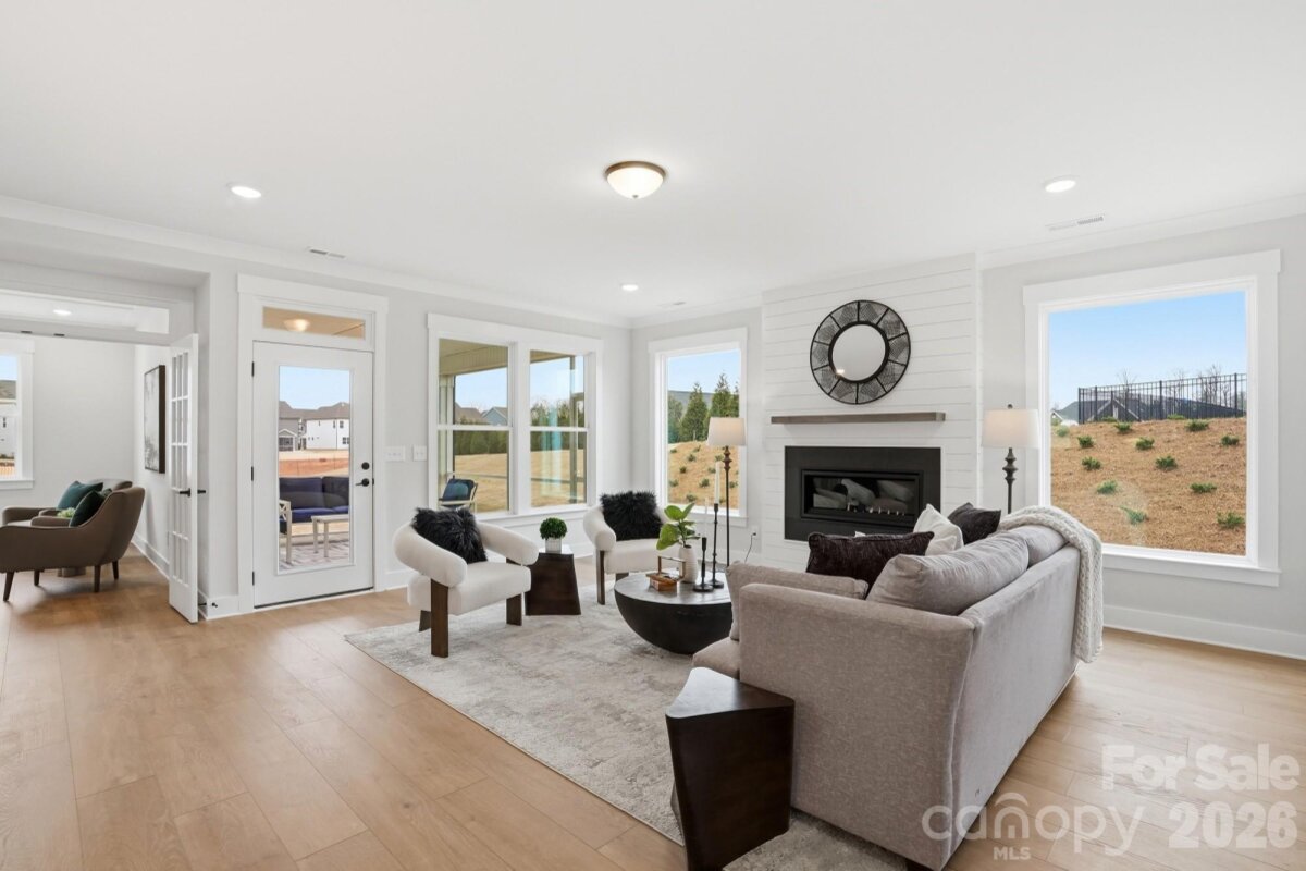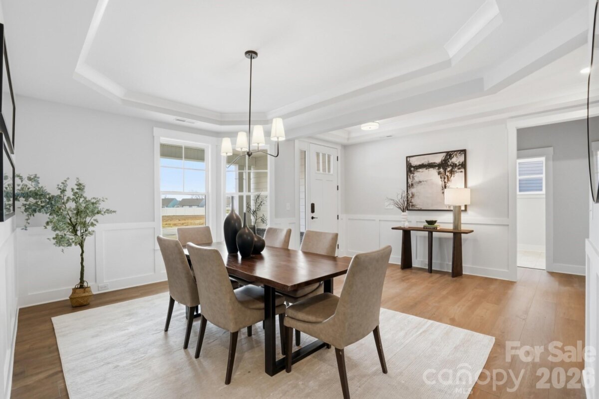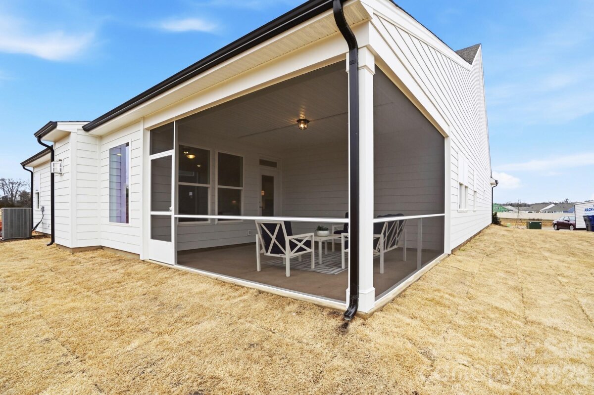 Discover the Edgefield ranch-style home offering 3 bedrooms, 2.5 baths, a rear screened porch, and more than 2,600 square feet of main-level living. Enter the home through the foyer with tray ceiling & Craftsman-style wood trim and see the beautiful dining room with matching trim. The designer kitchen features a farmhouse sink, large island with storage, white cabinets, quartz counters, tile backsplash, and stainless appliances. A butler pantry matches the kitchen decor and connects to the dining room. The family room is accented with a Cosmo, direct-vent gas fireplace surrounded by a shiplap wall. This home also has an office with built-in cabinets and French doors. The primary suite boasts a tray ceiling, a luxury shower with bench seat & semi-frameless door, and two separate vanities. A beadboard drop zone at garage entry and laundry room with cabinets add convenience and storage. Additional bedrooms can access a full bath with a tiled tub/shower combo and double-bowl vanity. Neighborhood amenities include a cabana with outdoor pool, perfect for relaxing and entertaining.
