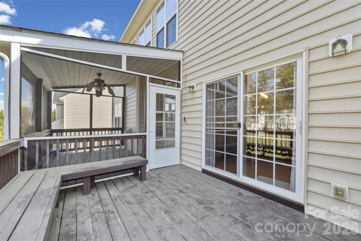 Discover the perfect blend of space, elegance, and everyday comfort in this beautifully maintained 5-bedroom home in the highly sought-after Heatherstone community. Spanning three spacious levels, this home offers room to live, work, and entertain with ease. From the moment you enter, you’re welcomed by gorgeous hardwood floors and a seamless, open flow. The main level features a private office, along with formal living and dining rooms—ideal for both everyday living and hosting guests. The impressive two-story family room is a true showpiece, filled with natural light, gleaming hardwoods, and anchored by a cozy fireplace. At the heart of the home, the expansive gourmet kitchen is built for gathering, featuring an oversized granite island, abundant cabinetry, double ovens, a walk-in pantry, built-in workstation, and a generous eat-in area. This is the kind of space where everyone naturally comes together! Upstairs, you’ll find spacious secondary bedrooms, and laundry room with sink- perfect for everyday life. Highlighting the home's unique character is the oversized- step down bedroom. This impressive space offers endless possibilities! Whether you envision a sophisticated private den, a high-energy playroom, or a hobby suite, this versatile bedroom can adapt to your lifestyle. The third floor offers an incredible bonus retreat complete with its own bathroom—perfect for a media room, recreation space, guest suite, or private teen haven. The private primary suite is a true escape, featuring double closets and a well-appointed en-suite bath with a relaxing soaking tub and separate shower. Step outside to your back deck with a screened-in porch—perfect for quiet mornings or unwinding in the evening. Nestled in a vibrant neighborhood with a community pool, this home is conveniently located minutes from I-485, top-rated Harrisburg schools, several excellent town parks, shopping plazas and Charlotte—offering both convenience and tranquility. If you’ve been searching for space, functionality, and a home that truly lives large—7824 Whisperingwood Drive welcomes you home!