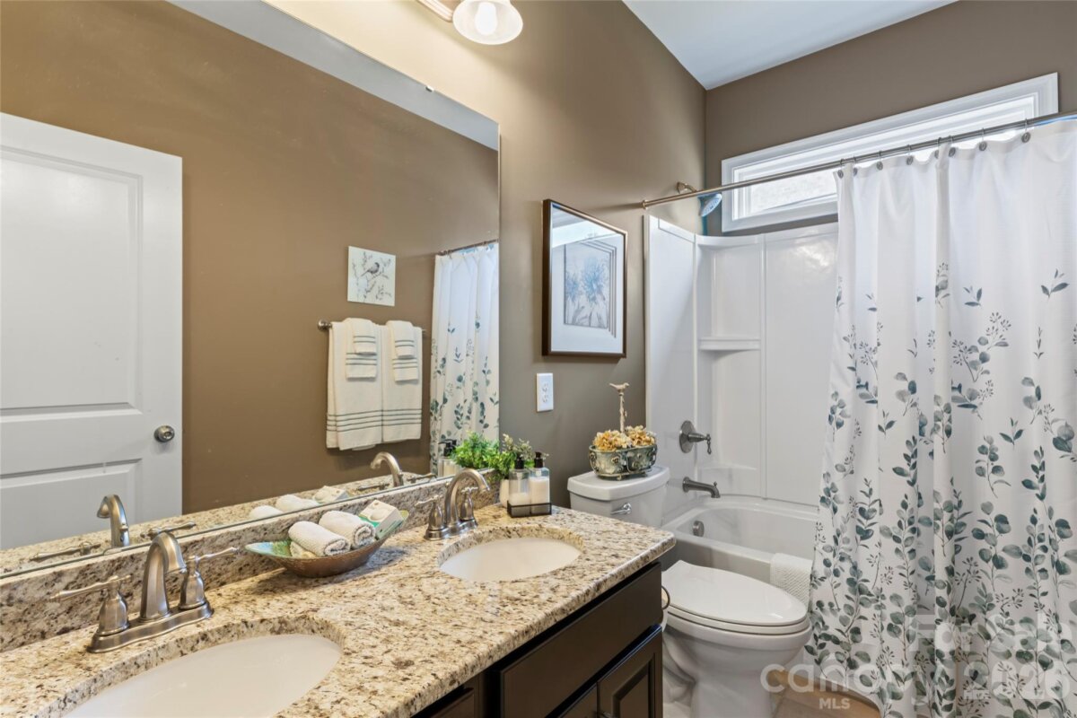 Located in the quaint Frances Haven neighborhood, this beautiful, full-brick home offers everything you need and more! Built in 2016, this 4 BR + 3 BA home served as the model home for Frances Haven and has numerous upgrades throughout, including open-concept living, upgraded cabinetry, granite countertops, hardwood floors, tray ceilings, and extended living space. The main floor features your dream kitchen, large/open living room, three bedrooms, two full baths, a formal dining room, breakfast nook, and laundry room. Upstairs, you’ll find an oversized bonus room or additional living space complete with a full bathroom and a large closet—perfect for a guest suite, home office, or recreation area. The newly-painted back deck overlooks a level, fenced-in backyard and mature trees. (The lot line extends well beyond the fenced portion.) Frances Haven is conveniently located within miles of I-485 and I-85, Uptown Charlotte, Concord, and Lake Norman.