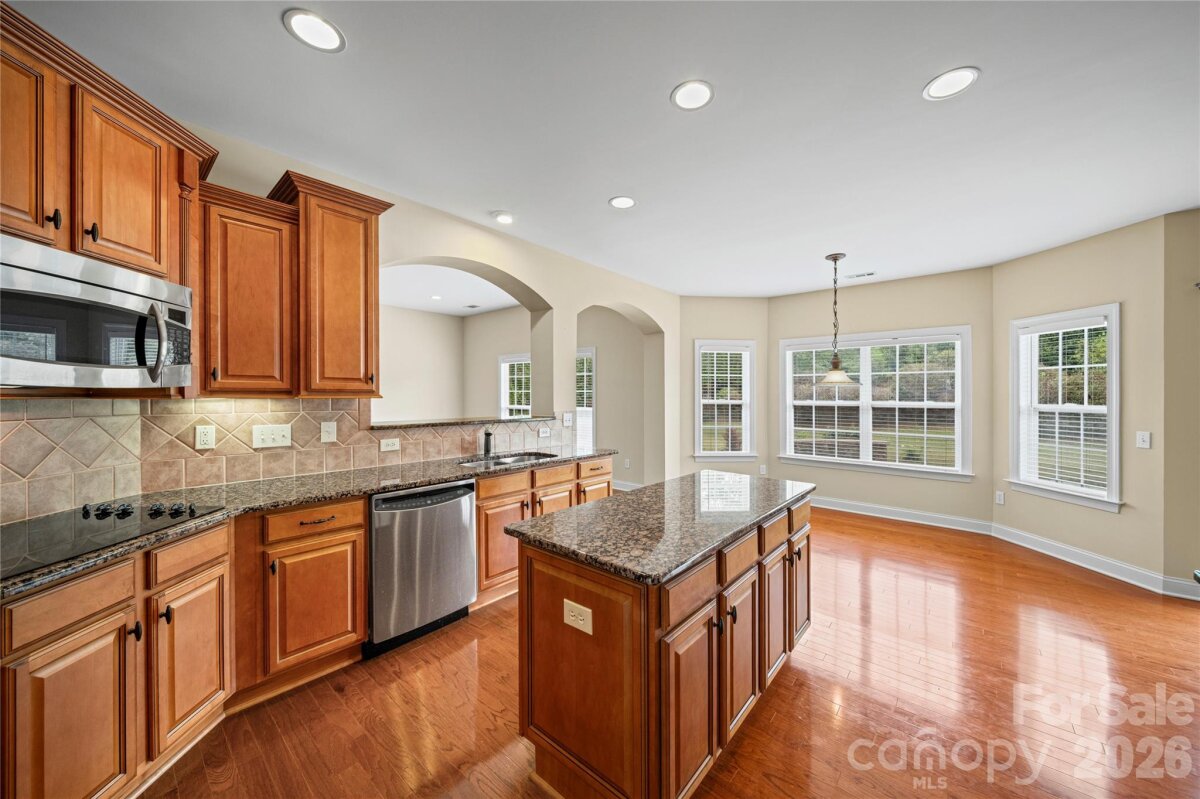 Schedule an appointment to view this traditional, two-story, all-brick residence. Boasting four bedrooms, three and a half bathrooms, and a spacious three-car sideload garage, this property is situated on a .34-acre lot. The home is conveniently located just a short walk from the community’s swimming pool facilities, making it perfect for enjoying neighborhood amenities. The first floor is adorned with prefinished hardwood flooring, creating a warm and inviting atmosphere. Bathrooms throughout the home feature durable tile, while carpet is used in the remaining areas for comfort. The formal dining and living rooms are elegantly accented, providing ideal spaces for entertaining guests. The family room is highlighted by a gas fireplace, offering cozy warmth during cooler days. A functional butler’s pantry adds flexibility for hosting and entertaining. The open kitchen is equipped with a large island, a walk-in pantry closet, upgraded cabinetry, stainless steel appliances, granite countertops, and a tile backsplash, making it both stylish and practical. A spacious breakfast nook provides access to the second floor via a convenient back staircase. On the upper level, the primary bedroom suite offers plenty of space and includes dual vanities, a garden tub, a tiled shower, and a walk-in closet for added storage and comfort. Three additional bedrooms provide flexibility for family or guests. One of the spare bedrooms features a walk-in closet and direct access to a full bathroom, while the other two bedrooms share a dual-access bathroom. The recreation/media room is perfect for entertainment and comes pre-wired for ceiling speakers. The neighborhood includes a community pool for family enjoyment. Located in Cabarrus County, this home benefits from lower property taxes and access to highly popular schools, making it an excellent choice for those seeking both comfort and convenience.