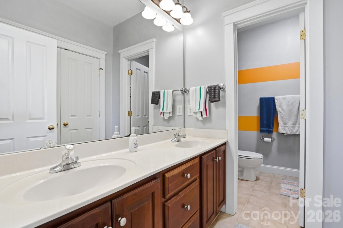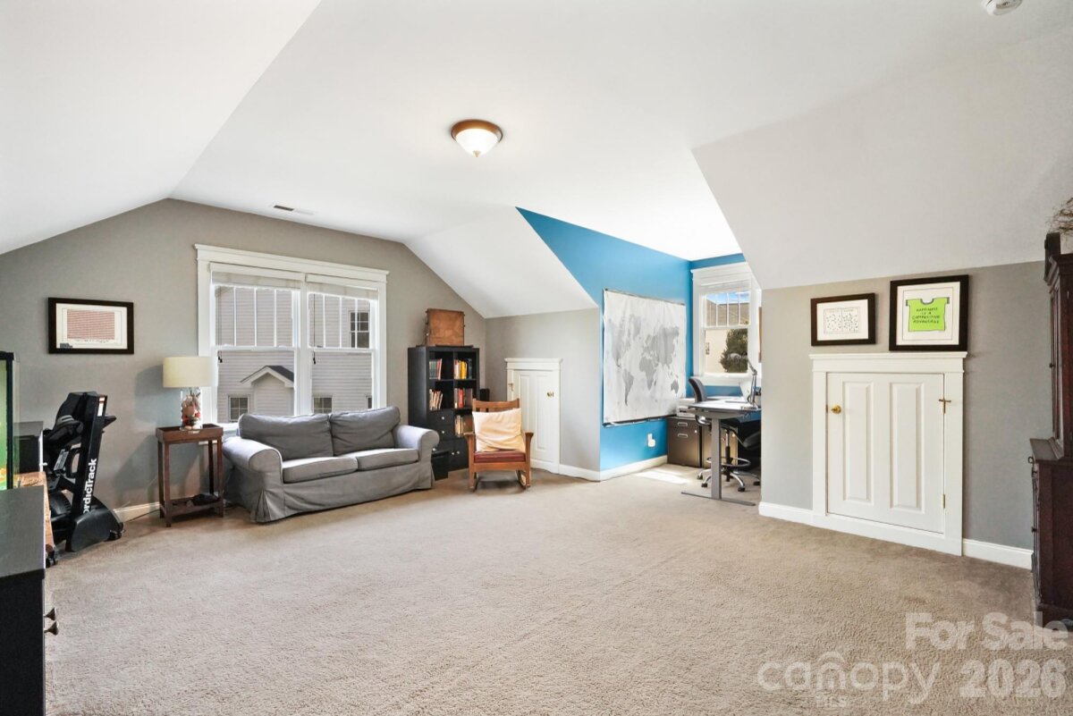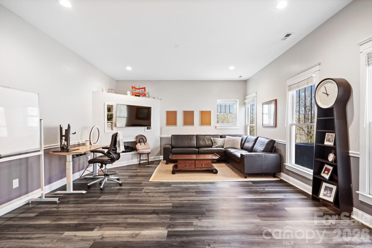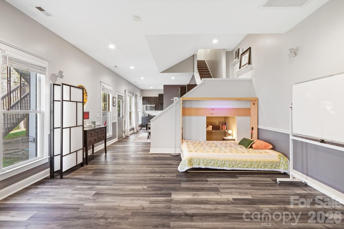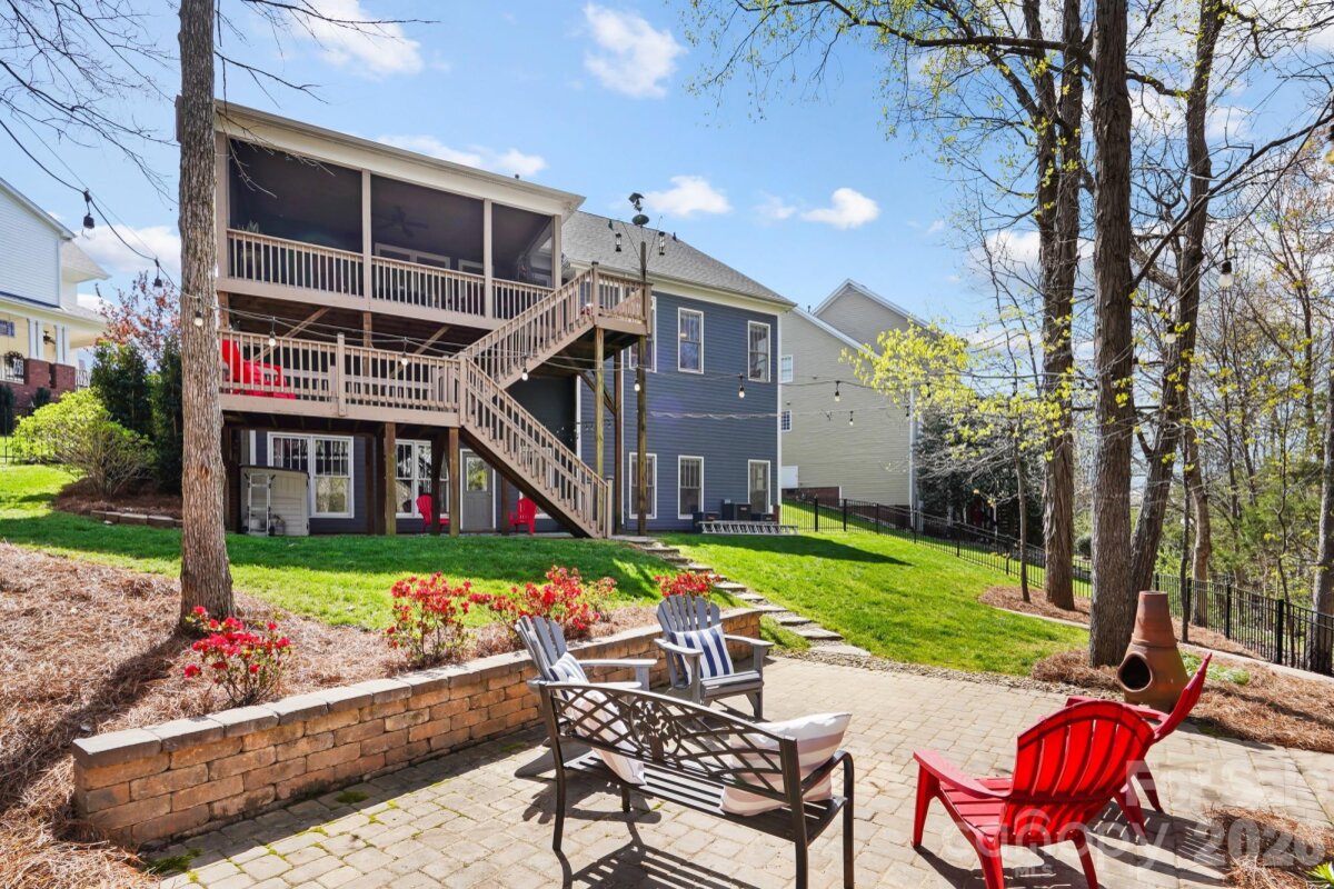 This beautiful basement home is a one of a kind find in Skybrook! From the charming front porch, to the unique, custom touches throughout, you’ll love it from the moment you arrive. Located on a rare Skybrook cul-de-sac lot, this home sits on .9 acres, one of the largest lots in the community, and backs to a wooded greenspace area that will never be developed. The first floor Owner’s retreat boasts tons of natural light, a custom primary bathroom with an oversized custom tile shower, custom vanity, and a large walk in closet with built ins. The great room feels both grand and cozy at the same time, thanks to vaulted ceilings and a cozy fireplace. Enjoy the beautifully renovated kitchen that features custom cabinetry, granite countertops, a decorative ceramic tile backsplash and stainless steel appliances. Upstairs, there are three bedrooms, two full baths, and a very large bonus room, ensuring there is plenty of space for everyone. Need even more space? The finished basement doesn’t feel like a basement at all, with tons natural light, 10 foot ceilings, and its own exterior entrance, this basement offers a whole separate living space. There is a kitchenette with a 2 burner electric stove & small refrigerator, a full bathroom with custom walk-in shower, a closet, and a large recreation room. Want the option to use it in multiple ways? There is a built in murphy bed that stores perfectly against the wall to give a lot of space in the basement Rec Room, or pulls down into a bed for guests. Use the basement as a recreational space, an office, or even as a studio apartment with its own entrance. Love the outdoors? This home has 5 different outdoor living areas! Enjoy a cup of coffee on your full front porch while sitting on your porch swing in the morning. Then have a refreshing glass of lemonade on your large screened in porch with fan and retractable sun shades during the day, then entertain at night, using the versatile deck off the stairs as a grilling deck and food/drink station while you entertain guests between the large patio off the basement and large hardscape paver patio in the backyard, both magical at night underneath party lights and perfect for entertaining. And the storage! There are multiple walk-in-attic storage options and there is a crawlspace towards the front of the home with flooring and electricity, making it a great place for a workshop and additional storage. Have an electric car? There is a 220V plug in the garage specifically installed to charge electric vehicles. From the community, cul-de-sac lot, backing to greenspace, multi-level living options, multiple outdoor living areas and a basement that can be it’s own apartment, this home has it all!