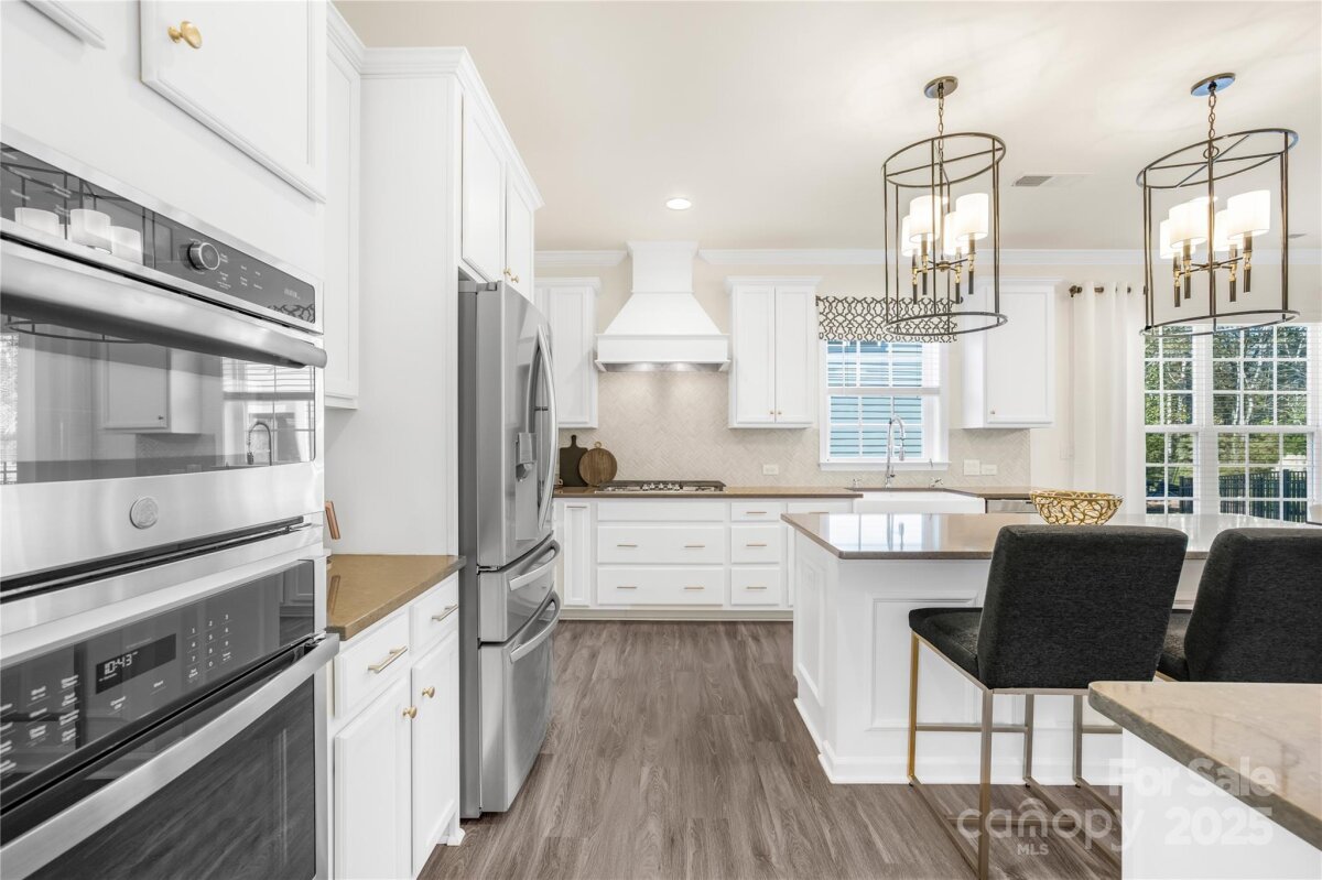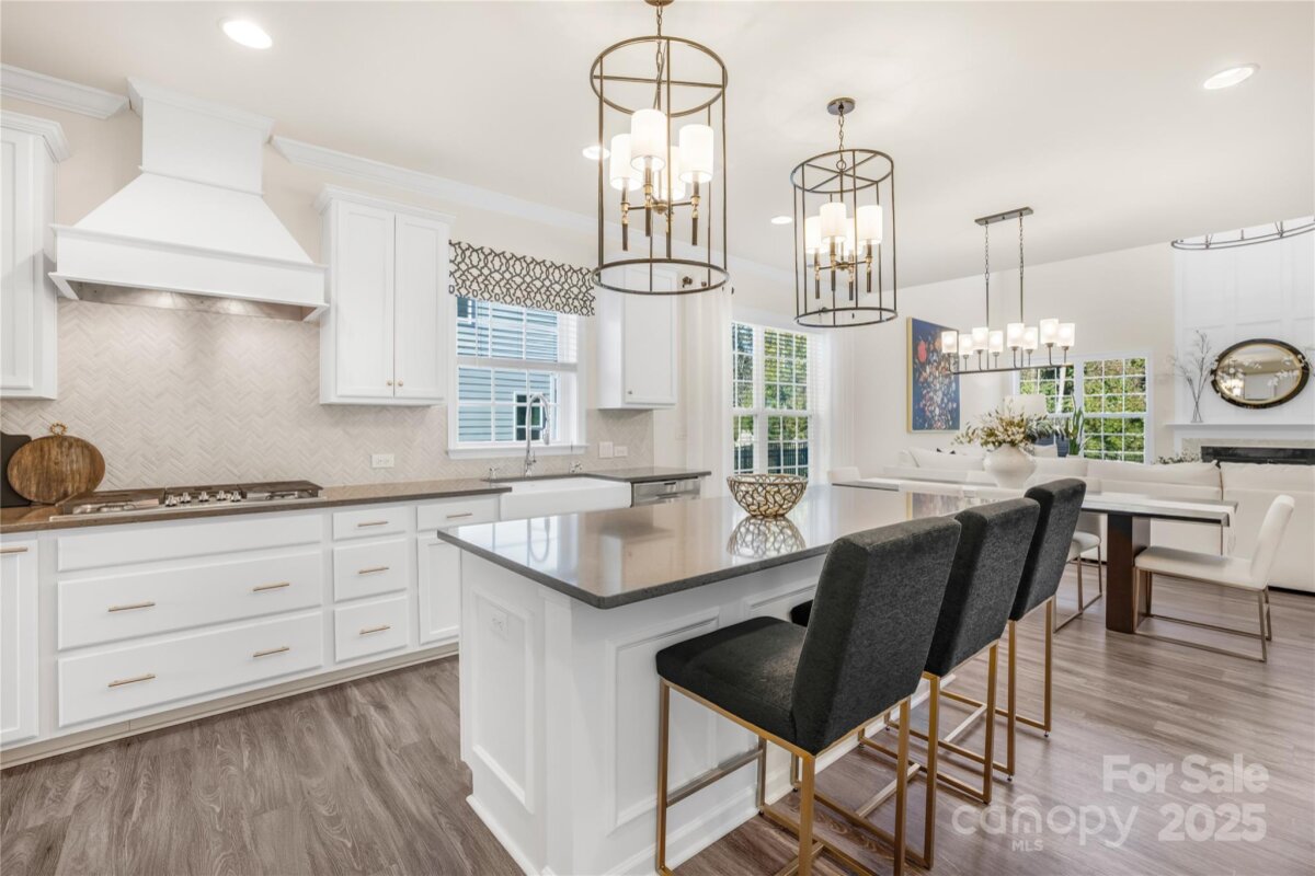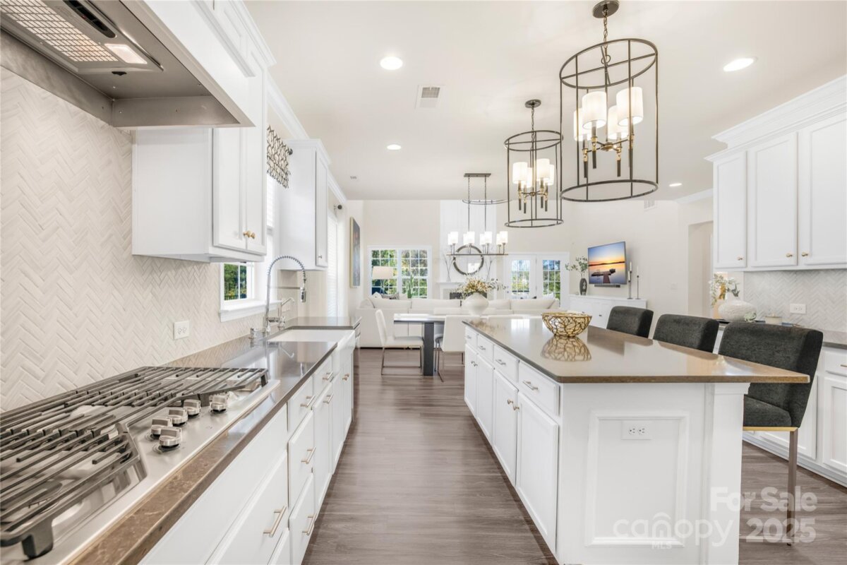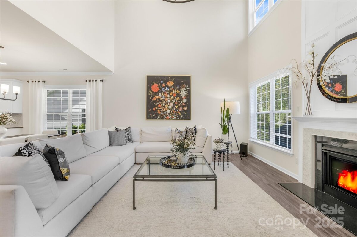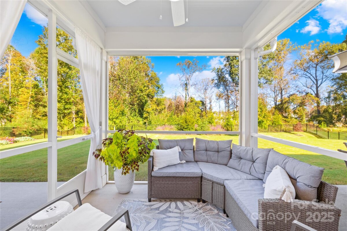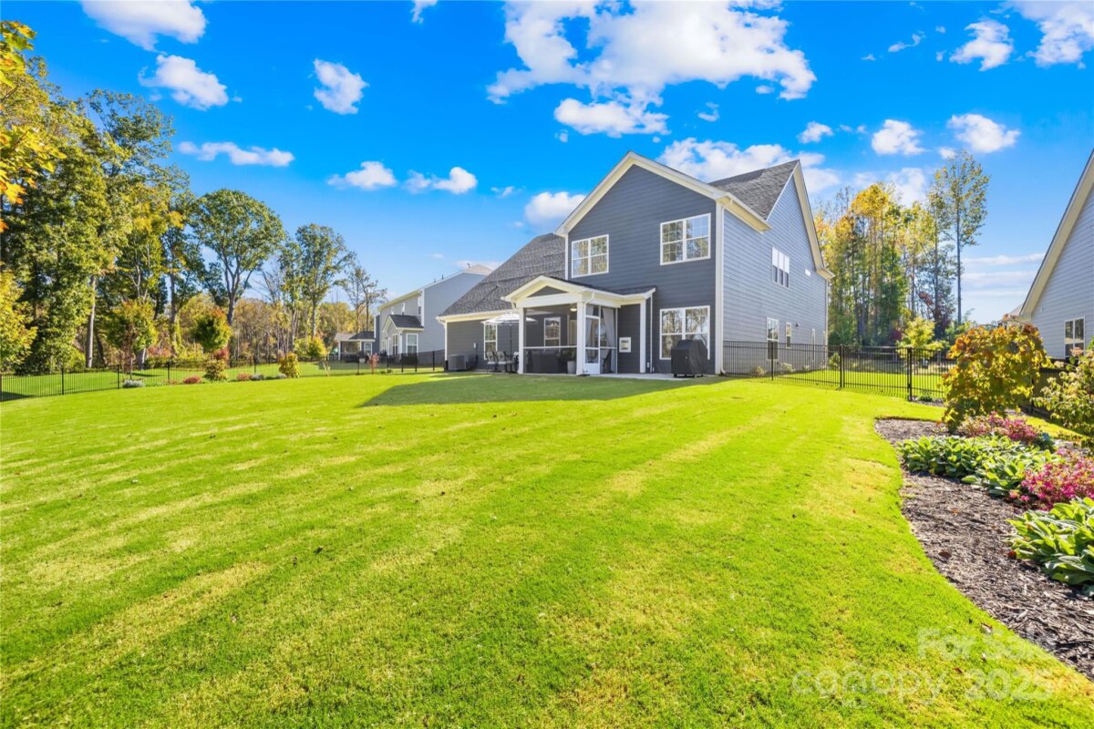 Welcome to this exceptionally maintained upscale designer home in the highly sought-after Farrington community! Perfectly situated on a premium lot directly across from the community tree save area and backing to a private, tree-lined view with plenty of room for your future pool, you just can't find a better location than this! With over 3,600 sf., this Torrance II plan blends luxury, comfort, and refined design throughout. The first level makes an unforgettable impression with a grand two-story foyer that opens to an elegant and thoughtfully designed living space. The breathtaking two-story great room boasts a soaring 20-foot ceiling and a gas fireplace that serves as a stunning focal point, framed by eye-catching custom millwork that stretches to the ceiling and enhances the room’s dramatic scale. The inviting great room flows seamlessly into the heart of the home, the gourmet kitchen, complete with a second dining/breakfast area, a large statement island, double wall ovens, gas cooktop, porcelain farmhouse sink, quartz countertops, custom walk-in pantry, a butler's pantry, coffee station and a built-in water filtration system ideal for both entertaining and everyday living. A huge formal dining room provides the perfect setting for hosting memorable gatherings, while the recently installed custom shutters throughout the main level adds timeless elegance. The main-level owner’s suite is a true retreat, offering a spa-like ensuite with an extended luxury walk-in shower, venetian marble dual vanity, polished porcelain tile flooring, and upscale finishes throughout. The second level continues to impress with three generously sized bedrooms, designer lighting, and wood stairs with open railings overlooking the foyer. A spacious loft/flex room featuring a “summer kitchen†offers endless possibilities, perfect as a game room, media space, man cave, or even a 5th bedroom with its oversized walk-in closet. Two full baths ensure comfort and convenience for family and guests alike. Step outside to a fully fenced backyard and an incredible screened-in porch enhanced by custom landscaping and a built-in exterior gas line for grilling, creating an ideal space to relax or entertain while enjoying the peaceful wooded views with even plenty of room for your summer pool. With undeniable curb appeal and ideally located just minutes from shopping at Birkdale Village, close to parks, greenways, athletic fields, schools, and is within an easy drive of Uptown Charlotte and Charlotte Douglas International Airport this home delivers elevated style, sophistication & location all in one stunning package. You don't want to miss seeing this home in person!