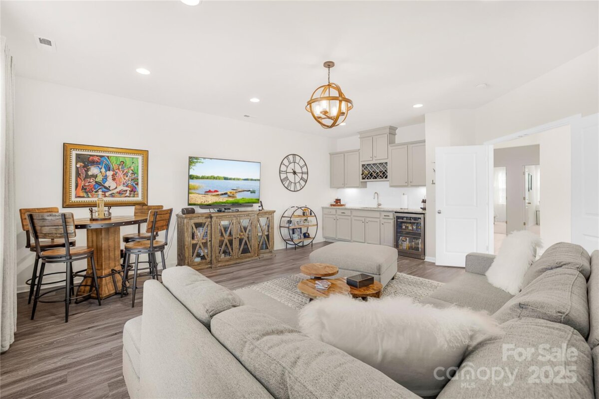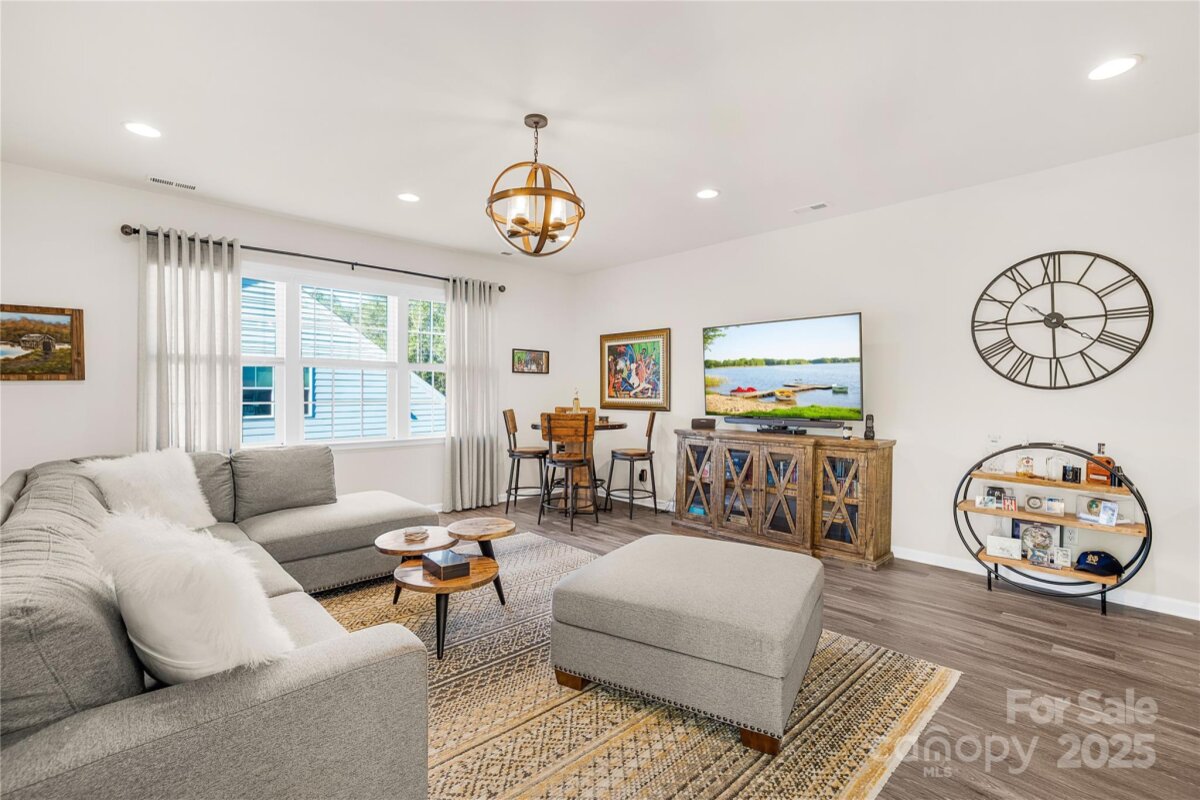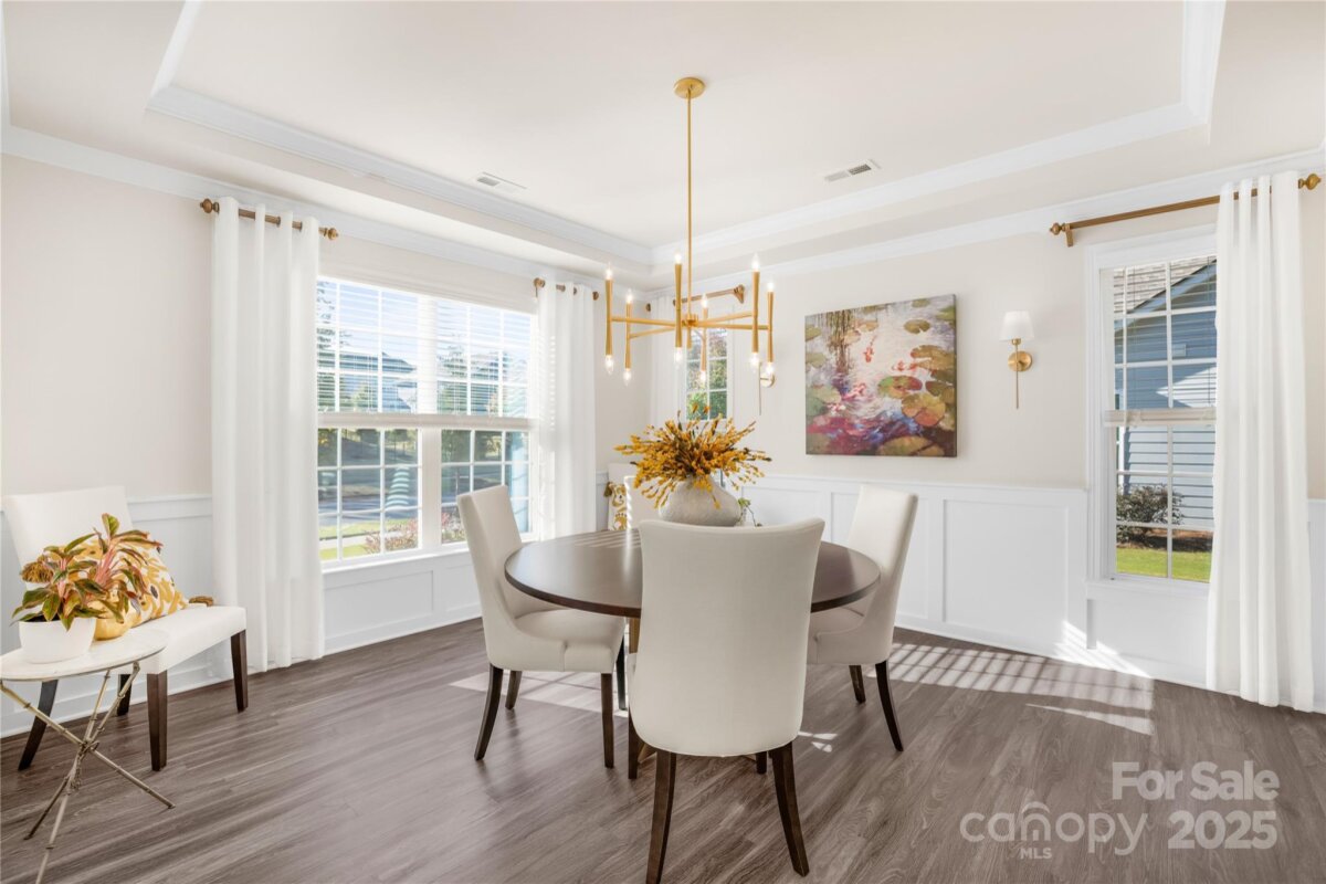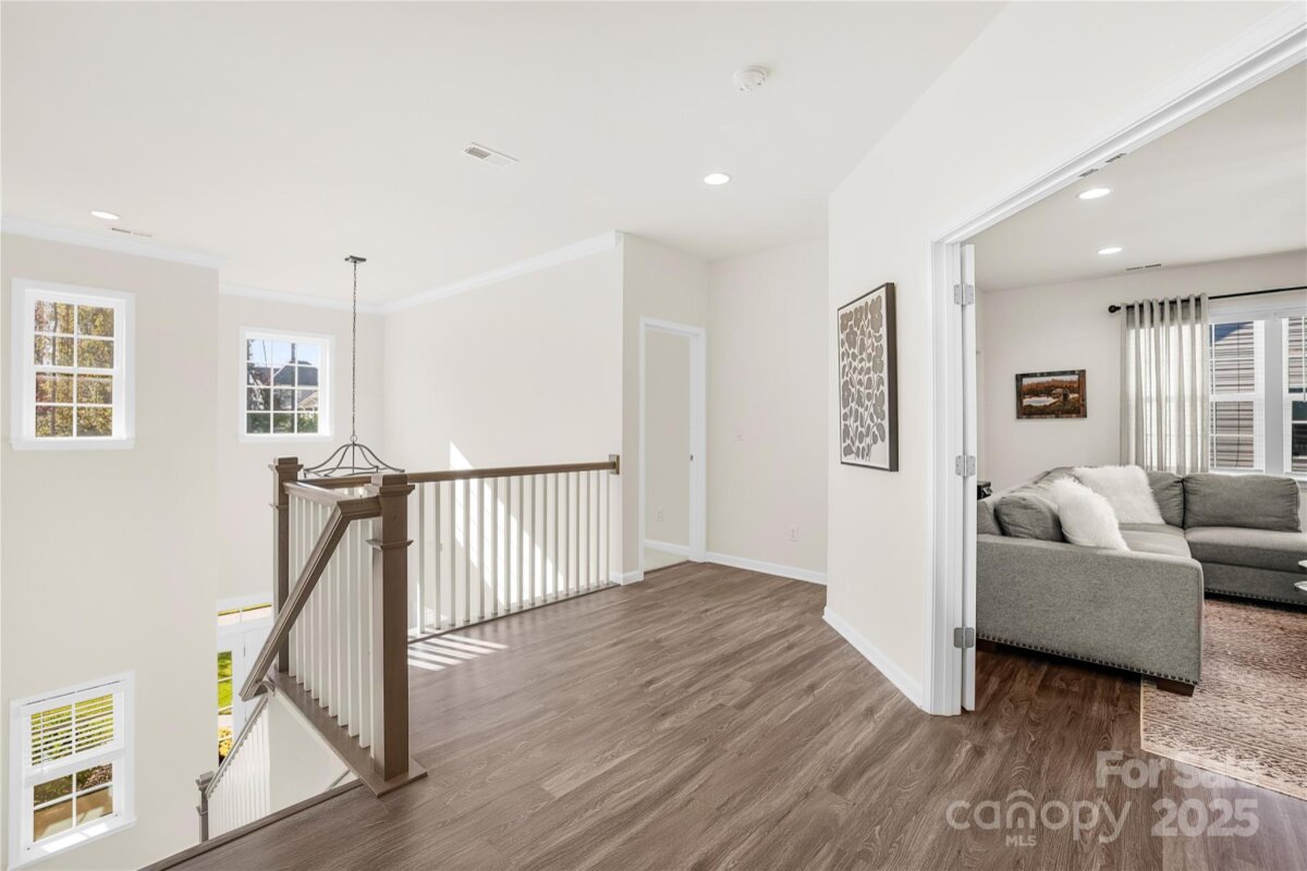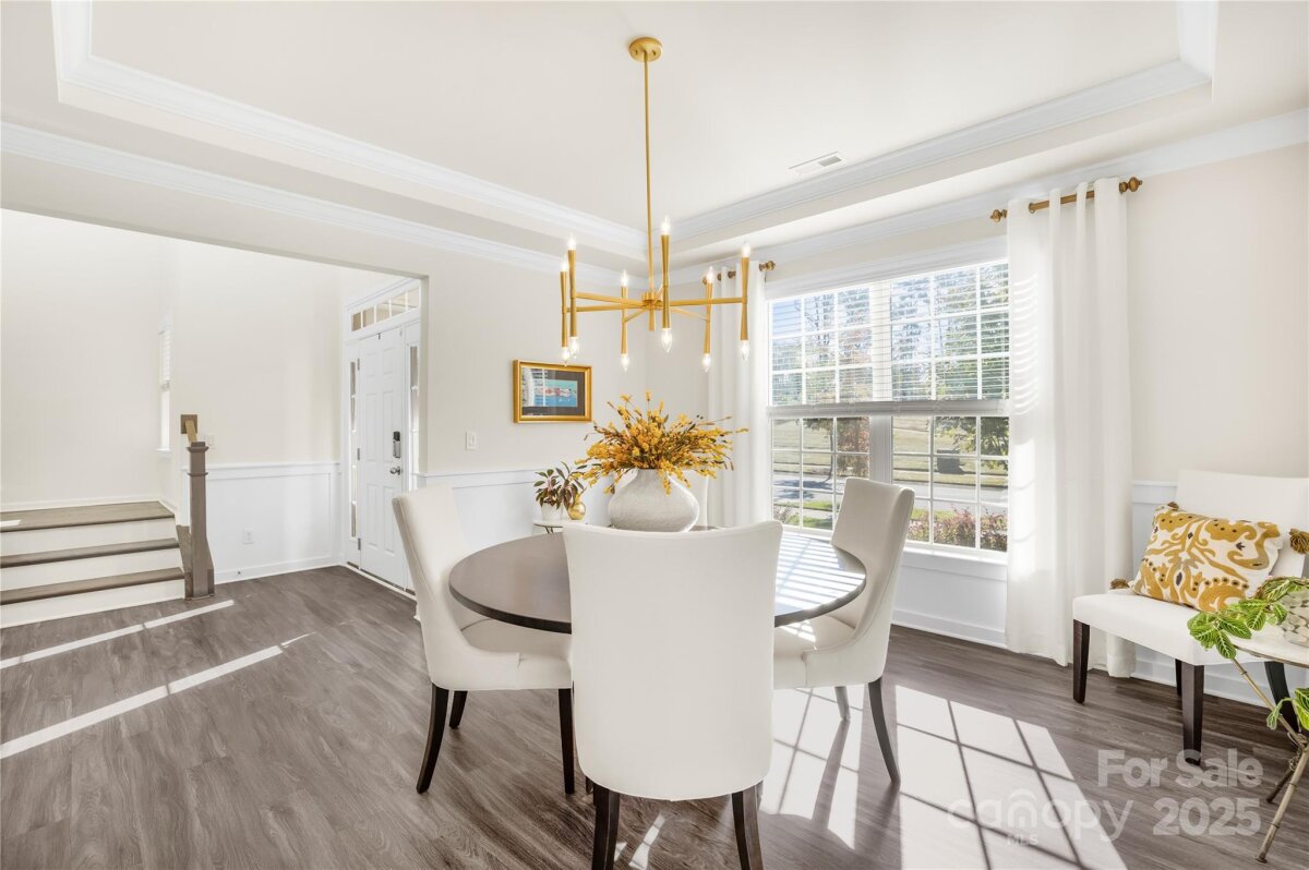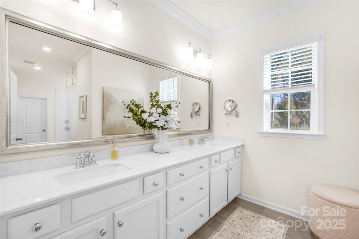 Welcome to this exceptionally maintained upscale designer home in the highly sought-after Farrington community! Perfectly situated on a premium lot directly across from the community tree save area and backing to a private, tree-lined view with plenty of room for your future pool, you just can't find a better location than this! With over 3,600 sf., this Torrance II plan blends luxury, comfort, and refined design throughout. The first level makes an unforgettable impression with a grand two-story foyer that opens to an elegant and thoughtfully designed living space. The breathtaking two-story great room boasts a soaring 20-foot ceiling and a gas fireplace that serves as a stunning focal point, framed by eye-catching custom millwork that stretches to the ceiling and enhances the room’s dramatic scale. The inviting great room flows seamlessly into the heart of the home, the gourmet kitchen, complete with a second dining/breakfast area, a large statement island, double wall ovens, gas cooktop, porcelain farmhouse sink, quartz countertops, custom walk-in pantry, a butler's pantry, coffee station and a built-in water filtration system ideal for both entertaining and everyday living. A huge formal dining room provides the perfect setting for hosting memorable gatherings, while the recently installed custom shutters throughout the main level adds timeless elegance. The main-level owner’s suite is a true retreat, offering a spa-like ensuite with an extended luxury walk-in shower, venetian marble dual vanity, polished porcelain tile flooring, and upscale finishes throughout. The second level continues to impress with three generously sized bedrooms, designer lighting, and wood stairs with open railings overlooking the foyer. A spacious loft/flex room featuring a “summer kitchen†offers endless possibilities, perfect as a game room, media space, man cave, or even a 5th bedroom with its oversized walk-in closet. Two full baths ensure comfort and convenience for family and guests alike. Step outside to a fully fenced backyard and an incredible screened-in porch enhanced by custom landscaping and a built-in exterior gas line for grilling, creating an ideal space to relax or entertain while enjoying the peaceful wooded views with even plenty of room for your summer pool. With undeniable curb appeal and ideally located just minutes from shopping at Birkdale Village, close to parks, greenways, athletic fields, schools, and is within an easy drive of Uptown Charlotte and Charlotte Douglas International Airport this home delivers elevated style, sophistication & location all in one stunning package. You don't want to miss seeing this home in person!