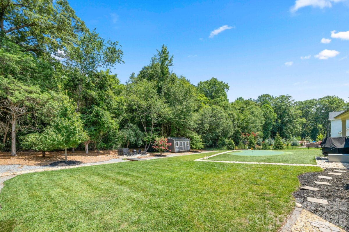 $20,000 Buyer Incentive offered for rate buydown or closing costs with acceptable offer! Beautifully appointed home in Hollins Grove, Huntersville — minutes from Lake Norman, top dining, and shopping. Welcome to Hollins Grove, an intimate enclave of custom-built homes nestled in the serene countryside of Huntersville, NC. This thoughtfully designed 5 bedroom, 4.5 bath modern transitional residence offers a seamless blend of elevated style and everyday comfort— providing a peaceful retreat just minutes from vibrant amenities. Step inside to discover a spacious office, a stunning great room with coffered ceiling, and an open-concept kitchen featuring an oversized island, gas cooktop, built-in oven and microwave. A butler’s pantry and walk-in pantry provide generous storage, while the drop zone off the three-car garage adds everyday functionality. The formal diving room sets the stage for memorable dinner parties and holiday celebrations. The main level also includes a private guest suite with ensuite bath — perfect for visitors or multi-generational living. 10' ceilings thru-out the main floor provide open and inviting space. The great room's sleek gas fireplace adds warmth and understated luxury, creating an inviting focal point for everyday living. Upstairs, the luxurious primary suite offers dual walk-in closets, a soaking tub, and a spacious shower. A large bonus room provides flexible space for media, fitness, or play, while three additional bedrooms and two full baths complete the upper level - 9' ceilings thru-out second floor. The living experience extends seamlessly outdoors to a professionally landscaped backyard oasis featuring a fire pit area, professional putting green, partial screened porch and a stunning stone fireplace—perfect for relaxing evenings or entertaining under the stars. A custom 16’ x 10’ shed, thoughtfully custom designed to match the home, provides additional storage without compromising aesthetics. Hollins Grove is more than a neighborhood — it’s a lifestyle. Location is everything, and this home delivers. Just 10 minutes away is Lake Norman, offering boating, paddleboarding, lakeside dining, and scenic trails. For shopping, Birkdale Village is nearby with boutiques, national retailers, and entertainment options. Dining enthusiasts will love the proximity to Huntersville’s top-rated restaurants like 131 Main, Pinky’s Westside Grill, and Azucar Cuban, all celebrated for their vibrant menus and welcoming atmospheres. Commuters will appreciate easy access to I-77 and I-485, placing Charlotte’s Uptown, SouthPark, and CLT Airport within a short drive. Whether you're seeking tranquility, convenience, or community, this Hollins Grove home offers it all. Don't miss the opportunity to own a slice of luxury in one of Huntersville’s most desirable neighborhoods. Schedule your private tour today!