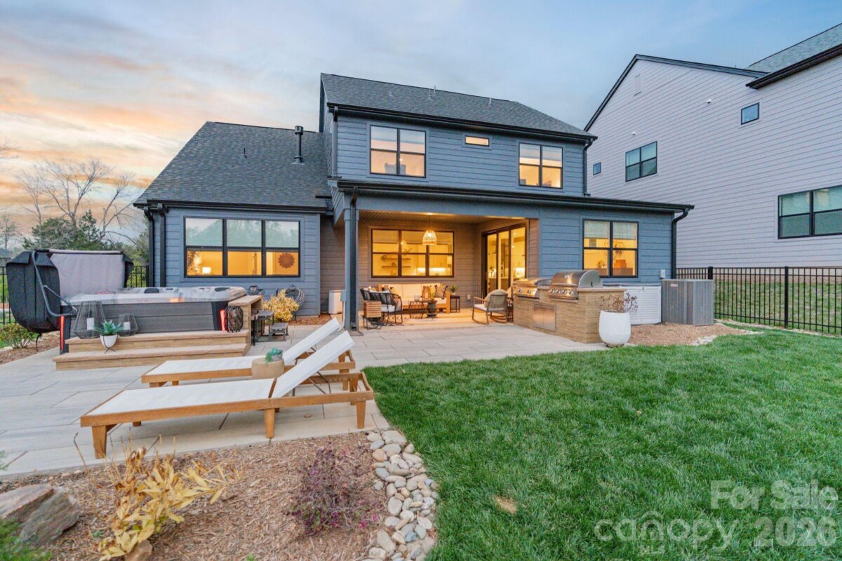 Better than new doesn’t even begin to cover it! Built in 2024 by Shea Homes, this award-winning Willow floor plan welcomes you with a striking 20-foot entry and designer lighting throughout, backed by over $200,000 in upgrades that completely redefine what you expect from new construction. Positioned on a premium homesite in Amara Chase with no neighbors behind or to the right, the setting offers rare privacy with peaceful tree-lined views and a true sense of space. Inside, every detail has been thoughtfully elevated. The kitchen is a true focal point, featuring high-end countertops, upgraded cabinetry, designer hardware, a granite sink, upgraded faucet, and enhanced pantry shelving. The open-concept layout flows seamlessly into the main living area, anchored by a gas fireplace and complemented by stunning hardwood flooring and curated lighting selections that carry throughout the home. The primary suite delivers a spa-like retreat with a freestanding soaking tub, frameless glass shower, upgraded tile throughout, and a cohesive, high-end finish. Additional upgrades include an enhanced stair system, upgraded doors, custom interior paint, hard flooring in key upper-level areas, and a dedicated media room wired for surround sound. A flexible loft adds even more functional living space. Designed for today’s lifestyle, the home also features a custom gym or office, offering versatility without sacrificing function. Step outside and you’ll immediately understand what sets this property apart! Over $70,000 has been invested to create a private outdoor retreat, complete with dual patio extensions, built-in grilling stations including a flat top and traditional grill, a hot tub, upgraded landscaping, and a fully fenced yard - built for both entertaining and everyday enjoyment. Recognized as a 2025 award winner for architectural design, the Willow plan is known for its flow and livability. Combined with a premium lot and extensive upgrades throughout, this home stands out as one of the most refined offerings in Amara Chase! Located just minutes from Birkdale Village, downtown Davidson, and with easy access to I-77 and I-485, this home offers both convenience and a lifestyle that’s hard to match!