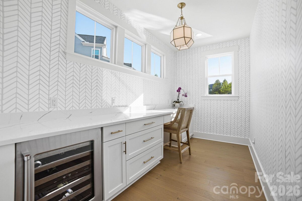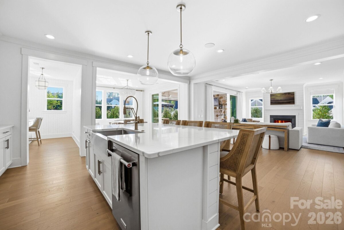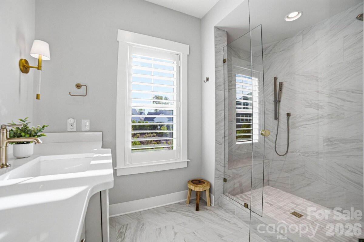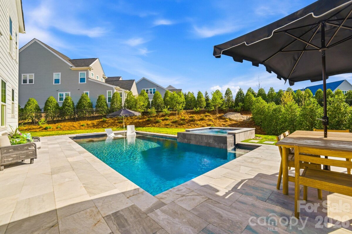 One of the most upgraded homes in sought-after Oak Farm, offering a private, resort-style backyard and seamless indoor-outdoor living designed for luxury and comfort. This better-than-new modern farmhouse combines elevated design with true move-in-ready convenience, no detail overlooked. Inside, you’ll find wood flooring, designer lighting by Visual Comfort & Serena & Lily, and thoughtfully curated finishes throughout. The main level features a flexible guest suite or office, while the open-concept living space is designed for entertaining with a shiplap fireplace, gourmet kitchen with oversized island, butler’s pantry, wine cooler, and custom cabinetry. Two walls of sliding glass doors open to a true outdoor retreat, featuring a custom gunite saltwater pool with attached spa, marble tile surround, and a travertine patio. The covered outdoor living space is built for year-round enjoyment with motorized screens, built-in gas heaters, a color-changing fireplace, and professionally designed landscaping that creates a private, resort-like setting. Upstairs, the spacious primary suite offers a luxurious escape with a custom closet, dual vanities, and a freestanding soaking tub. Additional upgrades include plantation shutters, custom millwork, built-in mudroom, irrigation system, and extensive landscaping and outdoor lighting, delivering a fully turnkey experience. Located in Oak Farm with amenities including pocket parks, playground, fire pit, and walking trails, and just minutes from Huntersville, Lake Norman, and Charlotte. A rare opportunity for luxury living with exceptional indoor-outdoor design.