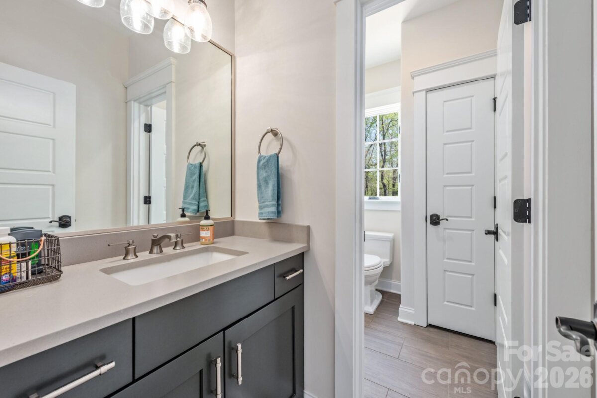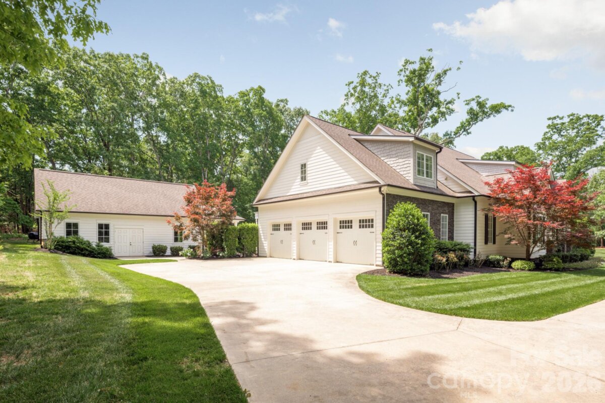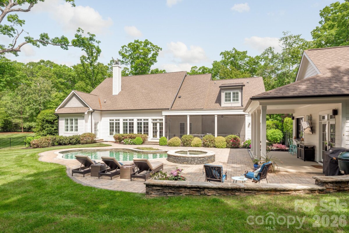 Looking for a luxury estate with land surrounded by nature, but still within minutes of shops, restaurants and work? This thoughtfully designed custom home with pool and pool house sits on over 3 acres abutting the Buckeye Cove preserve and trails. Designed for both functional daily living and entertaining, the main floor includes both a primary suite and guest suite with zero entry shower and wide entries to accommodate all guests. The primary bath features a large freestanding tub, oversize shower and the large vanity include drawers with outlets and storage for accessories. As you enter from the covered front porch to the 12' foyer you'll notice an office with vaulted ceiling and stained beams and a spacious dining room with coffered ceiling and wainscotting. Venture further into the home and you'll immediately notice the wall of windows and light that floods the home and the greenery of the yard and trees beyond. The high ceilings and custom stonework around the large gas fireplace make the space welcoming without being stuffy and create the ideal backdrop for either a grand holiday gathering or a quiet morning coffee. Just off the great room is the door to the backyard and screen porch, kitchen and breakfast nook with built-in bench with storage. Should you need more storage, the kitchen provides additional storage space with full height cabinets, including a hidden microwave and appliance "shed" with pull-out shelves to leave everything in place while in use. The 48" Thermador Range includes 6 gas burners, a griddle and 2 separate ovens. The built-in Thermador Fridge and Freezer columns have ample space, especially when you can store wine in the built-in wine fridge. Tucked away behind the entertaining areas of the home are the guest suite, laundry, mud room, access to the 3 car garage and the cozy den that includes French doors to the screen porch so you can enjoy the fresh air and sounds of the spa waterfall while you work or relax. If the outdoors are calling, there's no better place than this yard. A screen porch, private saltwater pool and spa and the separate pool house that is an entertaining showstopper. The large garage window over the indoor/outdoor wet bar with under counter fridge and icemaker, means the party flows inside and out. Surround sound, a full pool bath and storage closet for all the swimming supplies means everyone will want to spend all summer here! If staying healthy and working out in the air conditioning (or heat!) is what you prefer, the pool house also includes a large gym with a large picture window. If you venture back inside and upstairs you'll find a large bonus space with space to enjoy movie night, complete with built-in snack bar and storage, game night, playroom or whatever flexible space you envision. The two remaining "mirror-image" bedrooms are off the bonus room and include large walk-in closets a dormer window nook perfect for a desk or reading chair. Each room has a private vanity area that lead to a shared bathroom. On the far side of the bonus room is a walk-in unfinished attic that provides plenty of storage. Also noteworthy: - The home currently includes 4 bedroom but the installed septic system is for 5 bedrooms. An expansion or modification of the current home would allow for an additional bedroom without having to change the septic - The crawl space of the home is encapsulated with remote humidity and temperature monitor home - Home includes casement windows, custom plantation shutters, rounded drywall corners. On the main floor, the solid core doors are 8', outlets installed in the baseboards and floor vents are wood inset. - Pool equipment includes an upgraded Jandy heater, installed December 2023, Pebbletec liner and a programable Polaris cleaner. - The gated community of Stillwell is one of Huntersville's best kept secrets, with only 36 homes on large lots, all of which are now completed. The community is just minutes from both exit 23 and 25.